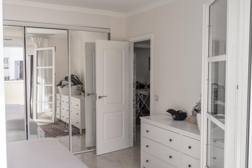 - Spacious 3-Bedroom Corner Apartment with Multiple Terraces in El Paraíso, Estepona Located in a highly sought-after gated community in El Paraíso, this well-planned corner apartment offers space, natural light, and a rare combination of three private terraces—perfect for enjoying the Andalusian sun throughout the day. Bright Living Room and West-Facing Terrace The apartment welcomes you with a large, bright living and dining area featuring a cozy fireplace and generous space for both lounging and entertaining. From the living room, you step directly out onto a west-facing terrace with relaxing views over the beautifully maintained communal gardens—ideal for afternoon sun and warm evenings outdoors. Three Bedrooms and Excellent Layout To the left side of the property, you’ll find three spacious bedrooms. The master bedroom includes a large en-suite bathroom and direct access to a private terrace. The two additional bedrooms are also well-sized, both opening onto a large shared east-facing terrace—perfect for morning sun. These rooms share a nearby family bathroom. All bedrooms come equipped with full-length fitted wardrobes, and the apartment includes both high-speed internet and an alarm system already installed. Private Garage and Storage Included The apartment is sold with a private underground parking space and a generously sized storage room—ideal for bikes, golf clubs, or seasonal items. The property is in good overall condition and ready to move into, with potential to personalize or renovate further if desired. Well-Maintained Urbanization with Heated Pool The community is fully gated, secure, and beautifully maintained. Residents enjoy access to expansive green areas, a heated communal pool, and a separate children’s pool. The complex is under 24/7 camera surveillance. Between 2022 and 2024, solar panels were installed on the rooftops to reduce electricity costs and improve energy efficiency across common areas. There are no restrictions on short-term rentals, making this property a great option for investment as well. Prime Location with Walking Distance to Everything Located just a 10-minute walk from the beach, the apartment is also within short walking distance of numerous local amenities including supermarkets, cafés, restaurants, bars, butchers, a gym, hairdresser, bank, pharmacy, and more. There are excellent transport links with nearby bus and taxi stops, making it easy to get around without a car. Close to Golf and Costa del Sol Hotspots Golf enthusiasts will appreciate the proximity to several top-rated courses. For dining, shopping, and nightlife, Puerto Banús, San Pedro de Alcántara, and Estepona town are all just a 10–15 minute drive away. A Comfortable and Flexible Home in an Ideal Setting Whether you’re looking for a full-time residence, a holiday home with great rental potential, or a smart investment, this charming apartment in El Paraíso offers a perfect blend of space, location, and lifestyle. Contact us today to book your private viewing.