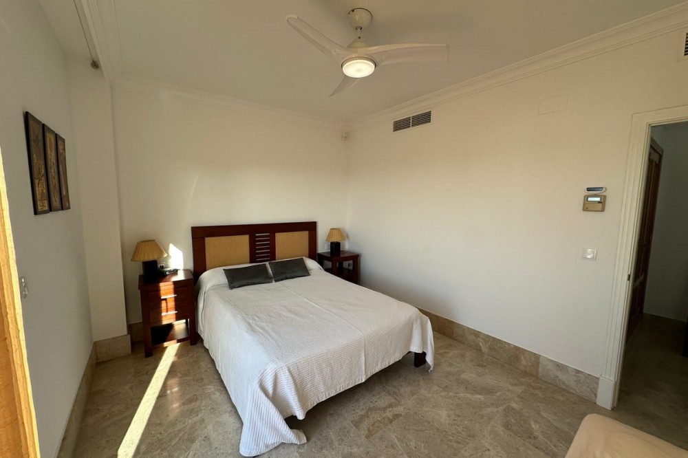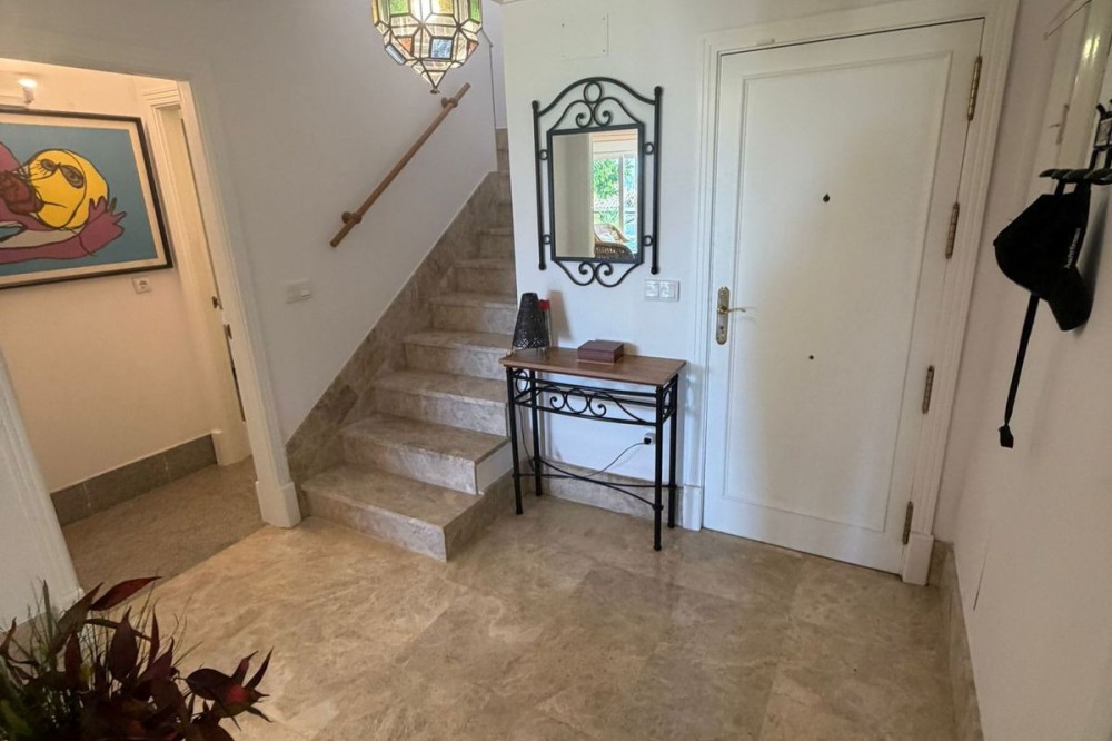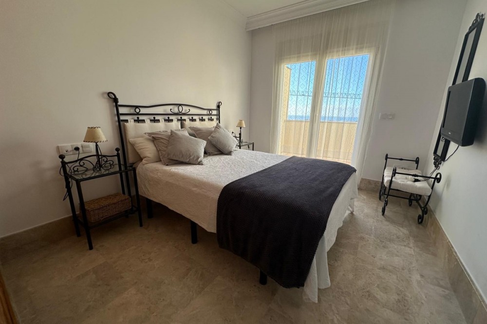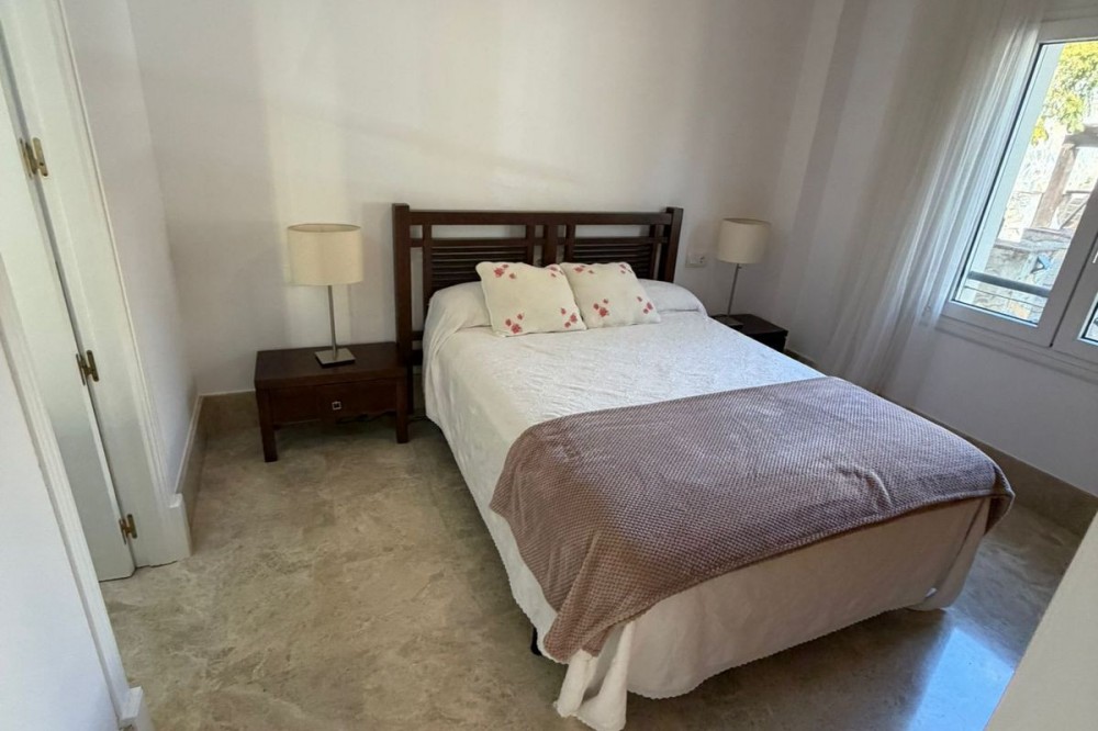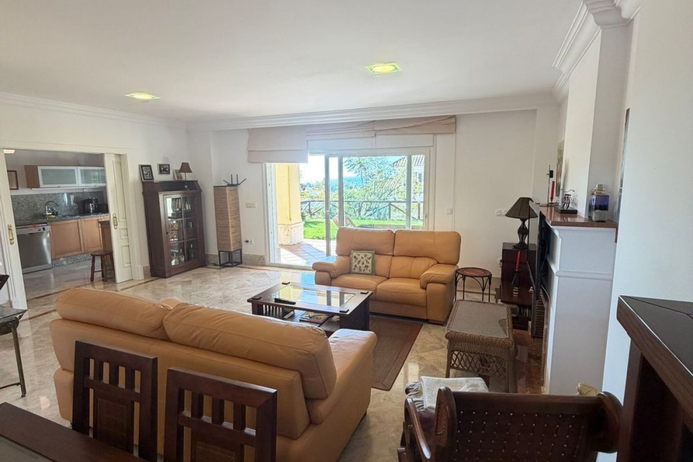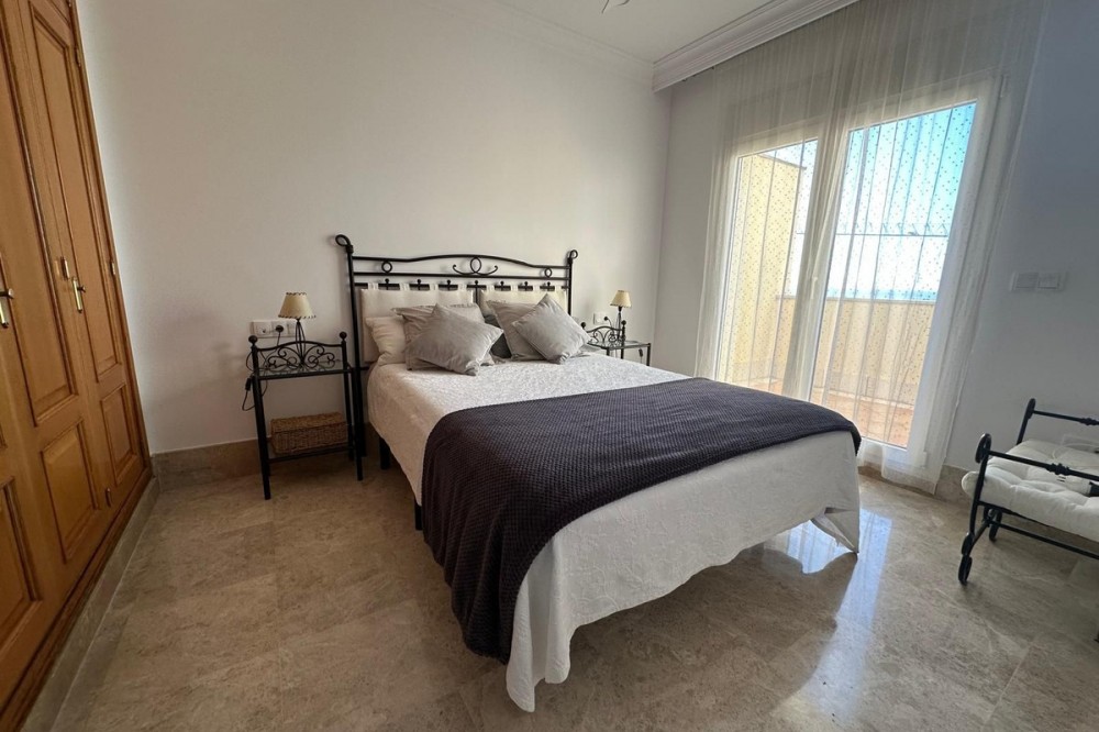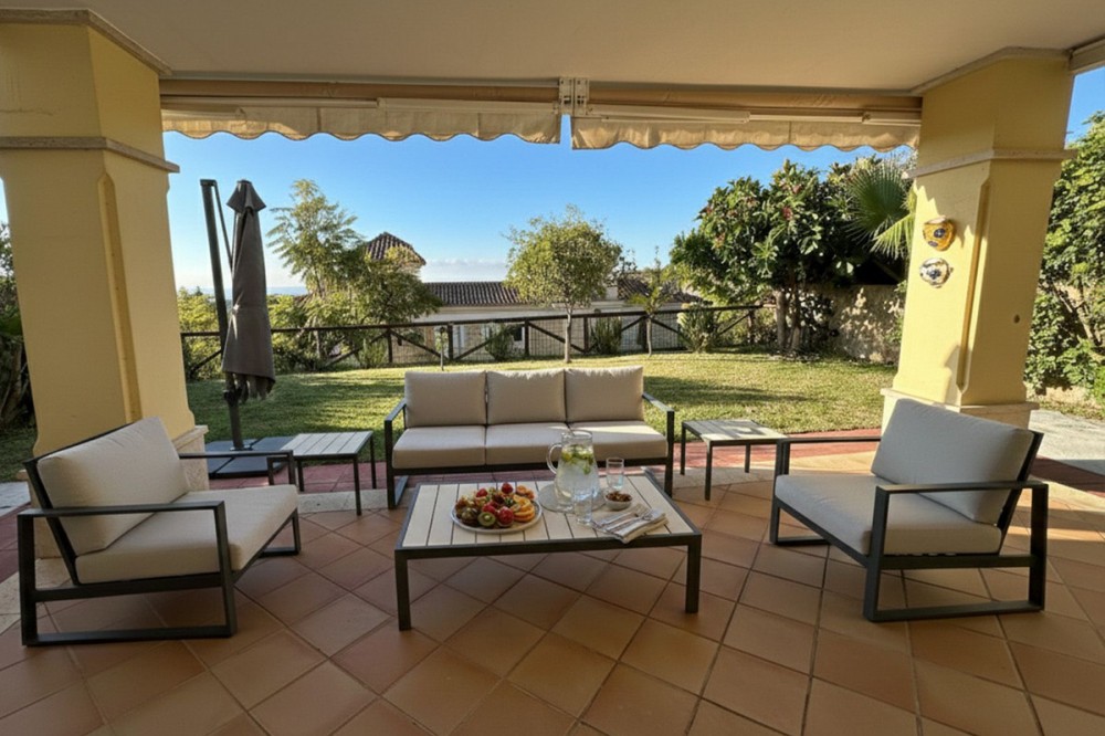 - Set within the sought-after Santa Clara Golf urbanisation in Marbella East, this south-facing resale property offers a secure residential setting and direct proximity to the golf course. Presented in excellent condition, the home is ready for immediate use. The bright living spaces connect to a private terrace, creating an ideal outdoor area for relaxing or entertaining. Sea views can be enjoyed from the bedrooms, adding extra appeal. Air conditioning with hot and cold settings ensures year-round comfort. The property includes fitted wardrobes, an en-suite bathroom, a fully fitted kitchen, and is sold fully furnished, making it a practical option for both personal use and rental purposes. A private storage room and covered private parking add functional value. Residents benefit from well-maintained communal gardens and a communal swimming pool within a gated complex with 24-hour security. A solid choice as a golf-side residence or investment in one of Marbella East’s established residential areas.