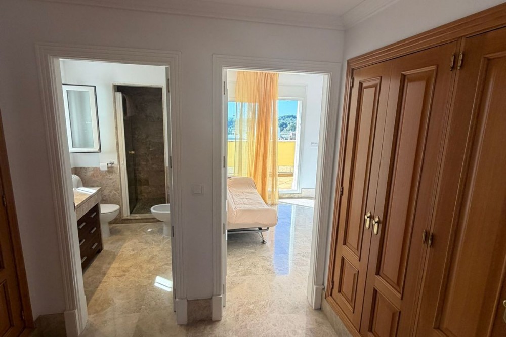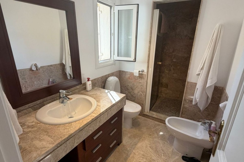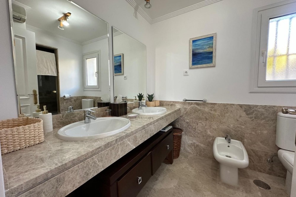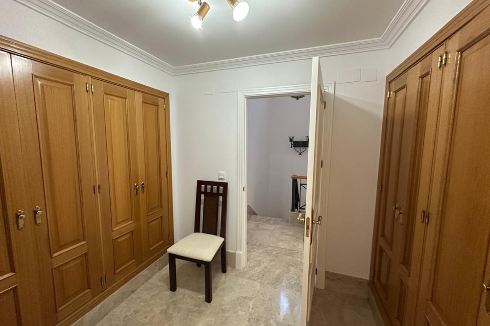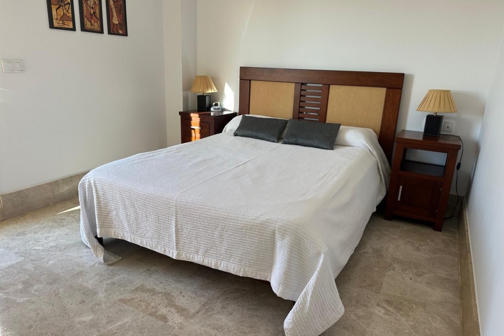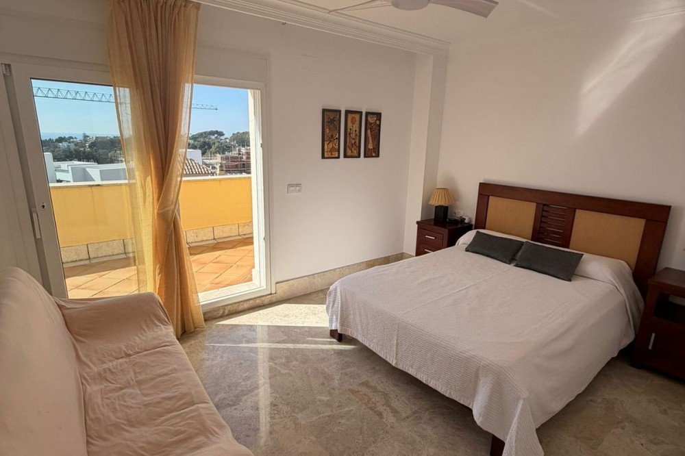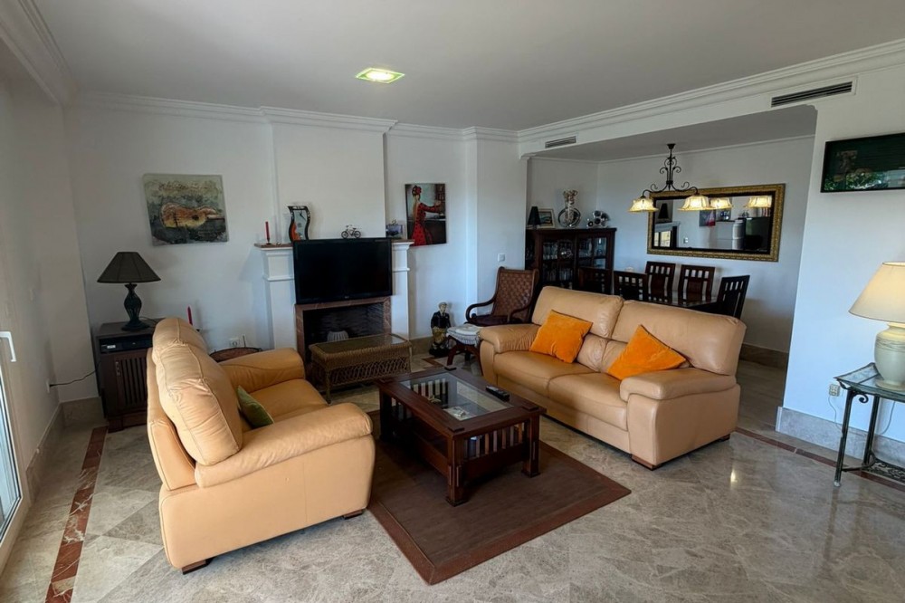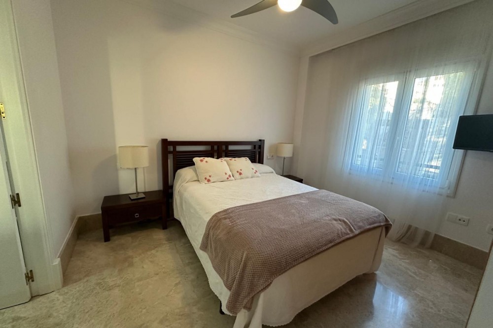 - Set within the sought-after Santa Clara Golf urbanisation in Marbella East, this south-facing resale property offers a secure residential setting and direct proximity to the golf course. Presented in excellent condition, the home is ready for immediate use. The bright living spaces connect to a private terrace, creating an ideal outdoor area for relaxing or entertaining. Sea views can be enjoyed from the bedrooms, adding extra appeal. Air conditioning with hot and cold settings ensures year-round comfort. The property includes fitted wardrobes, an en-suite bathroom, a fully fitted kitchen, and is sold fully furnished, making it a practical option for both personal use and rental purposes. A private storage room and covered private parking add functional value. Residents benefit from well-maintained communal gardens and a communal swimming pool within a gated complex with 24-hour security. A solid choice as a golf-side residence or investment in one of Marbella East’s established residential areas.