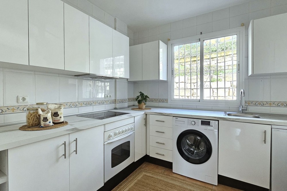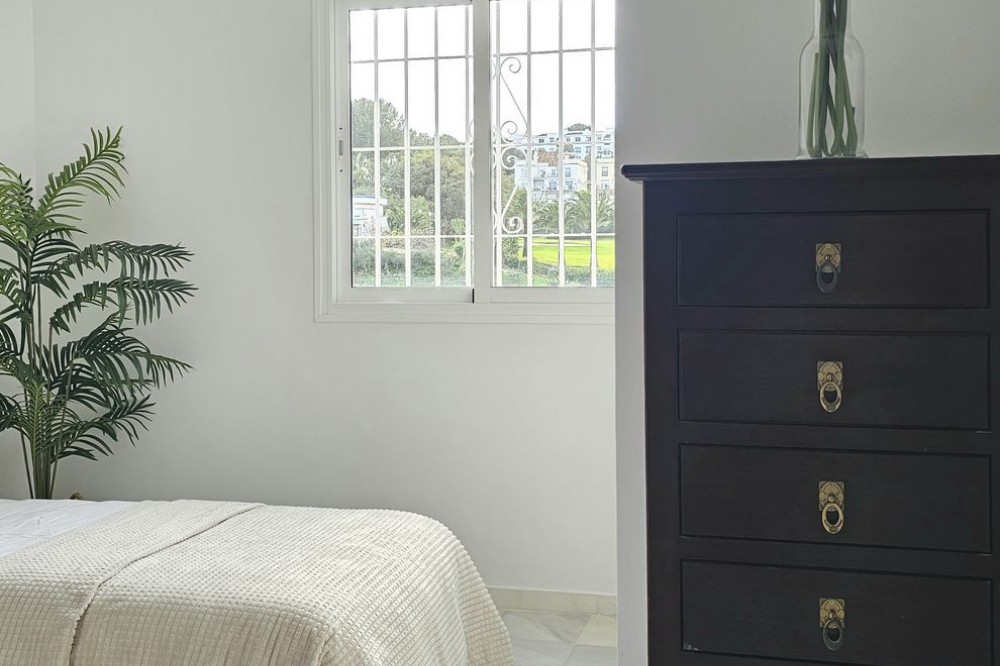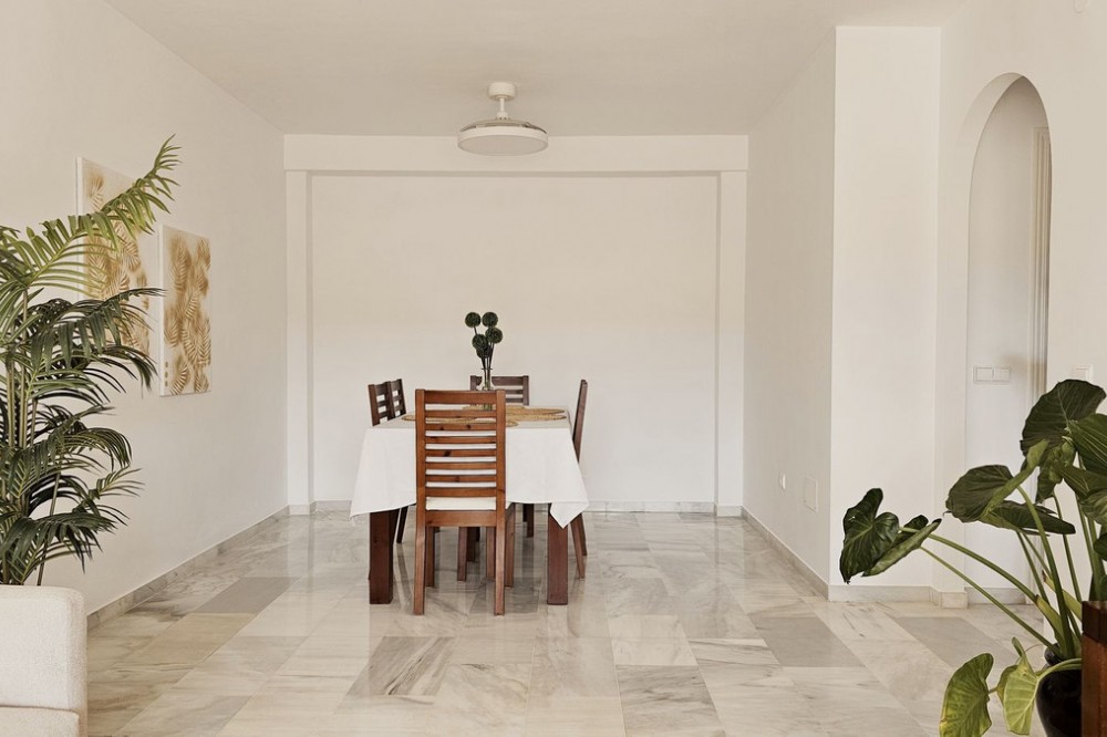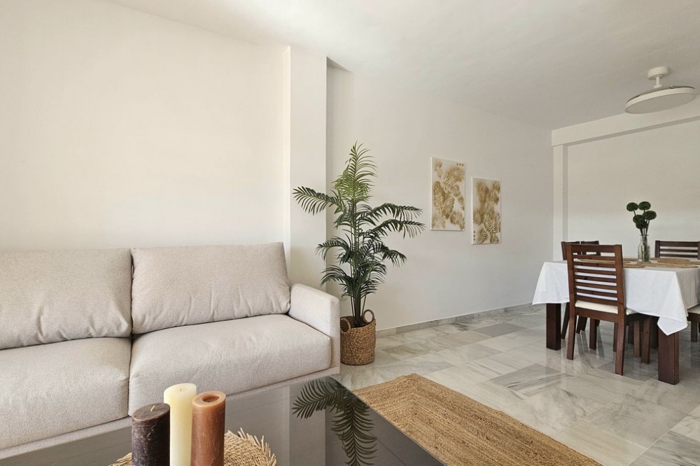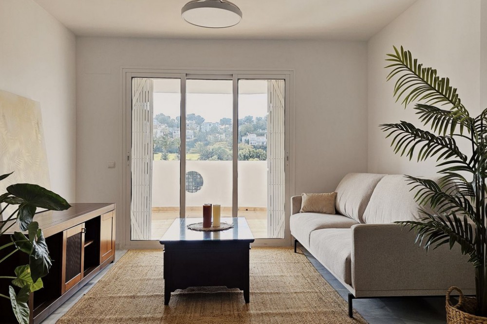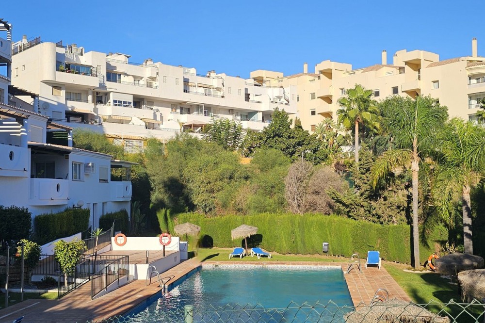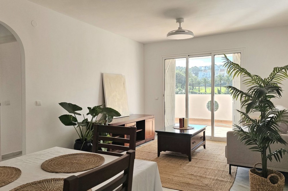 - Beautiful 3 bedroom + 2 bathroom apartment for sale in Miraflores area. Spacious south & west facing covered terrace with open green views to the Miraflores golf course and gardens. Nice and quiet location only few minutes drive away from the beach village La Cala de Mijas and the amenities in Riviera del Sol. No lift, but the apartment is located only 8 steps from the street level. It's a third floor apartment, but there is an entrance from the street behind the building, and that entrance is between the floors 2 and 3. 700 m from Miraflores golf club 800 m from supermarket & restaurants 1,5 km from the beach (Playa El Bombo in La Cala village) 5 min drive to Max Beach or El Oceano beach clubs. Come view this beautiful apartment that suits perfectly for permanent living or having your very own holiday paradise on Costa del Sol.