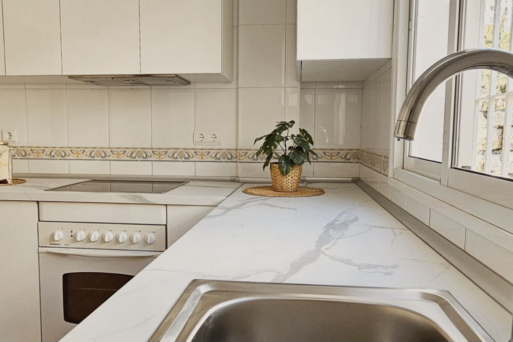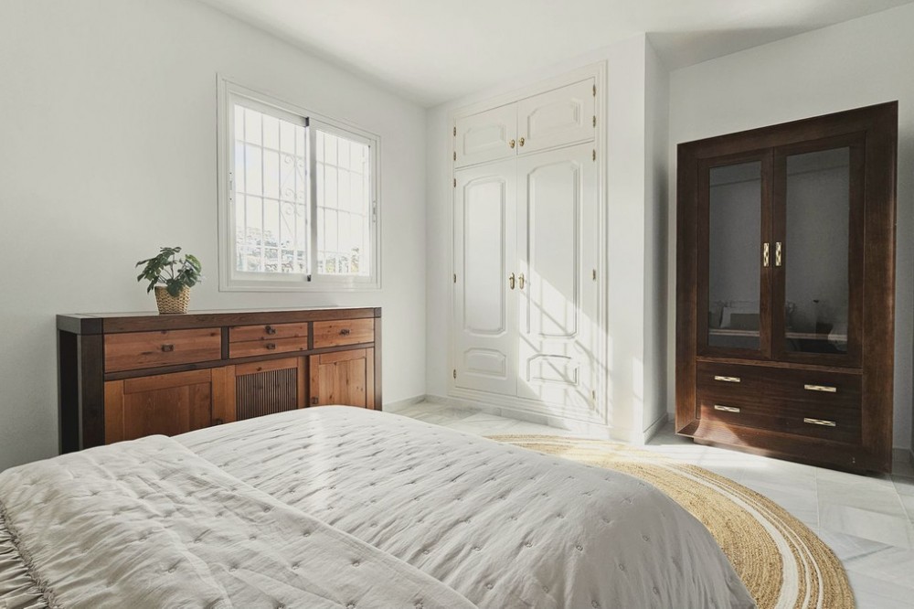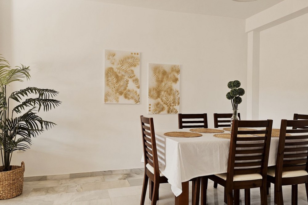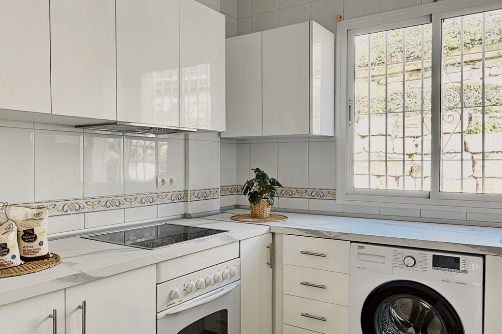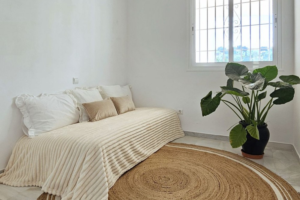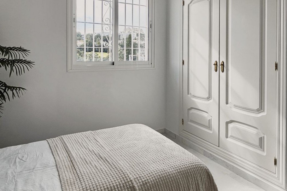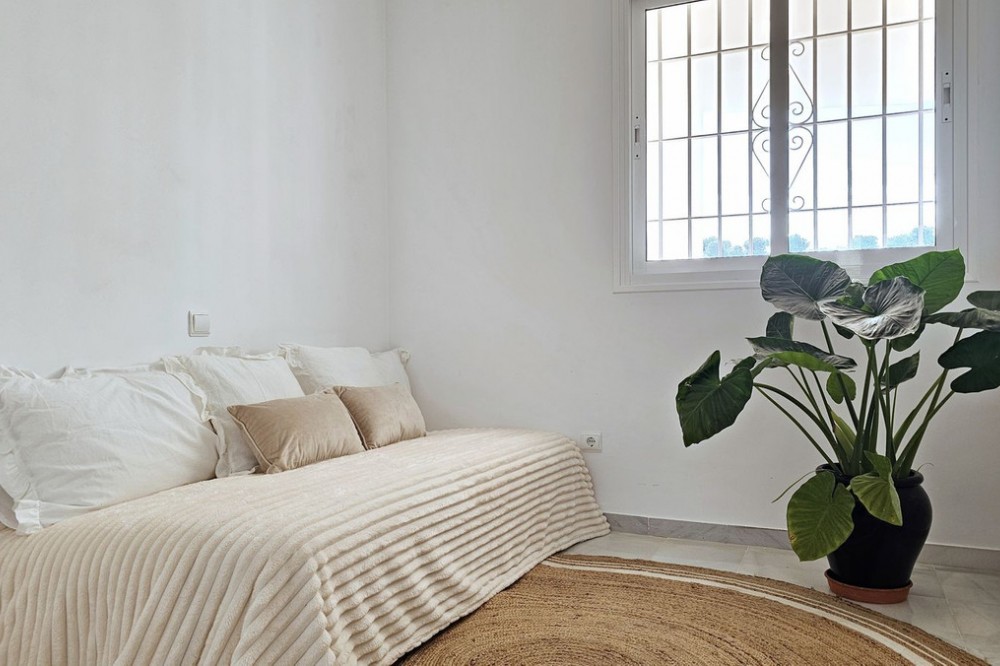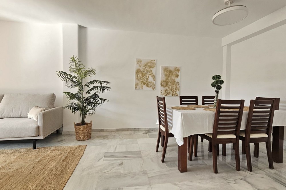 - Beautiful 3 bedroom + 2 bathroom apartment for sale in Miraflores area. Spacious south & west facing covered terrace with open green views to the Miraflores golf course and gardens. Nice and quiet location only few minutes drive away from the beach village La Cala de Mijas and the amenities in Riviera del Sol. No lift, but the apartment is located only 8 steps from the street level. It's a third floor apartment, but there is an entrance from the street behind the building, and that entrance is between the floors 2 and 3. 700 m from Miraflores golf club 800 m from supermarket & restaurants 1,5 km from the beach (Playa El Bombo in La Cala village) 5 min drive to Max Beach or El Oceano beach clubs. Come view this beautiful apartment that suits perfectly for permanent living or having your very own holiday paradise on Costa del Sol.