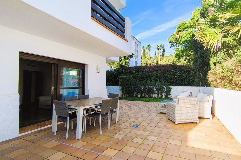 - Spacious and modern 2-bedroom, 2-bathroom apartment with underground parking space and storage room. The property features an impressive almost 70 m² terrace and a 30 m² private garden, perfect for enjoying the Costa del Sol lifestyle. Located in the Selwo area, very close to La Resina Golf, with all amenities nearby and direct access to the new riverside promenade leading to the beach. The residential complex offers a communal swimming pool and paddle tennis court, set in a quiet and well-connected environment.