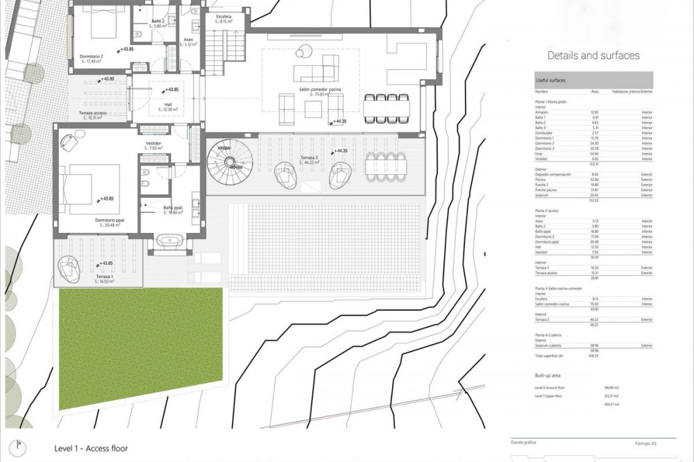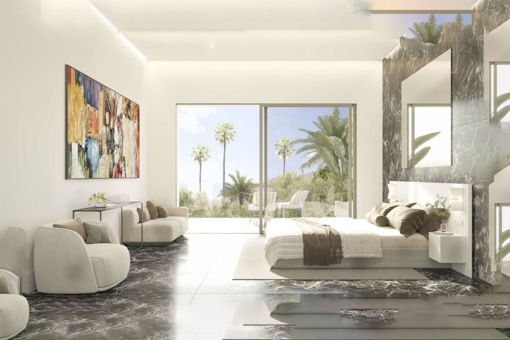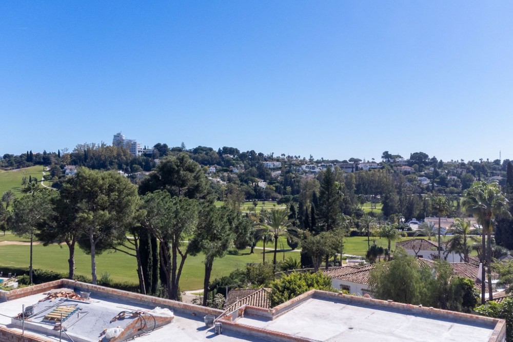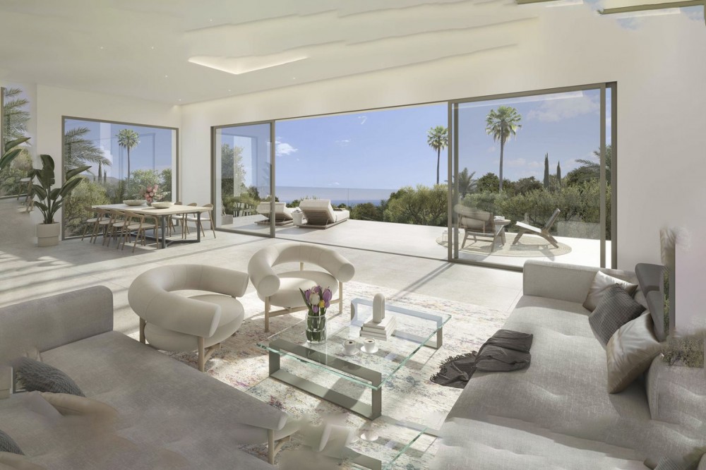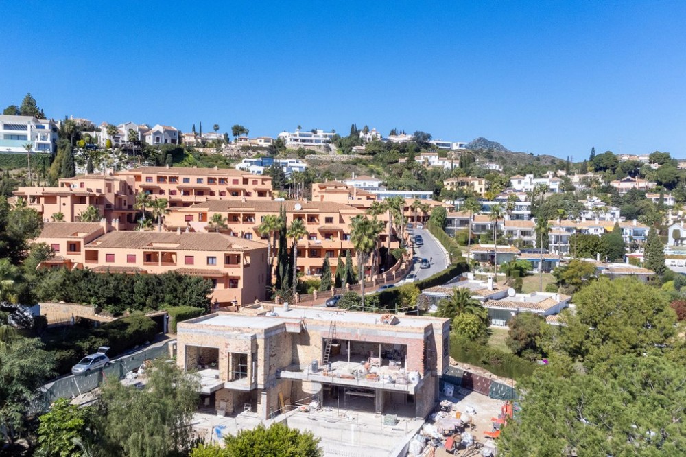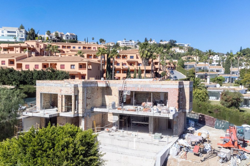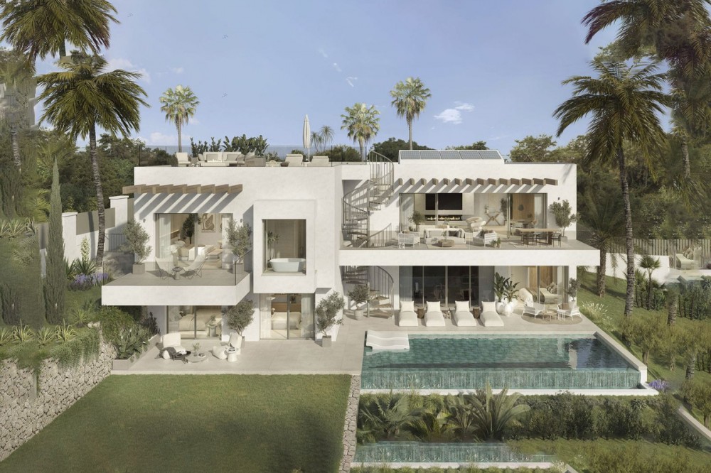 - Contemporary Frontline Golf Villa with Sea Views | El Paraíso, Benahavís | Completion June 2026 Positioned frontline to the golf course in El Paraíso, this contemporary new-build villa is currently under construction with completion scheduled for June 2026. Elevated above the fairways and surrounded by mature pine trees, the property enjoys open golf and sea views, privacy and easy access to Marbella and Estepona. Designed across four levels, the villa combines clean architectural lines with a strong indoor-outdoor flow. Floor-to-ceiling glazing and expansive terraces create bright, open living spaces, while a neutral palette enhances the sense of space and light. The property offers approximately 404 m² built and over 600 m² of total usable space including terraces and solarium. The garden level includes three guest bedrooms with en-suite bathrooms, all with direct access to landscaped gardens and the infinity pool area. Covered terraces provide space for outdoor living throughout the year. At entrance level, the principal suite features a walk-in dressing area, en-suite bathroom and private terrace, alongside an additional guest bedroom and entrance hall. The main living level is designed for entertaining, with an open-plan living, dining and kitchen area opening onto a wide terrace with panoramic golf views. The rooftop solarium offers additional outdoor space with open views and all-day sun. Finished with modern systems, energy-efficient solutions and high-quality materials, the villa delivers a practical and well-balanced layout. Located within El Paraíso, the property is close to golf courses, schools, beaches and amenities, offering a strong combination of location, design and long-term value.