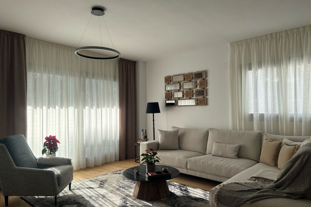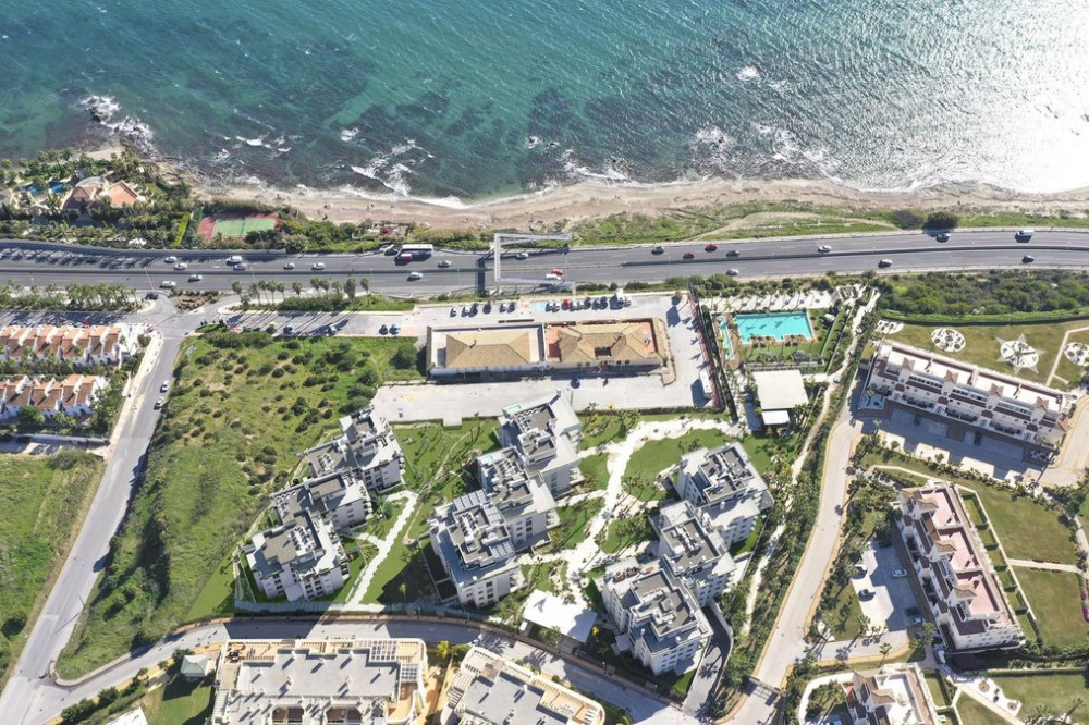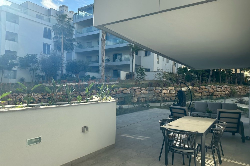 - Exquisite 2-Bedroom Ground Floor Apartment for Sale with Sweeping Sea Views Presenting an exceptional opportunity to own a luxurious 2-bedroom ground floor apartment in the sought-after Faro/Chaparral area, this residence is designed for those who appreciate a blend of elegance, comfort, and breathtaking sea views. Key Features: 1. Unparalleled Setting: Nestled just steps from the beach, this apartment enjoys an enviable location with panoramic sea views. The Faro/Chaparral area is renowned for its tranquility and proximity to the coast. 2. Gated Community Oasis: Ensuring privacy and security, the apartment is part of a gated community featuring 24-hour concierge and security services. The lush landscaped grounds create an oasis-like atmosphere, setting the stage for a life of comfort and serenity. 3. Exceptional Amenities: Indulge in a resort-like lifestyle with amenities including an infinity-style pool, a modern fully equipped gym, and a barbecue area. These facilities offer opportunities for relaxation, recreation, and entertaining in style. 4. Bright and Well-Designed Interior: Step inside a bright and well-designed interior boasting 2 bedrooms and 2 bathrooms. The apartment, fully furnished with designer work, offers a seamless blend of style and functionality. Built-in wardrobes in each bedroom provide ample storage space. 5. Expansive Terrace Retreat: A defining feature of this ground floor gem is the impressive 46m² terrace. Perfect for outdoor living and entertaining, the terrace captures the essence of coastal living, providing a private space to soak in the sun and relish in the sea views. 6. Modern Kitchen and Comfort Features: The spacious kitchen is fully equipped with Bosch appliances, catering to both culinary enthusiasts and those who appreciate modern conveniences. Comfort is enhanced with underfloor heating throughout the apartment and an aerothermal system for energy efficiency. 7. Parking and Storage Included: This apartment comes with the added convenience of parking space and a storage room, ensuring practicality and ease of living. 8. Strategic Location: Enjoy the convenience of being only a 5-minute drive to La Cala de Mijas or Fuengirola, a 15-minute drive to Malaga Airport, and a 20-minute drive to Marbella. The property is also within walking distance to various local restaurants and shops. Don't Miss Your Coastal Dream Home: Seize the opportunity to make this exceptional ground floor apartment yours. Contact us for more details and to arrange a private viewing. Elevate your lifestyle with this coastal haven that seamlessly combines sophistication, designer furnishings, and coastal charm.