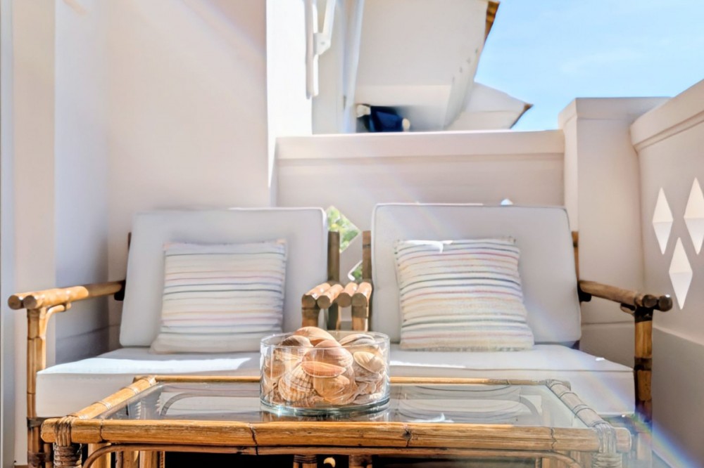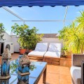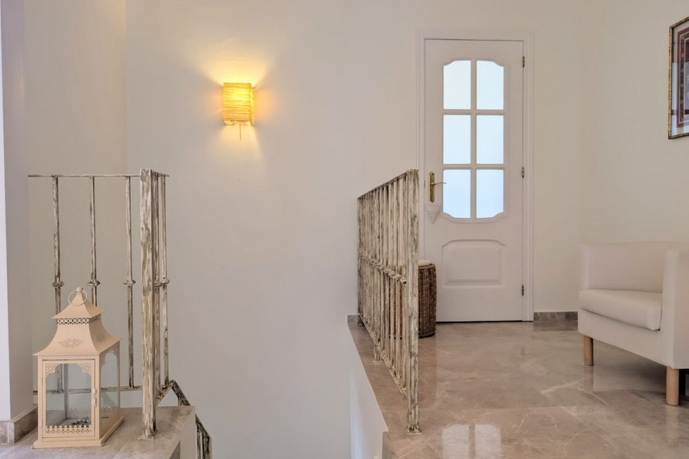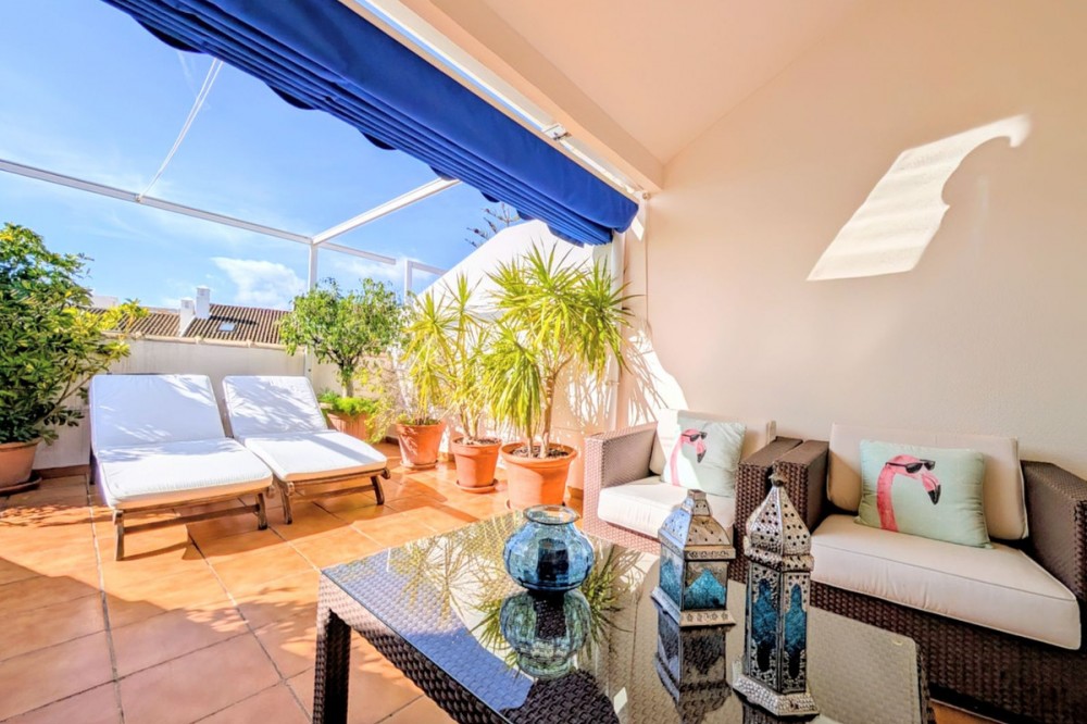 - Beautiful spacious home in San Pedro del Mar next to the boulevard of San Pedro and close to all amenities, restaurants, shops, sporting facilities and short walk to the town centre. Built over two floors, this extraordinary Penthouse is very well kept and ready to move in. The property comes with underfloor heating throughout, A/C hot & cold and authentic sauna. On the entrance level: hall, a great size living-dining room with access to sunny south-west facing terrace overlooking community gardens & swimming pools; ample fully fitted kitchen & utility room, two guest bedrooms sharing family bathroom (with walk-in shower) and master bedroom with en-suite bathroom (walk-in shower). All the bedrooms are good size and with plenty of natural light. The marble staircase takes to the upper level where there is a second living room, guest bedroom and a bathroom (with walk-in shower and Sauna), lovely uncovered terrace with sunbathing and sitting areas - ideal for entertaining guests. This stunning Penthouse is in mint condition, tastefully renovated & decorated and will make a wonderful family home in popular San Pedro. We hold the keys.