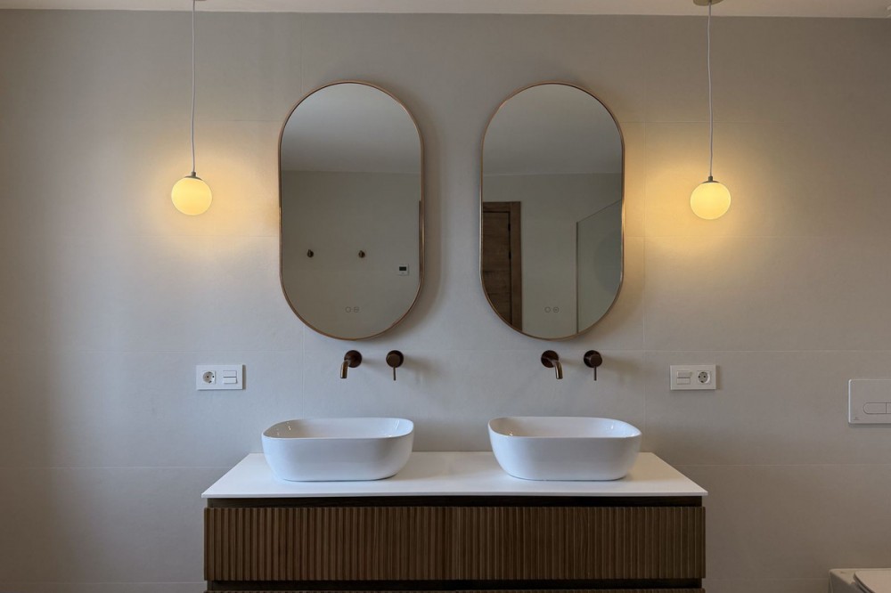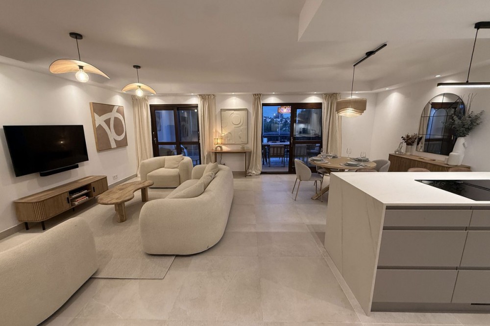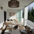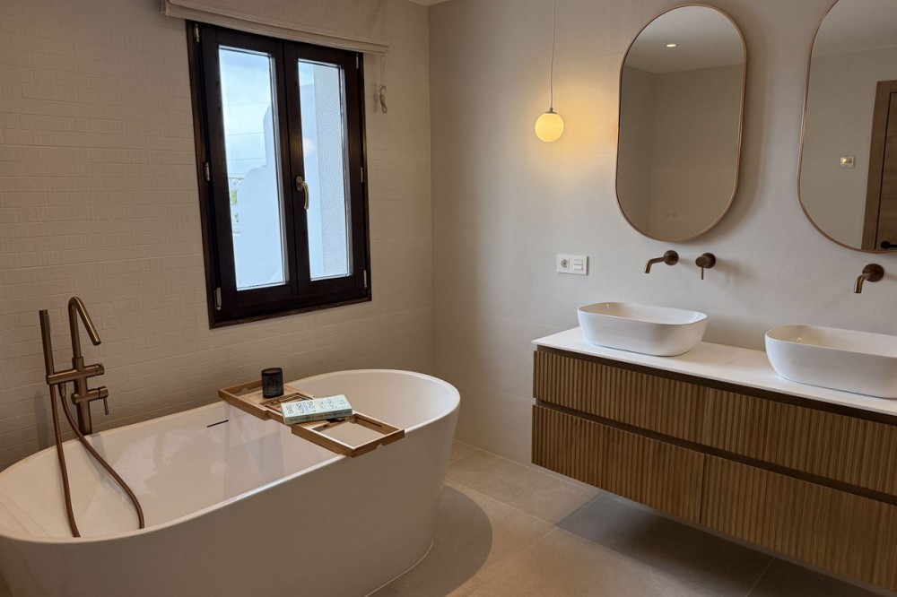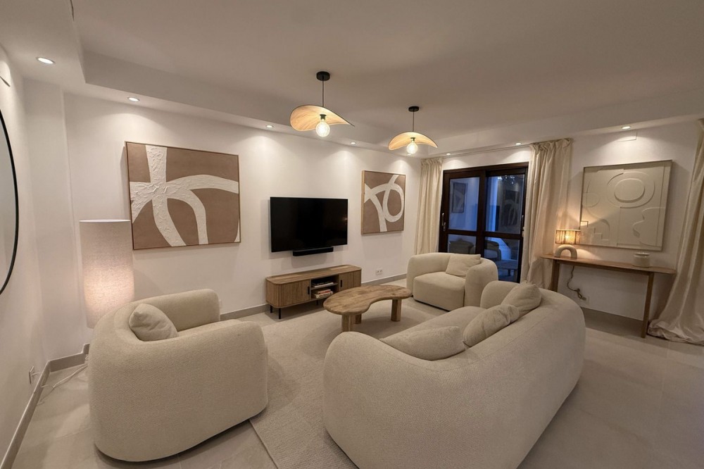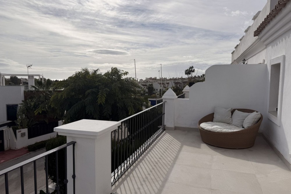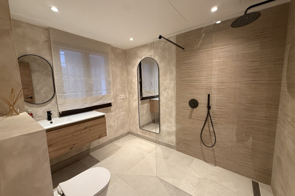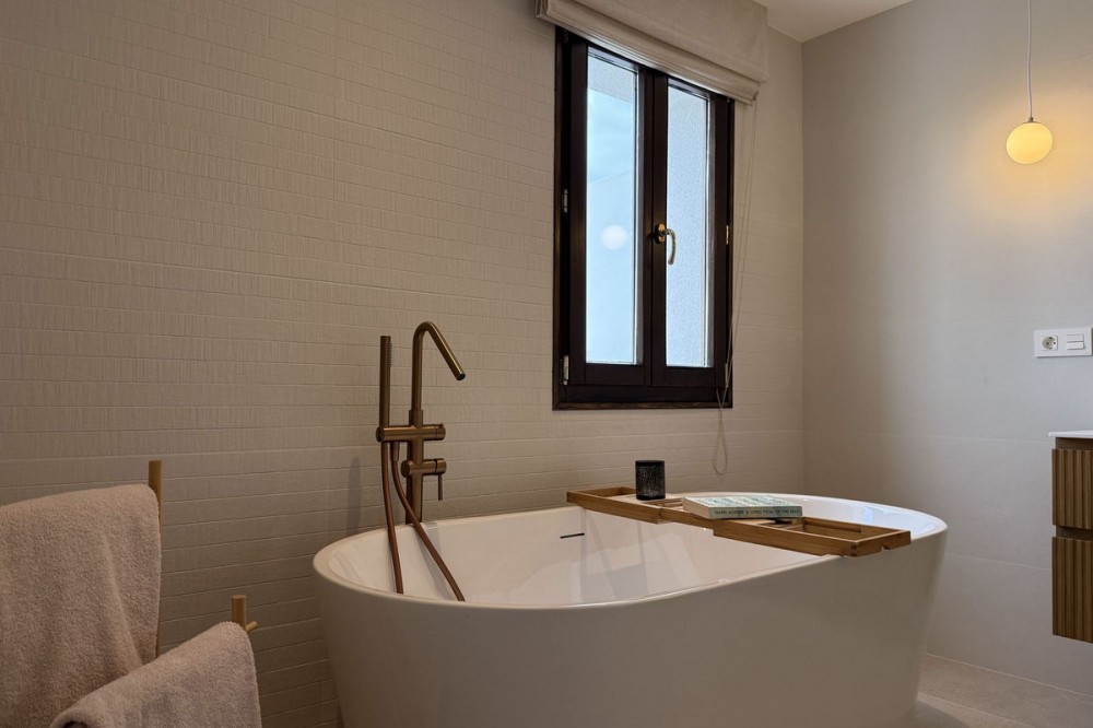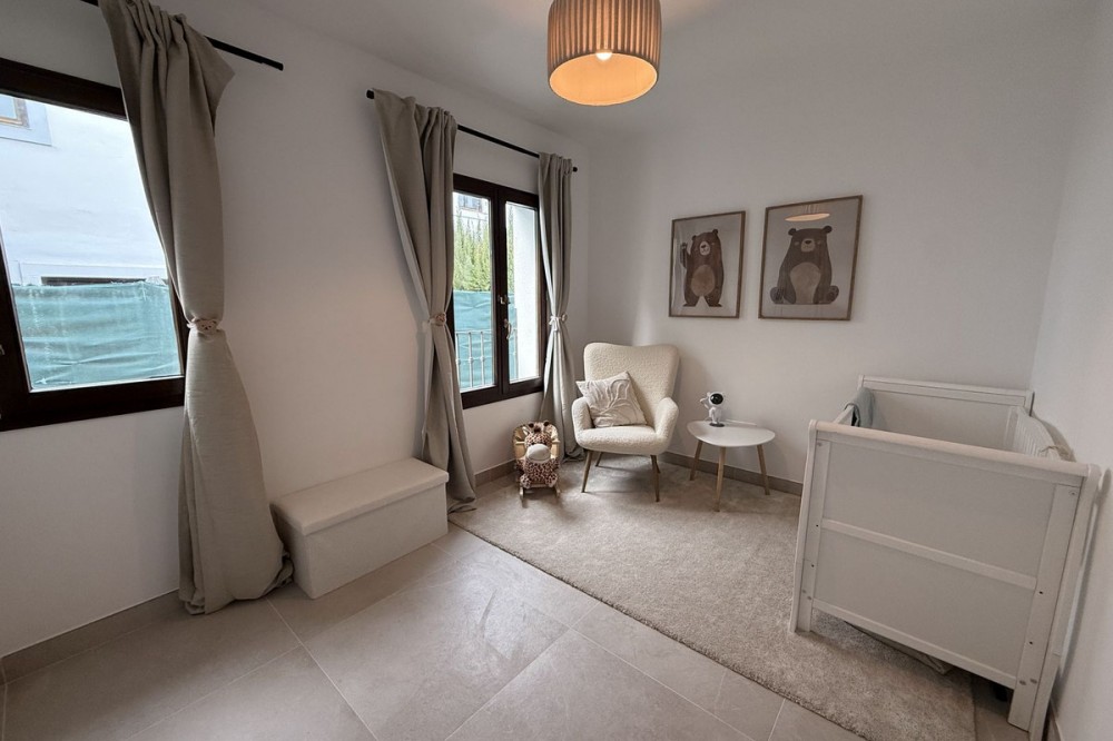 - Exquisitely Reformed Townhouse in Montevideo Hills – Where Contemporary Design Meets Mediterranean Lifestyle Welcome to a truly exceptional home in the prestigious Montevideo Hills community, perfectly positioned on the border of Estepona, Benahavís, and Marbella. This beautifully reimagined four-bedroom, three-bathroom home has undergone a comprehensive, no-expense-spared renovation, creating a turnkey property that blends modern luxury, intelligent design, and effortless indoor-outdoor living. From the moment you enter, the quality of the transformation is evident. The home has been fully rewired to current regulations with a brand-new fuse board, offering complete peace of mind alongside stylish aesthetics. Throughout the property, elegant porcelain flooring flows seamlessly from interior spaces to exterior terraces, creating a harmonious connection between the home and its Mediterranean surroundings. The same premium material has been carried through into the walk-in showers, reinforcing the sense of refined, hotel-inspired design. At the heart of the home lies the stunning open-plan kitchen, a true statement space designed for both everyday living and sophisticated entertaining. Finished with sleek cabinetry and equipped with top-of-the-range Bosch appliances—including oven, microwave, induction hob, and an impressive dual-temperature wine fridge—the kitchen combines functionality with indulgence. The innovative recirculating hob allows the cooking zone to be perfectly positioned on the peninsula, enhancing the social flow between kitchen, dining, and lounge areas. Comfort has been carefully considered in every detail. Underfloor heating warms key areas including the living room, kitchen, dining space, master bedroom, and both main bathrooms, while new energy-efficient ducted hot and cold air conditioning provides year-round climate control. The system is smart-enabled, allowing temperatures to be adjusted remotely from your phone—ideal for preparing the home ahead of arrival or managing energy use with ease. The master suite is a private sanctuary, opening onto a generous upper terrace with captivating views across the golf course to the mountains and glimpses of the Mediterranean Sea. Two further beautifully finished bathrooms serve the additional bedrooms, all designed as full bathrooms rather than guest WCs, reinforcing the home’s premium positioning. One of the property’s standout features is the 20m² lower terrace enclosed with elegant glass curtains. This versatile space can be enjoyed as an open-air terrace during the warmer months or transformed into an additional indoor living area in cooler seasons, effectively extending the usable footprint of the home throughout the year. Practicality matches luxury with exceptional storage and access. The property benefits from a large 20m² private storeroom in the garage and two allocated parking spaces directly connected to the home. From your parking area, a private staircase leads straight to the ground floor entrance, offering convenience, privacy, and security rarely found in similar properties. Set beside the renowned El Campanario Golf & Country Club, residents enjoy an enviable lifestyle with world-class facilities on the doorstep, including golf, gym, spa, tennis, and social club. Beaches, international schools, and a wide selection of restaurants and amenities are all just minutes away, while Puerto Banús, Marbella, and Estepona town centre are within easy reach. This is far more than a renovated townhouse—it is a thoughtfully crafted modern home designed for buyers seeking quality, comfort, and lifestyle without compromise. Whether as a full-time residence, luxury holiday home, or high-end investment, this property represents one of the finest opportunities currently available in the area. Townhouse, Estepona, Costa del Sol. 4 Bedrooms, 3 Bathrooms, Built 155 m². Setting : Close To Schools, Urbanisation. Orientation : East, South East. Condition : Excellent, Recently Refurbished. Pool : Communal. Climate Control : Air Conditioning, Hot A/C, Cold A/C, Central Heating, U/F Heating, U/F/H Bathrooms. Views : Mountain, Golf, Garden. Features : Covered Terrace, Fitted Wardrobes, Private Terrace, Paddle Tennis, Storage Room, Ensuite Bathroom, Double Glazing, Fiber Optic. Kitchen : Fully Fitted. Garden : Communal, Private. Security : Gated Complex. Parking : Garage, Covered, More Than One, Private. Utilities : Electricity, Drinkable Water. Category : Holiday Homes, Resale, Contemporary.
