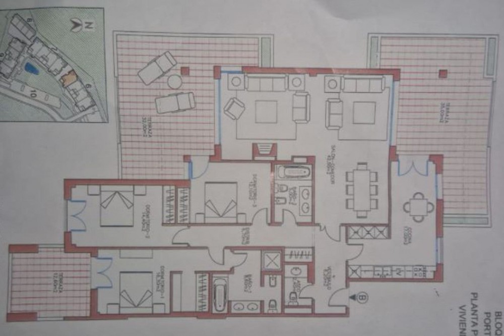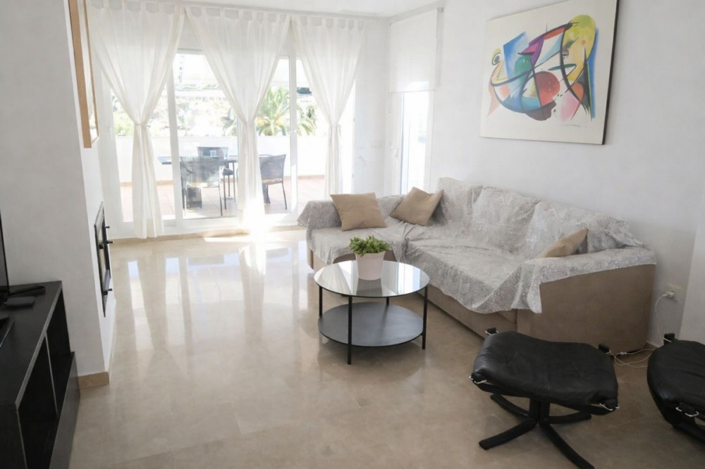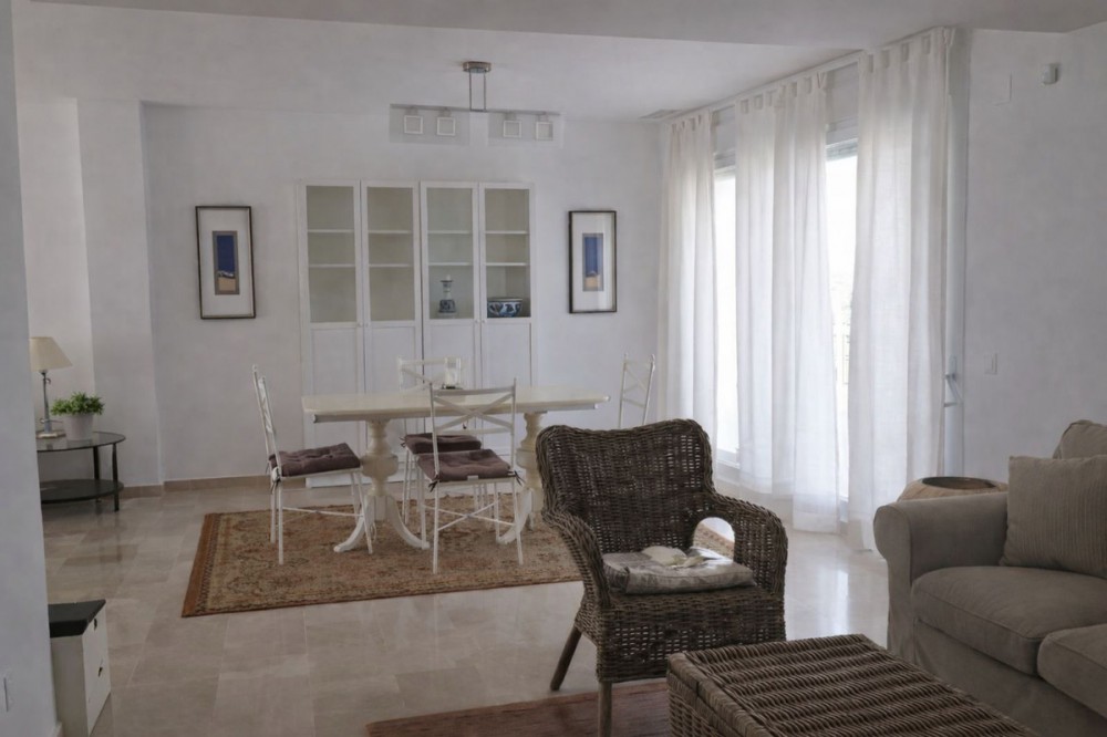 - SPACIOUS APARTMENT WITH SEA, GOLF AND GARDEN VIEWS – MIRAFLORES This exceptional apartment is located in the exclusive Golf Garden Miraflores urbanisation in Mijas Costa (Málaga), one of the most sought-after areas of the Costa del Sol, just 10 km from Marbella and 5 minutes by car from the beach. Situated on the first floor of a three-storey building, the property offers a generous 176 sqm built area, complemented by two large terraces totalling 80 sqm. One terrace overlooks the main communal garden, swimming pool and the sea, while the other enjoys open views over the golf course, providing sun and views throughout the day. The apartment comprises three spacious bedrooms with double beds, including a master bedroom with en-suite bathroom featuring hydromassage and direct access to a private terrace. There are three bathrooms in total. The independent kitchen (15 sqm) is fully fitted and equipped, offering both practicality and space. The apartment is sold fully furnished, with high-quality furniture, and is equipped with air conditioning, fireplace and LCD TV, making it ready for immediate use. Additional features include: Private storage room Private parking space with direct access to the building Well-maintained communal gardens and swimming pool Quiet and prestigious residential environment Both terraces are fully equipped with outdoor dining tables and chairs, ideal for enjoying the Mediterranean climate. All furniture and equipment are included in the price, making this property an excellent option as a permanent residence, holiday home or investment. Middle Floor Apartment, Riviera del Sol, Costa del Sol. 3 Bedrooms, 3 Bathrooms, Built 182 m², Terrace 80 m². Setting : Close To Golf, Close To Shops, Close To Sea, Close To Town, Close To Schools, Urbanisation. Orientation : East, South, South east Condition : Excellent. Pool : Communal. Climate Control : Air Conditioning, Hot A/C, Cold A/C, Fireplace. Views : Sea, Mountain, Panoramic, Garden, Pool. Features : Covered Terrace, Lift, Fitted Wardrobes, Private Terrace, Storage Room, Utility Room, Ensuite Bathroom, Marble Flooring, Double Glazing. Furniture : Fully Furnished. Kitchen : Fully Fitted. Garden : Communal. Security : Gated Complex, Entry Phone. Parking : Underground, Garage, Covered. Utilities : Electricity. Category : Golf, Holiday Homes, Investment.