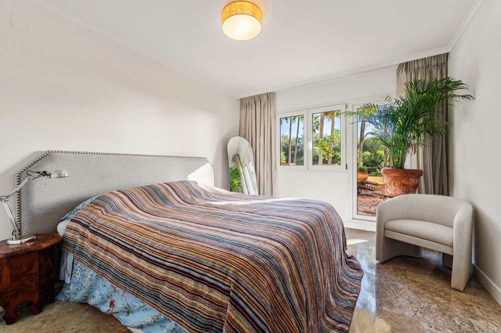 - Spacious middle-floor apartment with spectacular direct sea views, located in one of the most peaceful and secure areas of Marbella’s Golden Mile: Las Lomas del Marbella Club. Just 3 minutes from the beaches and the vibrant lifestyle of Puente Romano, this property stands out for its generous and comfortable living spaces. The apartment is partially renovated and ideally oriented to enjoy natural sunlight throughout the day while remaining cool during the summer months. It features three bedrooms, one of them with en-suite bathrooms, ample built-in wardrobes, and well-separated living areas that provide privacy and comfort. The kitchen is fully equipped and includes a separate laundry area located on an independent terrace. The bright living and dining room, complete with a fireplace, opens onto a huge terrace offering stunning direct views of the sea, as well as pleasant views of the pool and gardens. This is apartment is combining privacy with elevated panoramic views. The property includes one parking space and a storage room, both with lift access. Ideal as a second residence, a holiday rental investment, or a comfortable year-round home. The gated community offers concierge service and night security. Contact us for a viewing to see this incredible and unique apartment in person!
