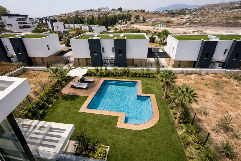 - Brand new 3 bedroom semi detached villa for rent and sale located in the exclusive Serene Atalaya residential complex on the New Golden Mile in Estepona. The villa is built in a contemporary modern architectural style using high quality materials and offers 200 m² built area with 154.97 m² living space, 77 m² of terraces, a private garden of 182 m², a private solarium of 44.47 m² and private parking for two cars. The property currently offers three bedrooms with the possibility to create up to two additional bedrooms in the basement, allowing a total of up to five bedrooms. The basement benefits from natural light and can be converted into a gym, cinema room, games room, lounge or multifunctional living area. The villa is located within a gated and secure urbanisation surrounded by prestigious golf courses and green areas. It is just 7 minutes’ drive from Puerto Banús, 15 to 18 minutes from Marbella town centre and approximately 45 minutes from Málaga International Airport. Mercadona supermarket and daily services are within around 15 minutes’ walking distance. The villa is rented unfurnished. Optional full furnishing is available at an additional cost of 500 euros per month and a private swimming pool can be added for an extra 500 euros per month. This property is ideal for permanent living, a second residence or as an investment on the Costa del Sol.