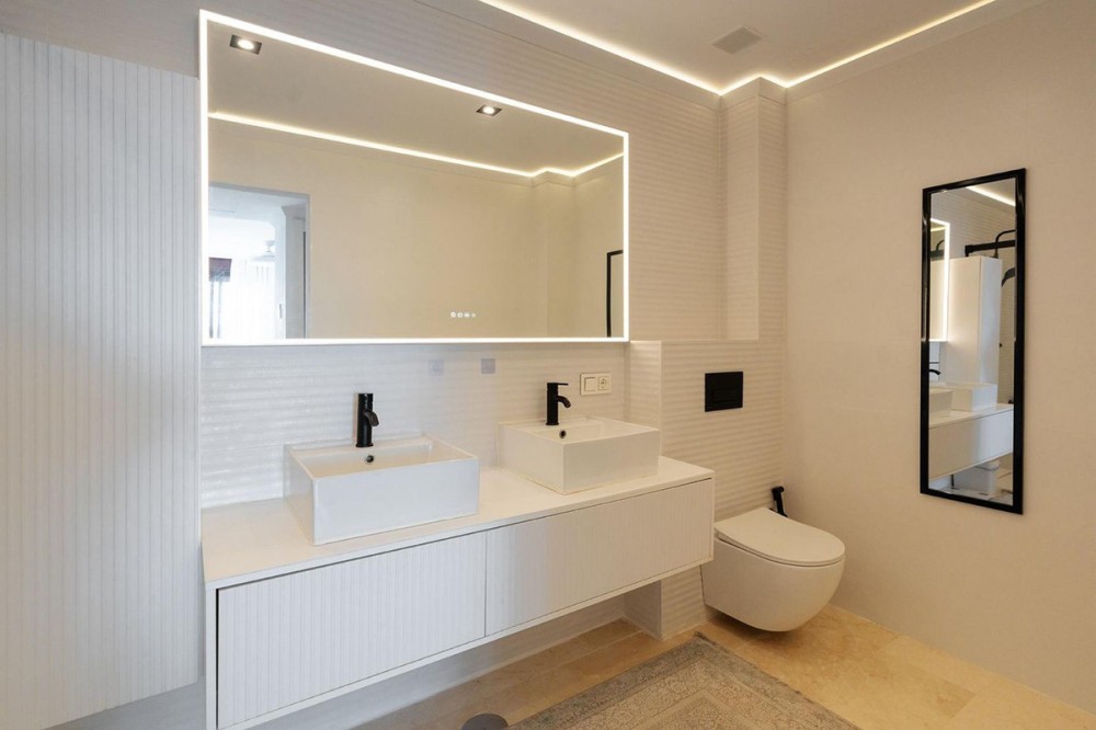 - SPECTACULAR RENOVATED HOUSE IN A UNIQUE SETTING Elegant, fully renovated house located in the tranquil and exclusive natural setting of La Mairena, in the upper part of Elviria, just a few minutes' drive from the beach, shopping center, and all amenities. This spectacular renovated house, with its elegant contemporary style, offers a total of three bedrooms with three bathrooms, plus an office area, and a large living room of over 50m2 with an integrated kitchen. Outside, it boasts a fantastic 55m2 terrace with beautiful views, as well as a private 70m2 garden on two levels. Includes a garage and storage room. An ideal property for clients who want to enjoy an elegant, fully renovated house in a peaceful and private setting. *The development has approved the construction of a communal swimming pool for 2026.