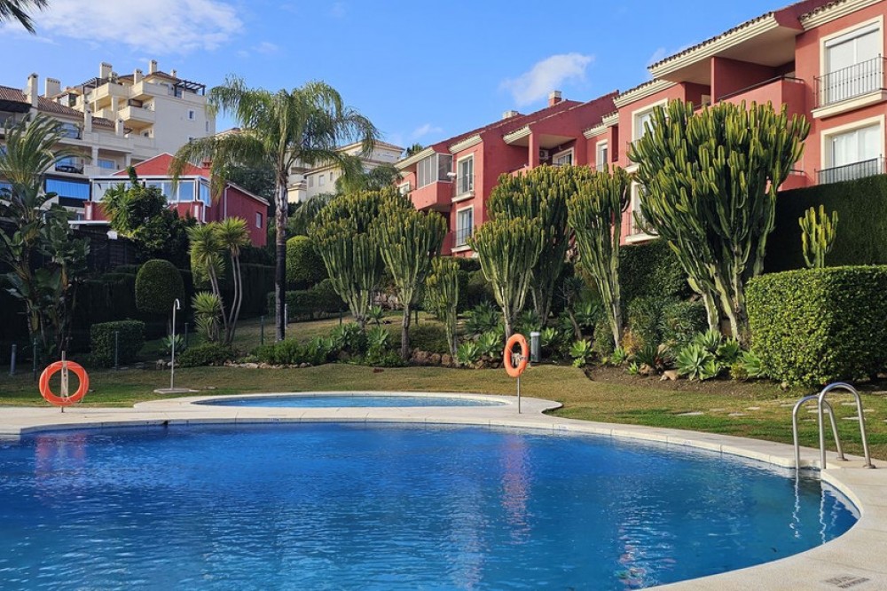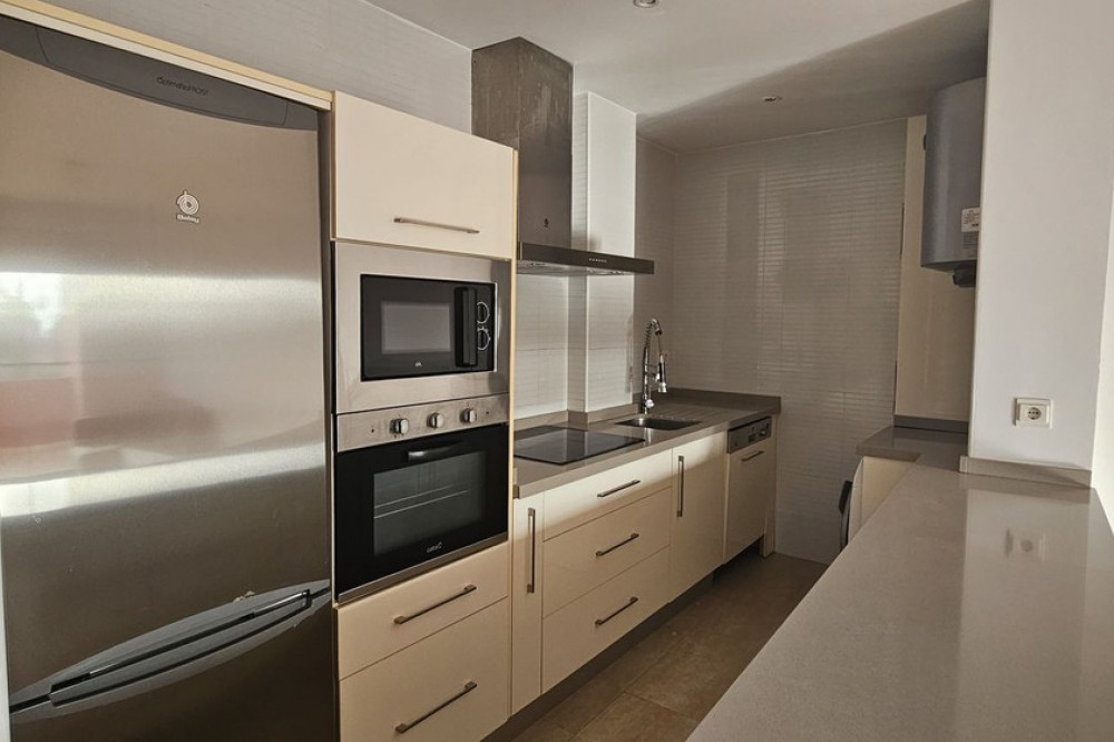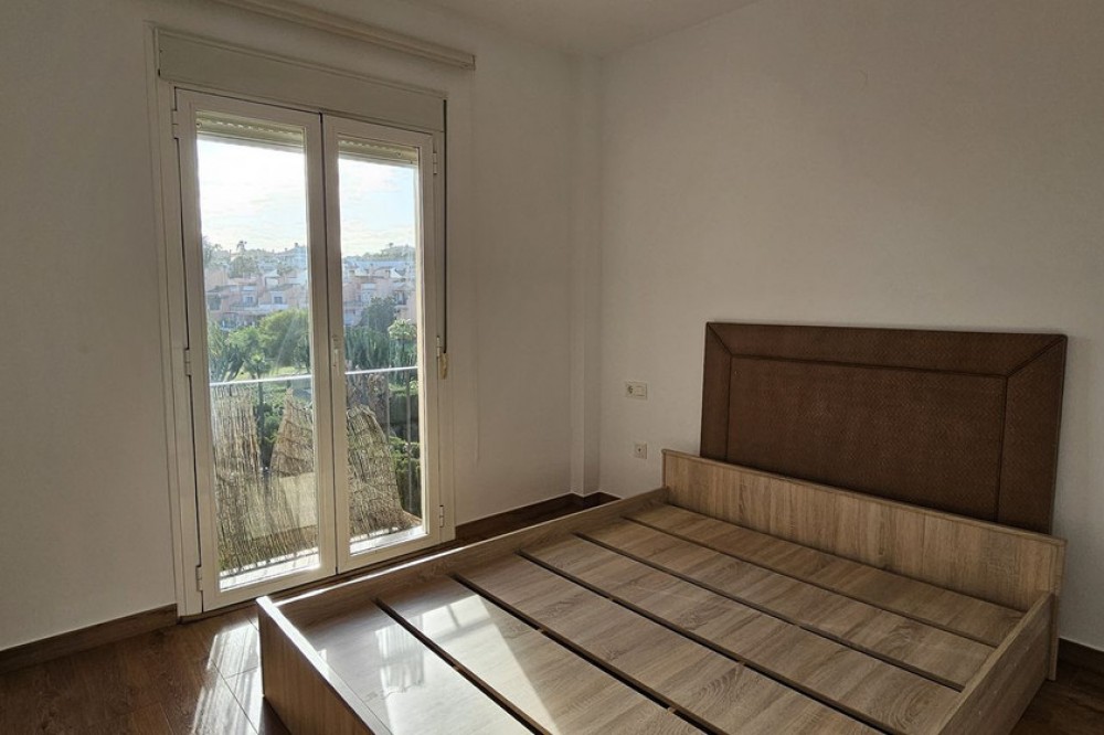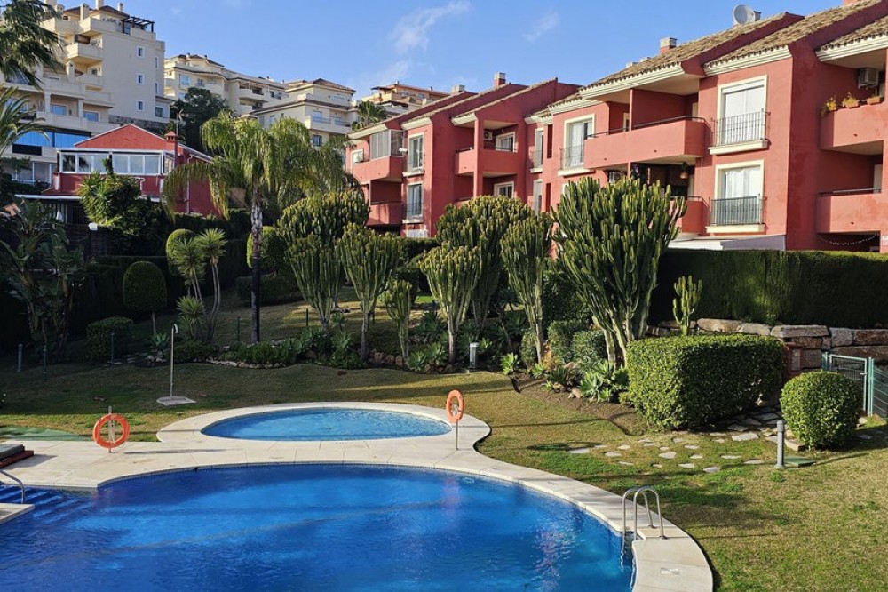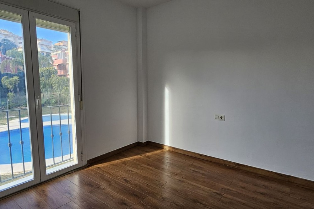 - Spacious 3-bedroom, 2-bathroom apartment in a private residential complex with ample green areas, a communal swimming pool, and a barbecue area. Parking space included in the price. Holiday rentals are permitted by the community. Located in Riviera del Sol, next to numerous golf courses, less than 10 minutes from Fuengirola and 15 minutes from Marbella. This first-floor corner apartment (no elevator) features a large living room with a terrace, a fully renovated and furnished open-plan kitchen with appliances, three bedrooms with built-in wardrobes, and two bathrooms, one of which is en-suite.