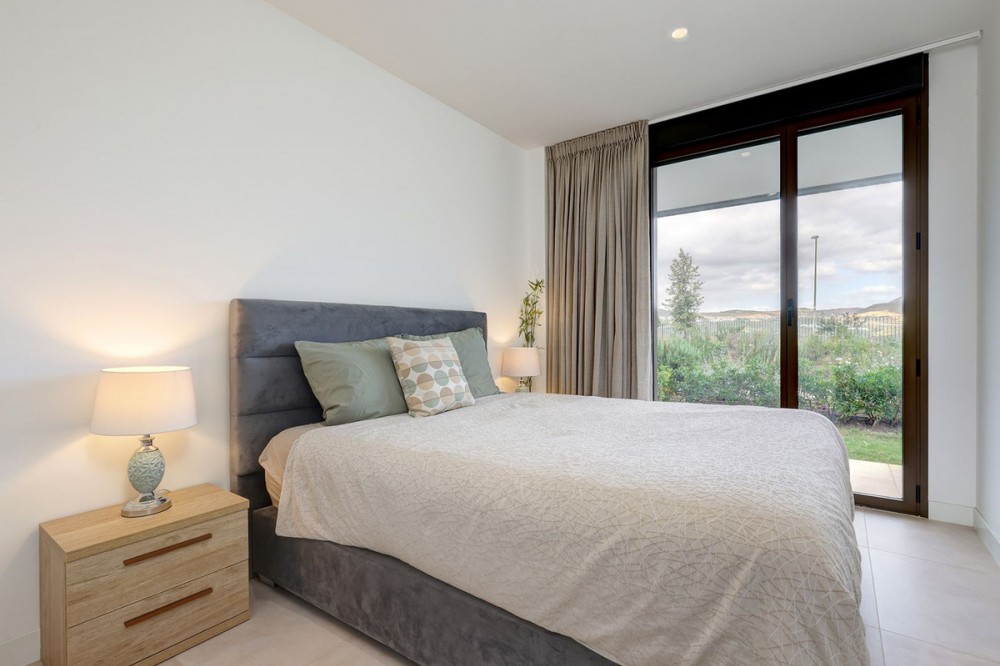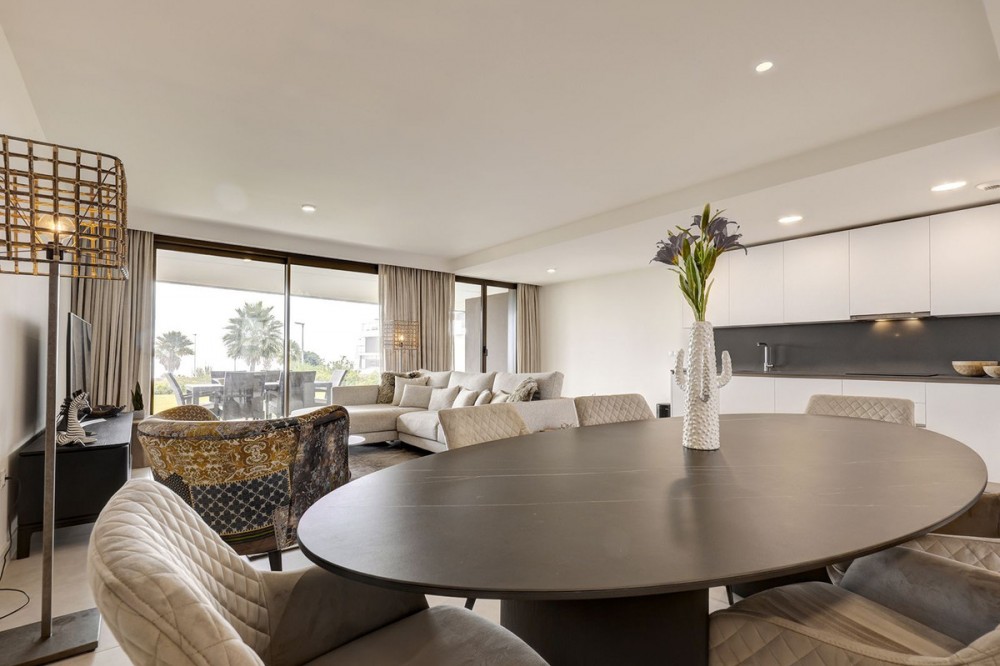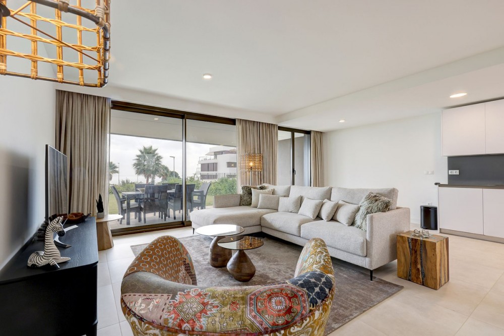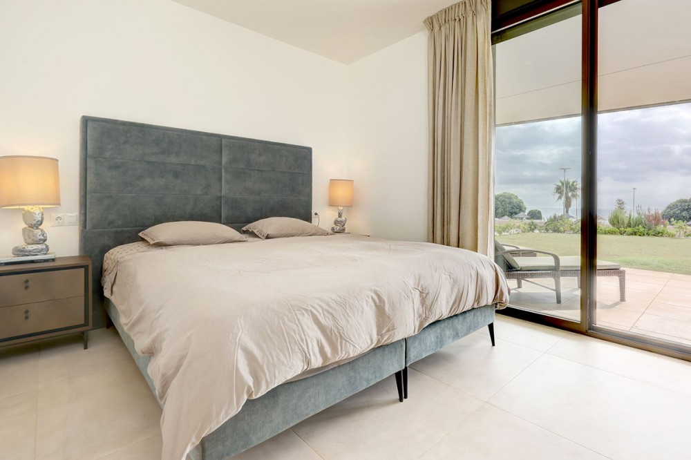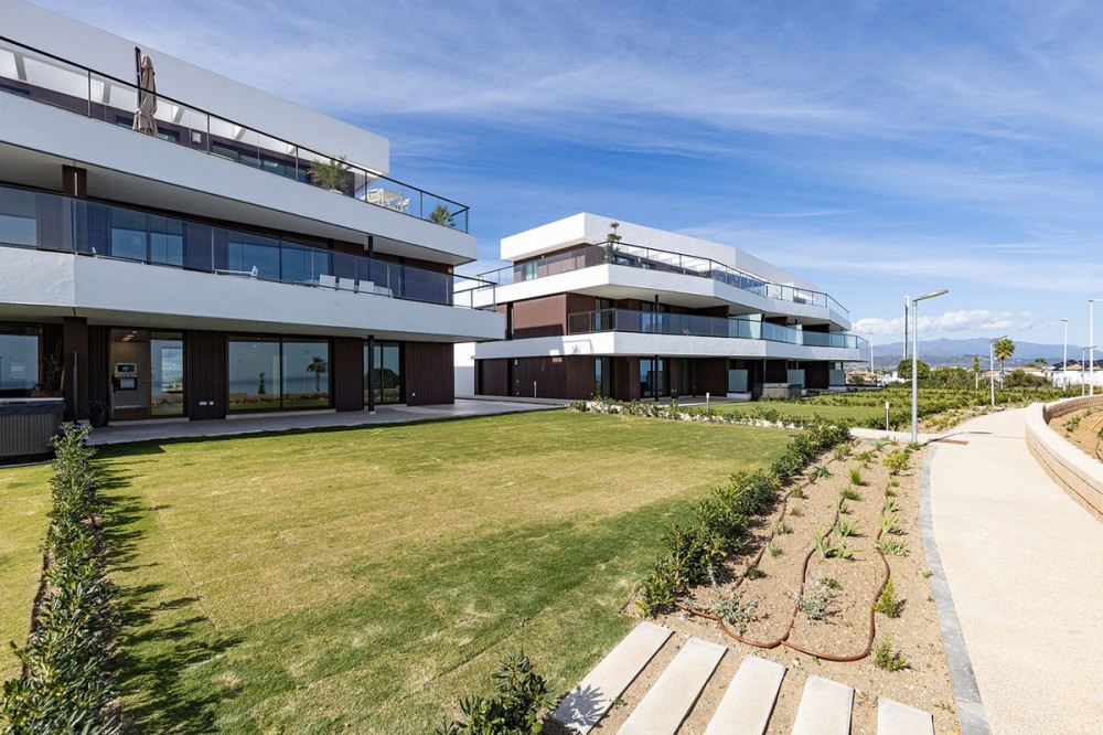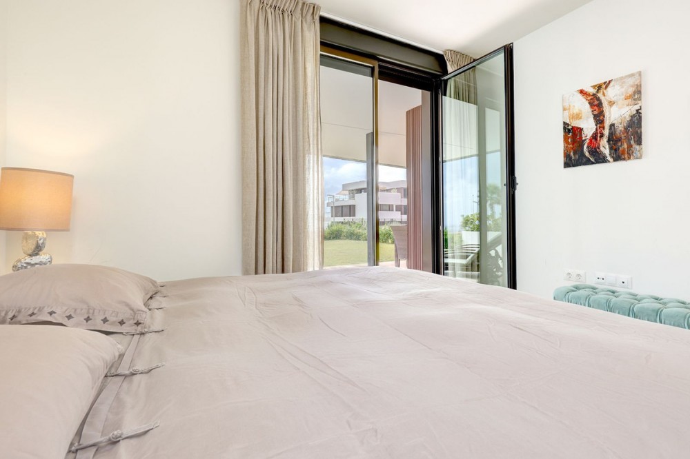 - Brand-new 3-bedroom apartment with a private 193 m² garden for sale in La Sabina, Casares Costa Brand new, south-facing ground floor apartment with stunning location on an elevated plot offering breathtaking views over the Mediterranean. This meticulously designed apartment welcomes you into a refined world of comfort and contemporary style. The expansive living area is flooded with natural light and flows effortlessly into a fully equipped, open-plan kitchen—perfectly conceived for both everyday living and entertaining. The property offers three generously sized double bedrooms, each enjoying direct access to the terraces and beautiful views over the private garden that surrounds the home, creating a seamless indoor–outdoor lifestyle. Two stylishly appointed bathrooms further enhance the sense of quality and sophistication throughout. The sale includes an underground parking space and a storage room, ensuring both convenience and security. An exceptional home that combines modern design, generous outdoor space, and comfort in a highly desirable setting. Situated in the highly sought-after area of Casares Costa, the La Sabina development enjoys a prime location between the exclusivity of Sotogrande and the charm of the coastal town of Estepona. The area is renowned for its pristine beaches, all just minutes away, as well as its proximity to some of the Costa del Sol’s most prestigious golf courses. Among them is the world-famous Finca Cortesín, located only a short drive from the property. This exceptional setting perfectly combines tranquility, natural beauty, and easy access to leisure, dining, and lifestyle amenities—making it an ideal location for both permanent living and holiday enjoyment.