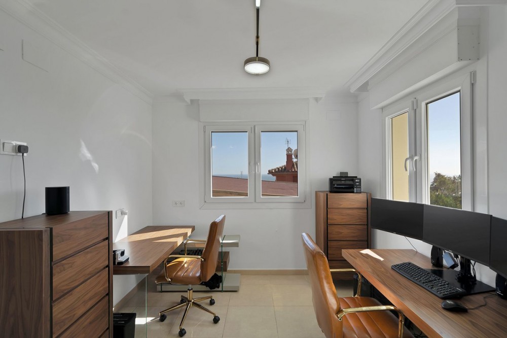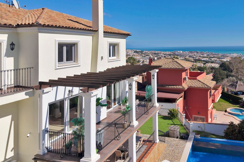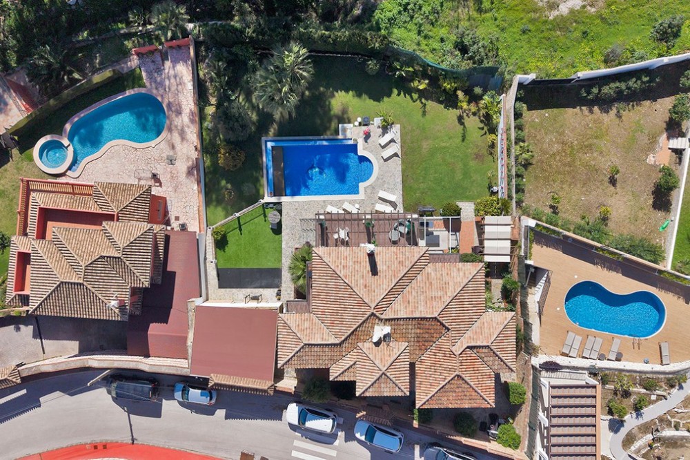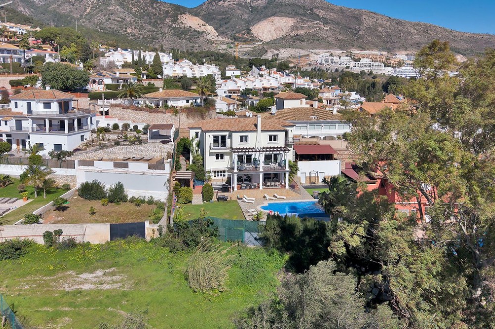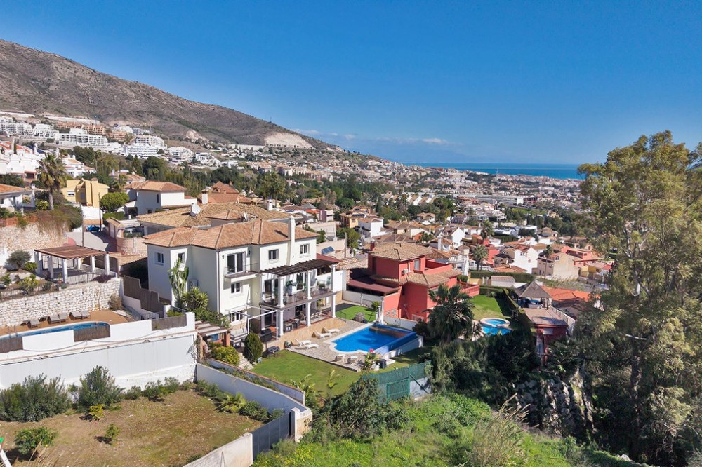 - Set within one of Benalmádena’s most sought-after residential enclaves, this exceptional detached villa is a refined expression of Mediterranean luxury, where contemporary comfort meets enduring Andalusian character. Occupying a generous 923 m² plot and offering approximately 500 m² of beautifully appointed living space, the villa was constructed in 2011 and has since been fully renovated internally to an impeccable standard. While the interior reflects modern elegance, the exterior remains true to its Andalusian roots, preserving the charm and authenticity of traditional southern Spanish architecture. The residence features five luxurious bedrooms and five elegantly designed bathrooms, providing privacy and comfort for both residents and guests. Expansive living areas open seamlessly onto sun-drenched terraces, framing breathtaking panoramic views of the Mediterranean Sea and surrounding mountains. At the heart of the outdoor space lies a heated swimming pool, perfectly positioned for year-round enjoyment, complemented by multiple terraces ideal for entertaining, dining, or moments of quiet relaxation. A rare highlight of this property is its exceptional location, just 400 metres from the heart of Benalmádena Pueblo. This allows easy walking access to its charming streets, boutique restaurants, and local amenities, while still enjoying peace, privacy, and elevated views. This is a rare opportunity to acquire a distinguished home that offers privacy, prestige, and an unrivalled lifestyle in one of the Costa del Sol’s most desirable locations.