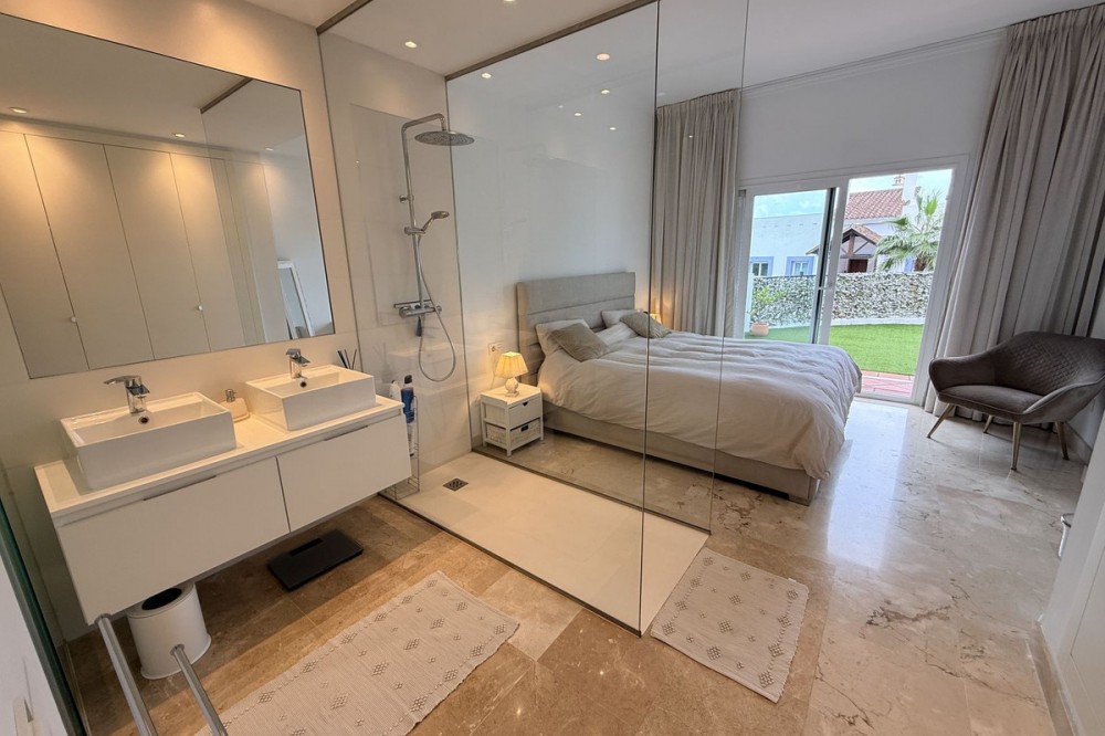 - Ground Floor Apartment, Benahavís, Costa del Sol. 3 Bedrooms, 2 Bathrooms, Built 109 m², Terrace 48 m², Garden/Plot 47 m². Setting : Suburban, Village, Close To Golf, Close To Shops, Close To Town, Close To Schools, Urbanisation. Condition : Excellent. Pool : Communal, Indoor, Heated, Children`s Pool. Climate Control : Air Conditioning, Hot A/C, Cold A/C, Central Heating. Views : Mountain, Country, Urban. Features : Covered Terrace, Fitted Wardrobes, Near Transport, Private Terrace, Gym, Sauna, Storage Room, Utility Room, Ensuite Bathroom, Double Glazing, Restaurant On Site, Fiber Optic. Furniture : Not Furnished. Kitchen : Fully Fitted. Garden : Communal, Private, Easy Maintenance. Security : Gated Complex, 24 Hour Security. Parking : Underground, Garage, Private. Utilities : Electricity, Drinkable Water. Category : Holiday Homes, Investment, Resale.