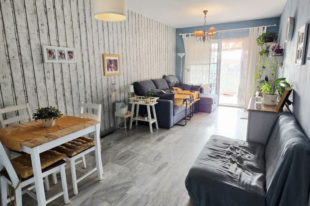 - Ground Floor Garden Apartment in El Faro – Costa del Sol Charm Meets Everyday Convenience Welcome to this delightful 2-bedroom, 2-bathroom ground floor apartment nestled in the peaceful enclave of El Faro. With 85 m² of built space, a 15 m² private terrace, and a 30 m² garden plot, this home offers the perfect blend of indoor comfort and outdoor serenity. Set within a gated suburban community, you're just 10 minutes’ walk from the beach and public transport, and a short drive to Marbella (20 mins) and Málaga Airport (25 mins)—ideal for both weekend escapes and long-term living. ✨ Property Highlights: - Condition: Excellent overall, with marble flooring and a fully fitted kitchen - Views: Lush garden views from every angle, with sea views at the end of the beautifully landscaped communal gardens - Outdoor Living: Enjoy alfresco dining or morning coffee on your private terrace, surrounded by greenery - Amenities: Access to a communal pool, street parking, and electricity utilities - Security: Located in a secure gated complex - Furniture: Optional—move in with ease or style it to your taste Lifestyle & Location: - Setting: Close to golf courses, the sea, town, and forest trails—perfect for nature lovers and active lifestyles - Community: Quiet, well-maintained urbanisation with a relaxed, friendly vibe. 1 comunal pool for the bloque a second large pool and gardens for El Faro community. - Category Appeal: Ideal as a holiday home, golf retreat, or bargain investment opportunity Whether you're looking for a peaceful coastal base or a smart addition to your property portfolio, this apartment offers unbeatable value in one of Costa del Sol’s most desirable pockets.
