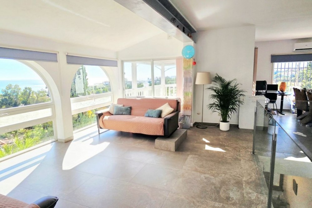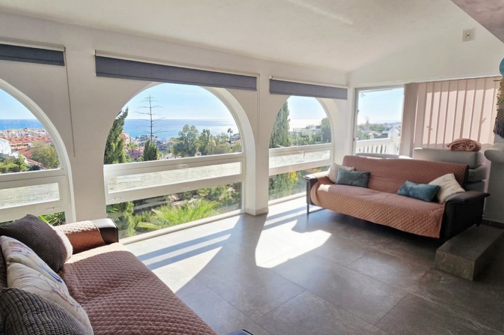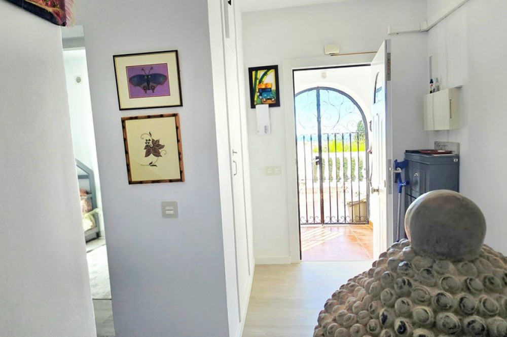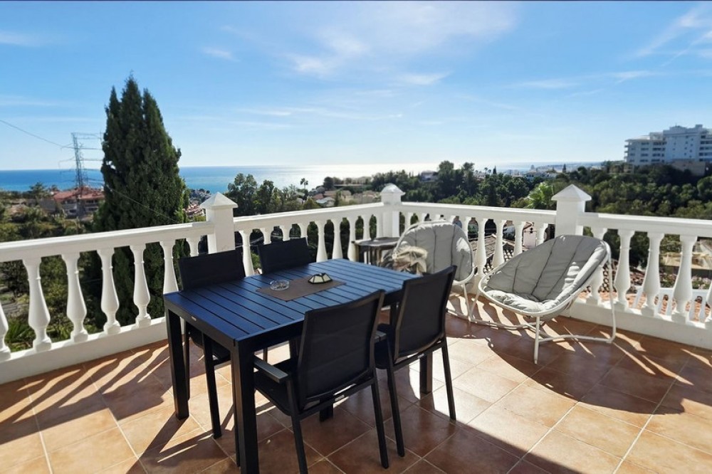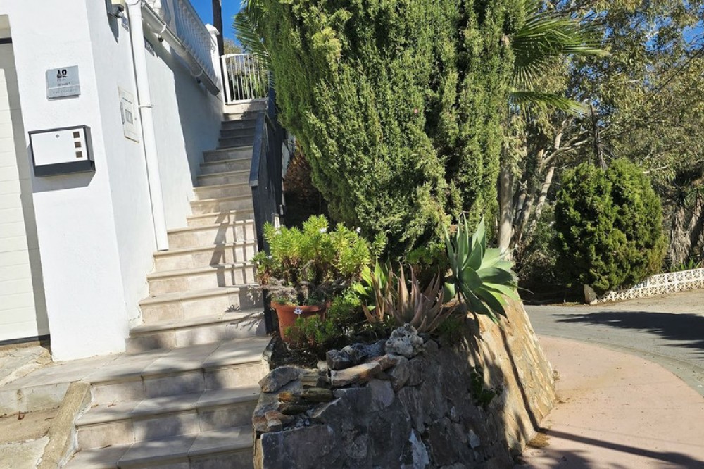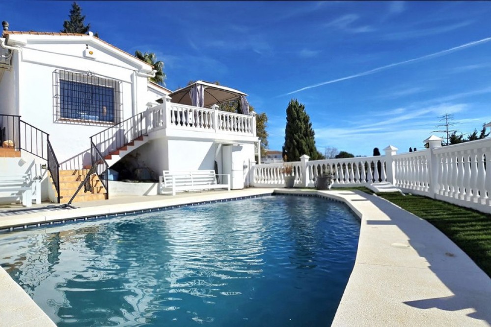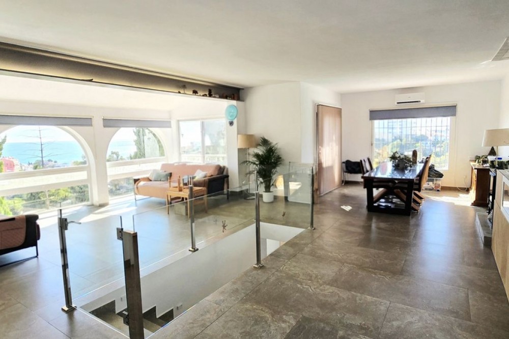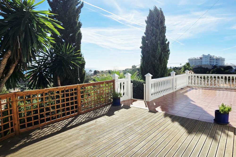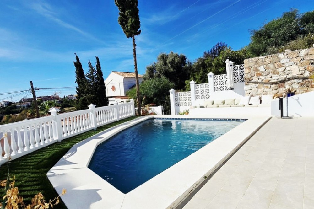 - A Peaceful Villa with Endless Views in Torreblanca, Fuengirola Welcome to your future home — a detached villa tucked into the quiet, secure hills of Torreblanca, Fuengirola. Just a 15-minute stroll to the beach and a 5-minute drive to shops, restaurants, and schools, this property offers the perfect blend of tranquility and convenience. With public transport just around the corner, getting around is effortless. Set on a generous 527 m² plot, the villa is bathed in natural light and boasts breathtaking views from every angle — whether you're sipping coffee on the terrace or relaxing by the pool, the scenery is always spectacular. Comfortable Living Spaces. As you enter the, recently renovated, main level, you're welcomed by three bright bedrooms, including a primary suite with its own en-suite bathroom. The other two bedrooms share a well-appointed bathroom, and there's an additional room ideal for a home office, nursery, or guest room — all with lovely views and plenty of light. A Home to Make Your Own. Upstairs, the open-plan living and dining area is spacious and full of character, with large windows that frame the stunning surroundings. The partially renovated kitchen invites you to add your own style and finish. Step out onto the wrap-around terrace, where you can choose your favorite corner to unwind — sunny mornings, shaded afternoons, or golden sunsets. Outdoor Potential Outside, the villa offers even more to dream about: - A private swimming pool with panoramic views — imagine transforming it into an infinity pool or adding glass surrounds for a sleek, modern touch - A working sauna that just needs a little love to become your personal wellness retreat - An outdoor toilet and space for a summer kitchen or chill-out area - Two separate entrances, offering privacy and flexibility for guests or future rental potential. With features like solar panels and dual access points, this home is not only beautiful but also smart and sustainable — ready to meet the needs of modern living. This is more than a house — it’s a canvas for your vision, a place to create memories, and a home that grows with you. Whether you're looking for a peaceful family residence, a holiday escape, or a smart investment, this villa is ready to become something truly special.
