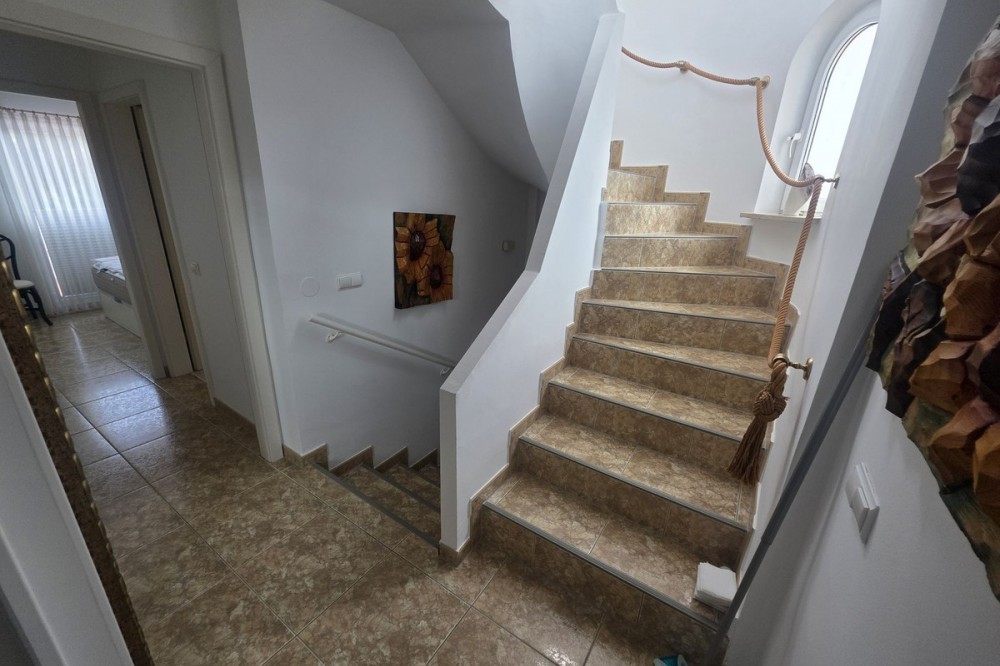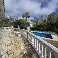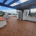 - Villa with private garden and pool for sale in Calahonda, Mijas Costa! This unique villa is facing south east and is in excellent condition, built in the year 2000 with high quality materials. Some highlights are double glazed windows, a security system, a large glazed terrace with seaviews, central heating, a roof top terrace, a private parking space, a basement, a private pool and a large garden. Close to Marbella and Malaga Airport and city. Currently the villa offers on the ground floor level a large open kitchen with access to the living and dining room, a storage and a full bathroom. Access to the large terrace from the living room with good views down the green valley and to the sea. On the upper level you find two bedrooms (1 Ensuite and with access to a large terrace) and two bathrooms. All the way on top there is a roof top terrace again with great views. Possibility to built up to a total of three of four bedrooms due to the large basement space.