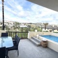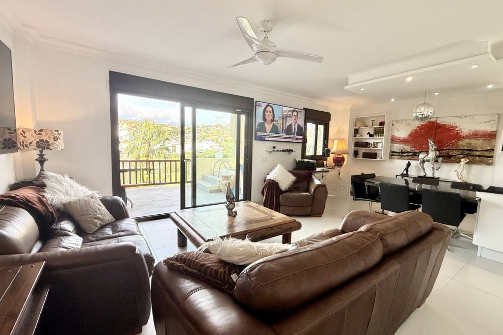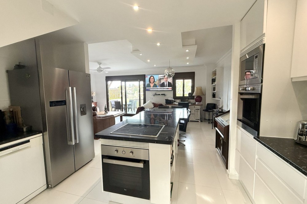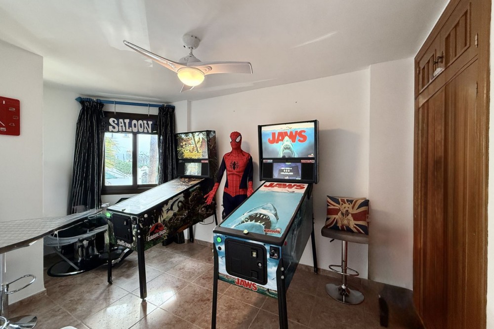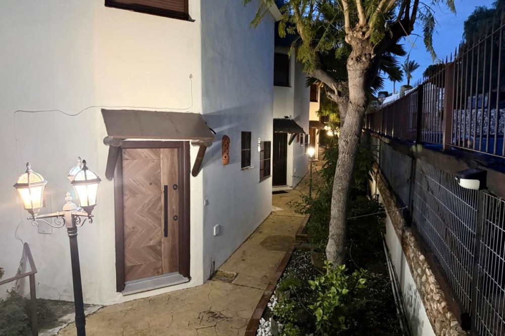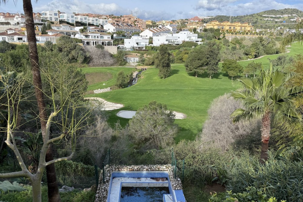 - Bright and spacious detached villa with private pool on terrace, yet located in a gated community. This unique property is distributed over two floors, the ground floor comprising a hallway, stunning lounge/dining room with open plan, newly fitted modern kitchen with a central island area. From the lounge through large patio doors is the newly retiled terrace with private pool, overlooking Miraflores Golf Course. There is also a guest cloakroom and utility area/storage room. On the upper floor level is the very spacious master bedroom with an en-suite bathroom, 2 further double bedrooms, and a family bathroom. The property also has a private garage, accessed via a gated communal driveway. In addition, the current owner has converted a basement area into a self-contained studio apartment, perfect for those extra guests! The community comprises pathways, subtropical trees, plants, and flowers, and is beautifully maintained. It is located in the heart of the lower Riviera del Sol, just a short walk to local shops, bars, and restaurants, and even the beach and public transport. This property is a perfect family home but offers superb rental income potential too! This community permits short-term rentals. Indoor built area: 110m². Terrace: 15m². Parking space: 23m². Total: 148m². Community fees: €190 per month. IBI fees: €684 per year.