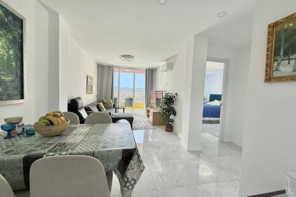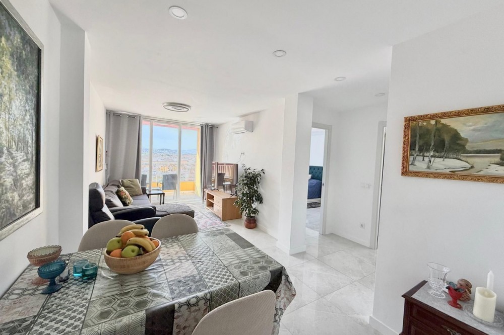 - .Top-Floor Apartment in the Heart of Fuengirola with Open Views & Afternoon Sun Discover this fantastic top-floor apartment located right in the center of Fuengirola, less than a 5-minute walk from the Fuengirola Train Station and under 10 minutes walking distance to the beach. An unbeatable location combining urban convenience with Mediterranean lifestyle. The property has been fully renovated and is ready to move in, offering a modern and functional layout. It features 2 bedrooms, 1 full bathroom, a separate kitchen, and a bright living room. The apartment benefits from air conditioning throughout, ensuring year-round comfort. One of its standout features is the private terrace, perfect for relaxing while enjoying the afternoon sun and beautiful open views over the town, towards Mijas Pueblo and the impressive Sierra de Mijas. A rare combination of vibrant city atmosphere and scenic mountain backdrop. Imagine ending your day with a glass of wine on the terrace, watching the sky turn golden over the mountains — a small daily luxury that makes all the difference. Ideal as a permanent residence, holiday home, or high-demand rental investment thanks to its prime central location. The best part? Just bring your suitcase.