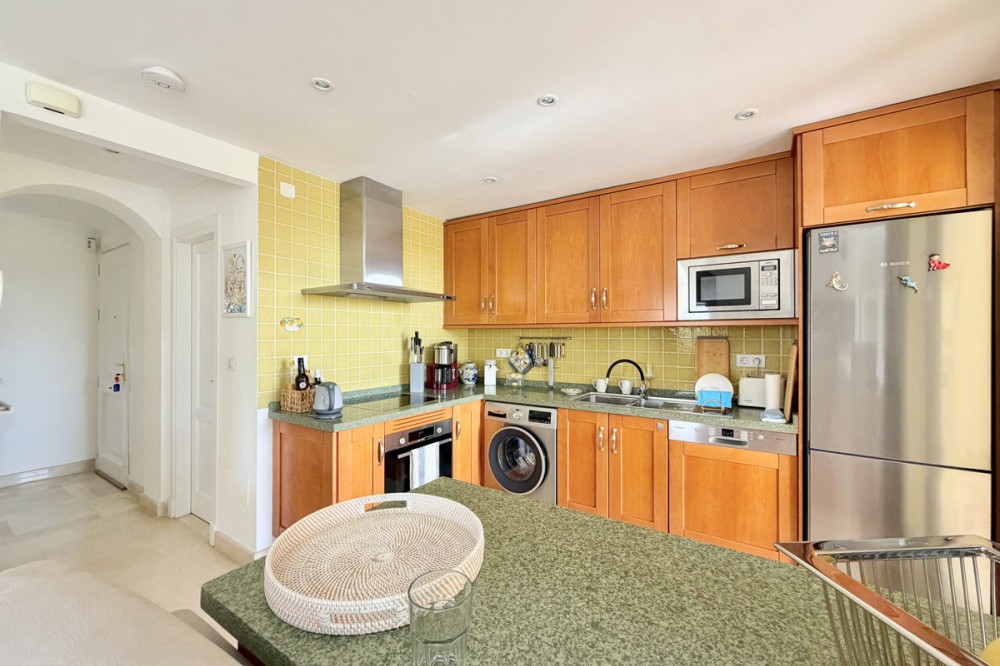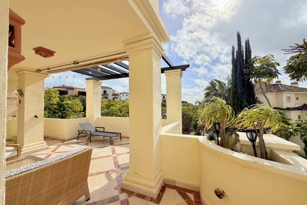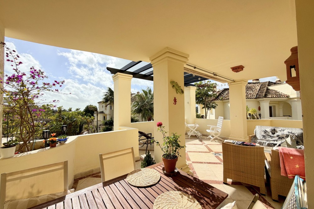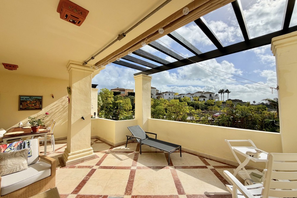 - This luxurious apartment is located in the prestigious Majestic Gardens development in Casares, Málaga. Situated in a privileged area just 750 meters from the beach and facing southeast, it stands out as the best apartment in the complex. Its location is ideal, being only a few minutes’ drive from supermarkets and the nearest village, a five-minute walk from the golf club, gym, and restaurants, and very close to shops and services. The property, with 153m² built and 129m² of interior space, offers a spacious and modern design with a fully equipped open-plan kitchen that integrates perfectly with the large living room. The generous living area extends to a private 35m² terrace, from which you can enjoy views of the beautiful gardens and the communal pool. The apartment features two bedrooms, both with fitted wardrobes and en-suite bathrooms. The master bedroom includes a generously sized bathroom with both a shower and a bathtub, while the second bedroom also has a spacious bathroom with a walk-in shower. The property is delivered fully furnished and equipped with air conditioning, marble floors, fireplace, double glazing, video intercom, storage room, fiber optic internet connection, and Wi-Fi. The development is gated and secure, with beautiful gardens and a communal pool. The building has a lift and the apartment includes a private parking space. Pets are allowed and the property is in excellent condition, making it an ideal option for those seeking comfort, exclusivity, and an unbeatable location on the Costa del Sol.