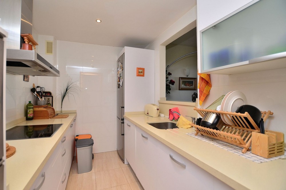 - Beautiful CORNER apartment located in Altos del Higuerón (Benalmádena), next to the shopping center. LARGE TERRACE of 38 m2, with views of the sea and the communal gardens. Being a corner property, it offers plenty of privacy. It has a BIG GARAGE with space for 2 cars. The property is in perfect condition and ready to move in. Gated complex with 2 communal swimming pools, spacious gardens and 24-hour security with video cameras. Within walking distance you will find everything you need, such as a supermarket, bars, a pharmacy, a bus stop and immediate access to the A-7 motorway. It is also less than 5 minutes by car from the beach and the local train station. The layout is as follows: Hall, 3rd bedroom, bathroom, 2nd bedroom (currently used as an office), kitchen, living room with access to the terrace and master bedroom with en-suite bathroom. Access to the terrace is also available from the master bedroom. Total size: 129 m² (91 m² of apartment + 38 m² terrace). Floor: 1st. Orientation: Southeast. Year of construction: 2006.