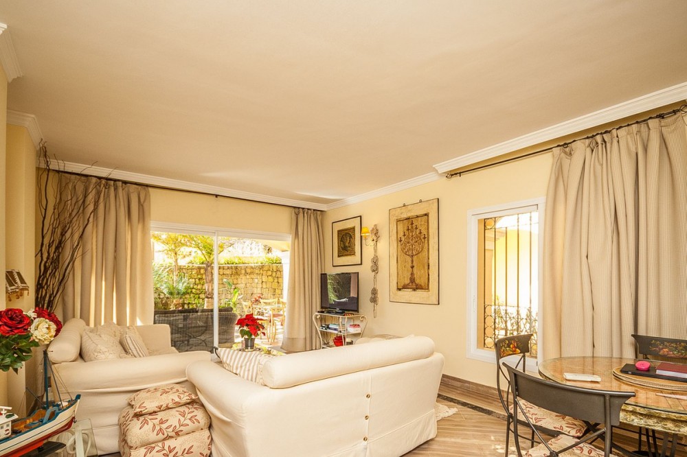 - Discover your dream retreat in this stunning garden apartment, ideally situated just a short stroll from vibrant shops and the pristine beach. Nestled within a fully gated community, residents enjoy access to four sparkling swimming pools and lush tropical gardens. Spanning 117 square meters, this spacious apartment features the potential to open up the kitchen, enhancing the flow of the living space. Luxurious bathrooms are equipped with underfloor heating for added comfort, while the expansive terrace offers both open and covered areas, perfect for soaking up the sun or enjoying a shaded escape. Embrace a lifestyle of relaxation and convenience in this exceptional property.