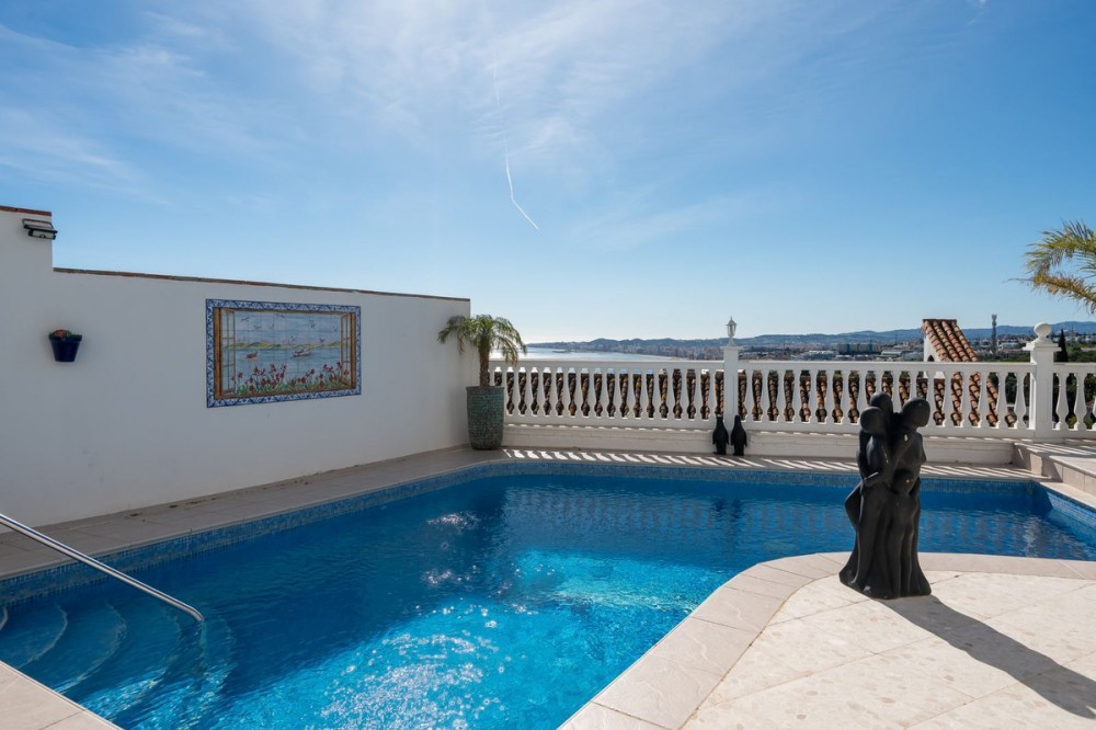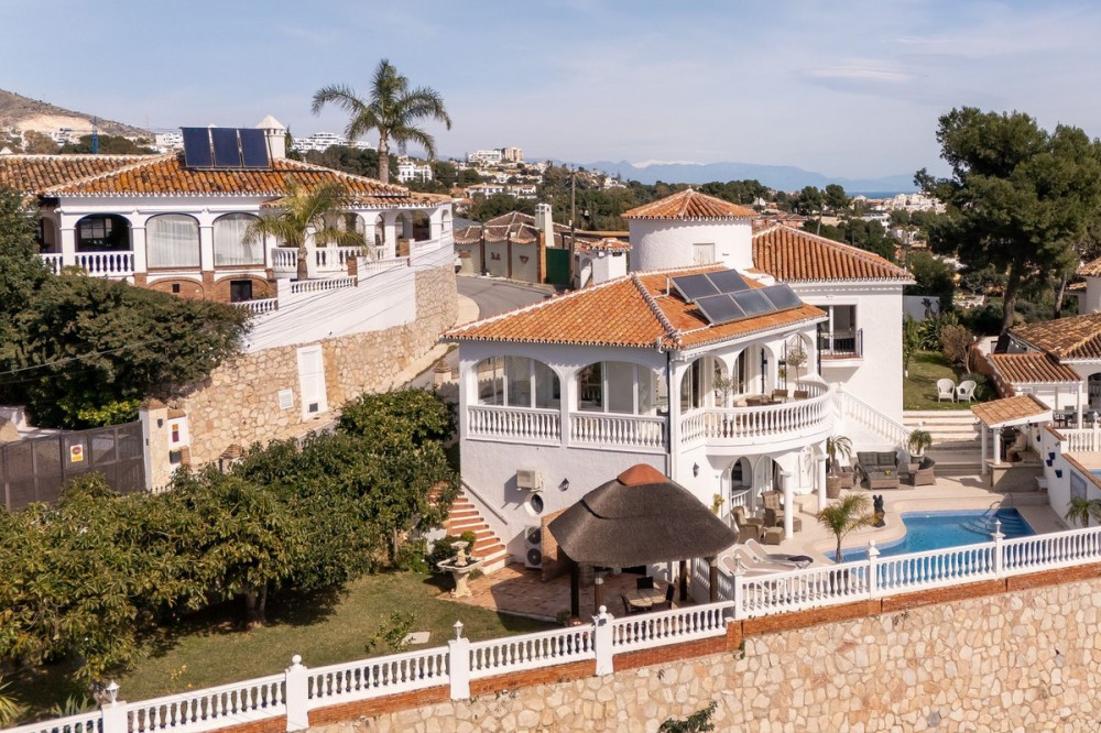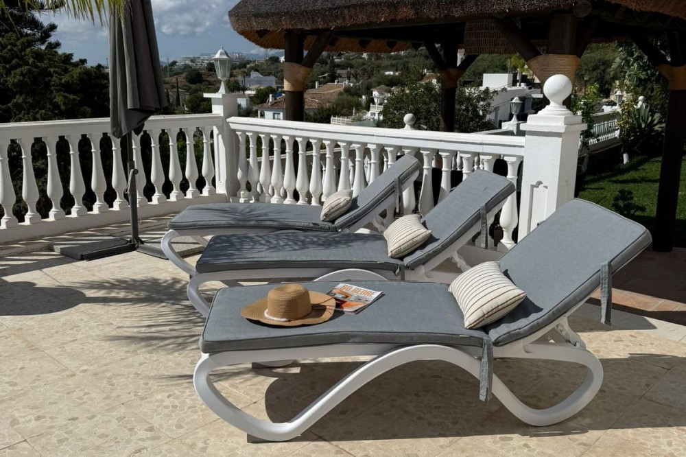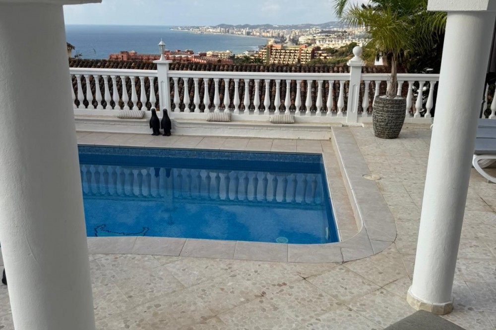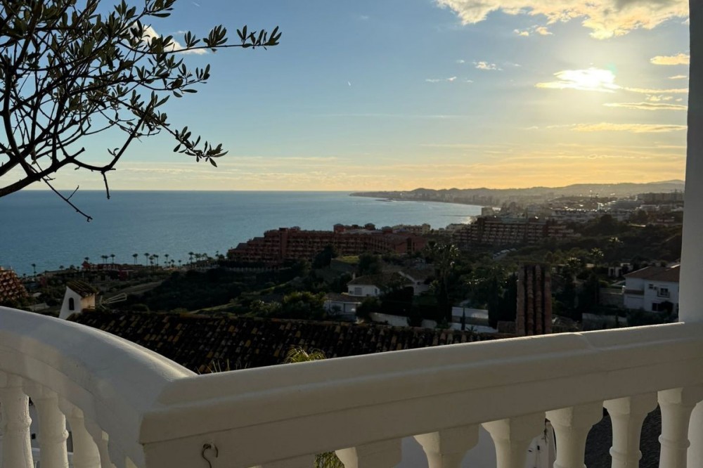 - **Stunning Villa with Panoramic Sea Views in La Capellania, Benalmádena** Discover this exceptional villa located in the prestigious area of La Capellania, offering breathtaking panoramic views over the entire Fuengirola Bay. The main house features 3 spacious bedrooms, 2 bathrooms, and a guest toilet (1 of which is a large master bedroom ensuit), along with a large, bright, and open-plan living area that flows directly onto a generous terrace — the perfect spot to relax and soak in the stunning Mediterranean scenery. In addition, the property includes a **separate guest apartment** with its own bedroom, living room, open kitchen, bathroom, and guest toilet, with direct access to the villa’s beautiful pool area — and even here, the sea views continue to impress. The villa boasts solar panels for hot water, a saltwater swimming pool, and an outdoor shower with both hot and cold water. The lush garden is a true oasis, filled with fruit trees such as avocado, grapefruit, orange, and lemon, and features a charming Palapa, ideal for entertaining guests or enjoying relaxed barbecue evenings. While the villa is extremely well maintained, it offers an exciting opportunity for modernization — allowing new owners to create and personalize their dream home in one of the Costa del Sol’s most sought-after locations. A rare opportunity combining location, views, space, and potential — this is a home you truly don’t want to miss.