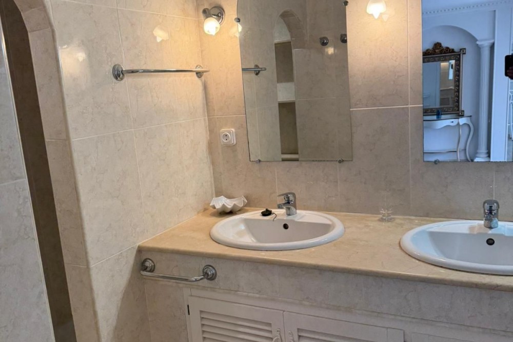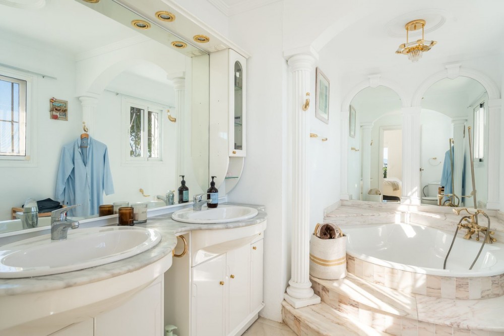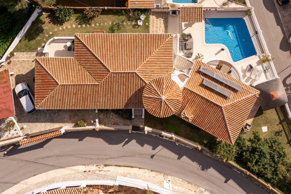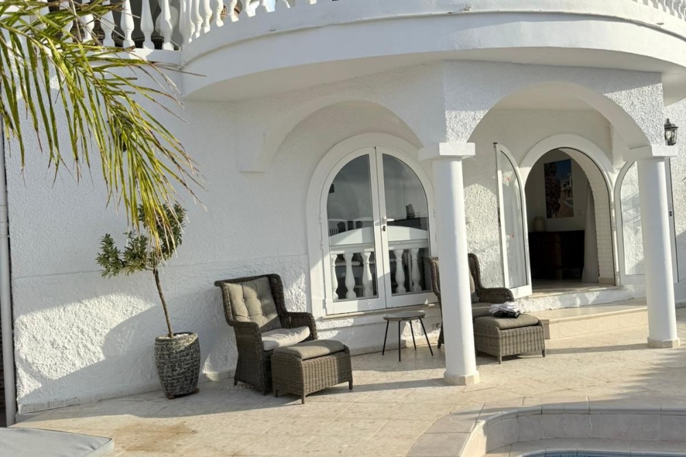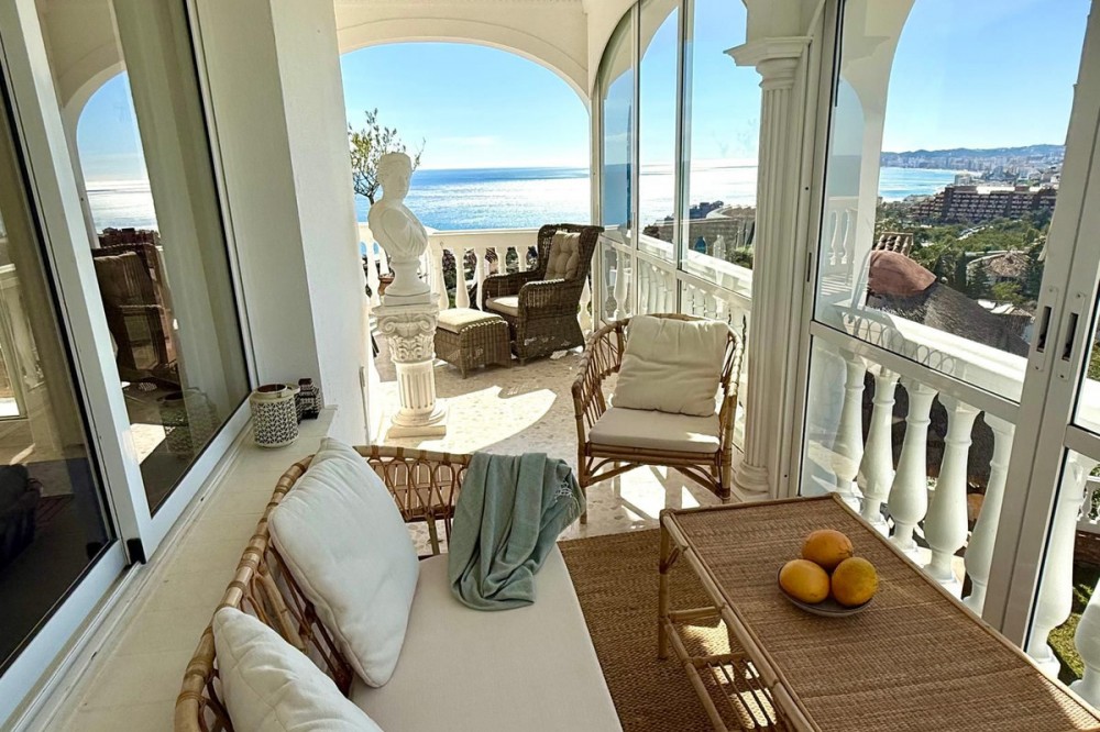 - **Stunning Villa with Panoramic Sea Views in La Capellania, Benalmádena** Discover this exceptional villa located in the prestigious area of La Capellania, offering breathtaking panoramic views over the entire Fuengirola Bay. The main house features 3 spacious bedrooms, 2 bathrooms, and a guest toilet (1 of which is a large master bedroom ensuit), along with a large, bright, and open-plan living area that flows directly onto a generous terrace — the perfect spot to relax and soak in the stunning Mediterranean scenery. In addition, the property includes a **separate guest apartment** with its own bedroom, living room, open kitchen, bathroom, and guest toilet, with direct access to the villa’s beautiful pool area — and even here, the sea views continue to impress. The villa boasts solar panels for hot water, a saltwater swimming pool, and an outdoor shower with both hot and cold water. The lush garden is a true oasis, filled with fruit trees such as avocado, grapefruit, orange, and lemon, and features a charming Palapa, ideal for entertaining guests or enjoying relaxed barbecue evenings. While the villa is extremely well maintained, it offers an exciting opportunity for modernization — allowing new owners to create and personalize their dream home in one of the Costa del Sol’s most sought-after locations. A rare opportunity combining location, views, space, and potential — this is a home you truly don’t want to miss.