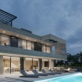 - New Development: Prices from €5,700,000 to €6,100,000. [Bedrooms: 5] [Bathrooms: 5] [Built size: 1044m2 - 1132m2]. Three contemporary villas showcase cutting-edge architecture, expansive layouts, and the highest quality finishes. Designed with the latest technology specifications and delivered fully furnished, each residence features floor-to-ceiling windows, panoramic terraces, a private pool, landscaped gardens, and a rooftop chill-out area from where to enjoy the sea and mountain views. Spanning multiple levels, they offer open-plan designer kitchens, outdoor jacuzzi and underground garage. An oustanding masterpiece through close collaboration between developer Cosehisa, architectural firm ER Arquitectos and Spain Sotheby's International Realty.