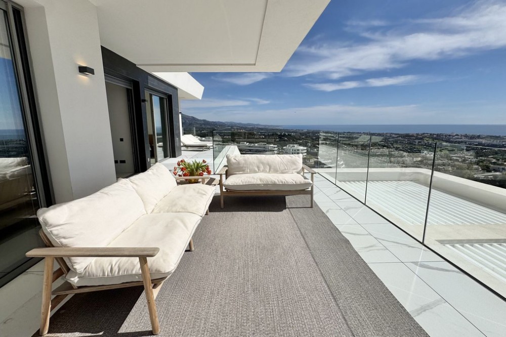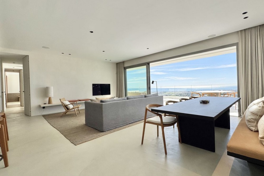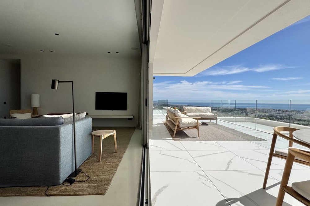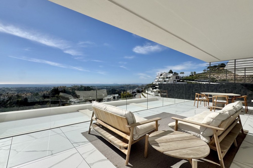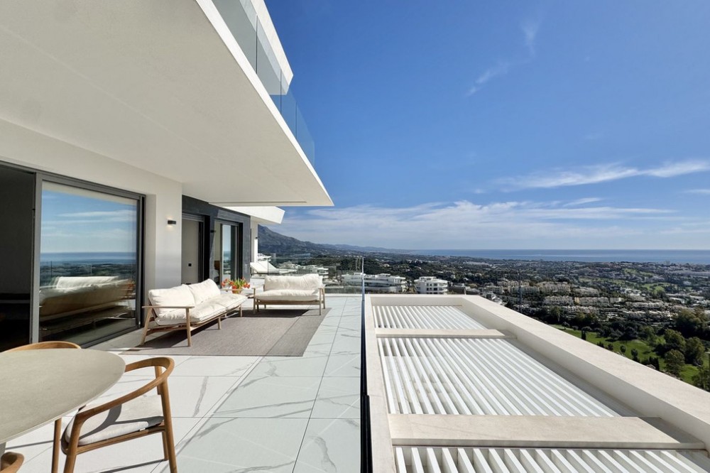 - Luxury South-Facing Corner Apartment with Panoramic Sea & Golf Views in Byu Hills, La Quinta, Benahavís. Exceptional contemporary corner apartment located in the exclusive Byu Hills development in La Quinta, Benahavís. This south-facing middle-floor property enjoys panoramic views of the golf course, mountains and the Mediterranean Sea, offering complete privacy and abundant natural light throughout the day. Built area: 150 m² Terrace: 61 m² The apartment comprises 3 bedrooms and 2 bathrooms, featuring a spacious open-plan living and dining area with direct access to the large terrace, ideal for year-round outdoor living. High-end specifications include: - Bulthaup kitchen with Miele appliances and Bora system - Villeroy & Boch bathrooms - Full underfloor heating throughout the apartment - Individual air conditioning hot/cold control per room - Advanced home automation system - Electric blinds - Integrated alarm system - Pre-installation for electric vehicle charging The property includes: - 2 underground parking spaces (19 m² each) - Private storage room (10.5 m²) Byu Hills is a modern residential complex offering landscaped gardens, communal swimming pool and a fully equipped gym. The development is located within one of the most sought-after areas on the Costa del Sol, just a short drive from Marbella, Puerto Banús and all amenities. Furniture optional. Price: €1.895.000. Category: Luxury, Golf, Contemporary Orientation: South Views: Sea, Golf, Mountain, Panoramic Condition: Excellent