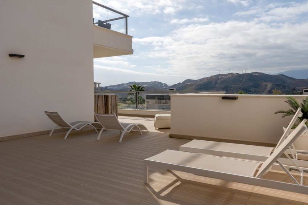 - Located in the prestigious Avalon complex in Los Arqueros, Benahavís, Málaga, This modern luxury apartment offers a unique residential experience on the Costa del Sol. With a magnificent orientation, the property stands out for its impressive views of the mountains, golf course, and partial sea views. It features three spacious bedrooms and two elegant bathrooms, combining contemporary design with maximum comfort. Its privileged setting, just 5 minutes walk to Los Arqueros Country Club Golf, makes it the perfect retreat for those seeking relaxation and adventure. The home, with a built area of 101m²,and a terrace of 103m2 boasts an open and bright layout. The fully equipped kitchen is harmoniously integrated with the living room, creating an elegant common space ideal for leisure and socializing. High-end finishes include marble floors, built-in wardrobes, and an air conditioning system. The property is offered for sale in excellent condition. Additional features include high-speed internet access (Wi-Fi), Smart TV, elevator, and a private terrace overlooking the lush gardens and the heated communal pool, perfect for year-round enjoyment. Avalon is a gated and secure community with meticulously maintained tropical gardens, heated pool, and a relaxing atmosphere. Residents benefit from private garage parking, access to a wide range of services, and proximity to restaurants and entertainment areas. Its strategic location provides easy access to renowned golf courses and international schools, making this property an ideal choice for families and sports enthusiasts. Excellent transport connections allow quick access to Marbella, Puerto Banús, and other nearby areas such as Benahavis village. This exclusive property represents an unbeatable opportunity for those seeking a primary residence in a distinguished setting, as well as for those interested in a high-level investment on the Costa del Sol. For more information or to arrange a private viewing, please do not hesitate to contact us and discover why this apartment in Benahavís is synonymous with quality of life.