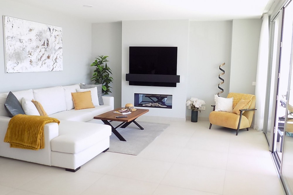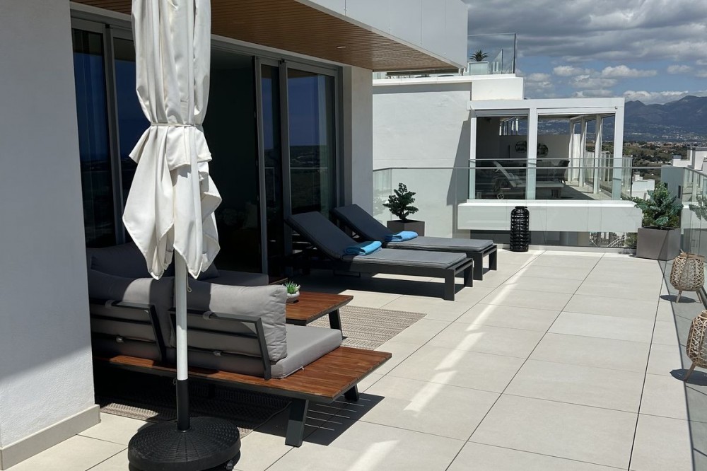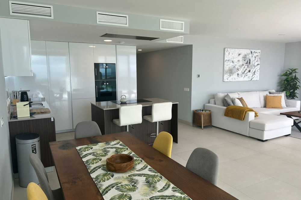 - This stunning luxury apartment near La Cala de Mijas is one of the best located within a secure, gated urbanisation (One Residences) providing uninterrupted panoramic golf and sea views. There are three spacious double bedrooms, all en-suite, plus a guest bathroom. As soon as you enter through the main door, there are sea and golf views from the hallway to the lounge and open plan kitchen area, through to the large open (partially covered) terrace. The apartment is being sold fully furnished and is of very high quality. There is under floor heating throughout, air-conditioning with individual room control, remote control cooker, Bang & Olufson TV, etc. No expense has been spared to make this a totally unique experience in Costa Del Sol living. In addition, there is a myriad of high quality and very well maintained facilities including a lagoon pool, an infinity pool, one indoor heated pool with Jacuzzi and sauna, a well stocked bodega, a meeting room with WiFi connection, a luxury cinema, a chill out bar, an indoor golf simulator, an outdoor children's play area, plus a state of the art gymnasium. There are two private underground parking spaces and one store room included in the price. In addition, there is a lovely restaurant in the golf clubhouse next door to the urbanisation that is open all day. So if you are looking for a luxury apartment with fantastic golf and sea views, then please call us to arrange a viewing. Reasonable offers considered.