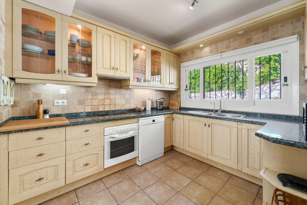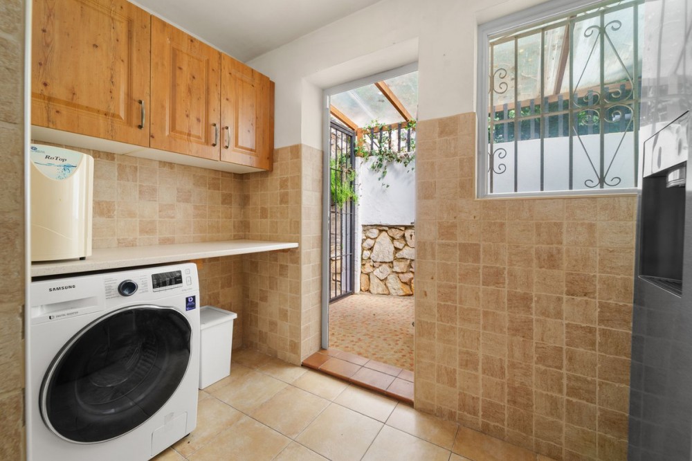 - Fantastic single-Story 5-Bedroom Villa in Calahonda Welcome to this charming and bright single-story villa, where comfort, privacy, and quality of life are the top priorities. Here, you can enjoy stair-free living, complete privacy, and open views that create a harmonious and secluded atmosphere. The property offers five spacious bedrooms, three of which feature large sliding doors that open onto the lush garden, seamlessly blending indoor and outdoor living. All bathrooms have been tastefully renovated and are equipped with showers, providing a modern and exclusive feel. The generous living room is perfect for both enjoyable dinners and relaxing moments with family and friends. Two separate bedrooms with a shared bathroom create an ideal guest or family area, offering a high level of comfort. The kitchen is functional and includes a practical adjoining utility room. The well-maintained garden is a private oasis with an inviting pool area, outdoor shower, and several spaces for relaxing in the sun. The property also includes a garage and offers a comfortable and exclusive lifestyle in one of the most sought-after locations in the area.
