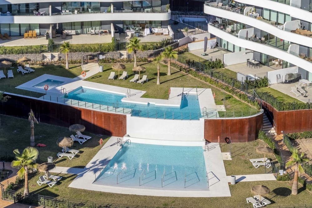 - Step into a new standard of modern living in Higuerón, where design, technology and Mediterranean comfort come together in a beautifully finished apartment that feels both refined and effortlessly welcoming. Recently completed and ready to move into, this two-bedroom, two-bathroom home stands out for its exceptional attention to detail and seamless indoor–outdoor living — ideal for those seeking quality, tranquillity and a sophisticated lifestyle on the Costa del Sol. Inside, every element has been carefully considered to enhance comfort and convenience. The entire apartment features underfloor heating, creating a warm and pleasant atmosphere all year round. The living room is equipped with electric blinds, and a fully integrated domotic system allows you to control lighting, climate and home automation with ease. Smart sunshades, a premium water-filtration system and a dedicated electric-car charging point in the underground garage add both sustainability and modern practicality to daily life. The interior flows naturally onto a private terrace and garden of nearly 60 m², offering an intimate outdoor retreat perfect for relaxing, sunbathing or entertaining guests. With its southwest orientation, the space enjoys beautiful afternoon sun and natural light, enhancing the sense of calm and privacy. The terrace also features an outdoor shower and a luxurious private jacuzzi, prepared for both chlorine and saltwater — transforming the home into a personal spa where you can unwind at any time of day. The property includes two underground garage spaces and a fully shelved private storage room, providing practical and well-organized solutions for everyday living. A newly created private access from the apartment leads directly to the communal pool, adding an additional layer of comfort and exclusivity. With clean architectural lines, modern finishes and high-quality materials, the home perfectly balances contemporary style with a strong connection to nature. Higuerón is known for its peaceful surroundings, landscaped green areas and privileged location between Benalmádena and Fuengirola. Residents benefit from close proximity to beaches, restaurants, sports facilities, the Higuerón Spa and the Curio by Hilton hotel, while enjoying excellent connectivity via the motorway and nearby train station, offering quick access to Málaga Airport, Málaga city and Marbella. Community fees are approximately €250 per month, IBI around €500 per year, and refuse tax about €50 per quarter, providing a transparent and predictable cost structure. For buyers seeking advanced technology, outdoor luxury, privacy and access to one of the most desirable residential areas on the Costa del Sol, this apartment represents an exceptional opportunity.