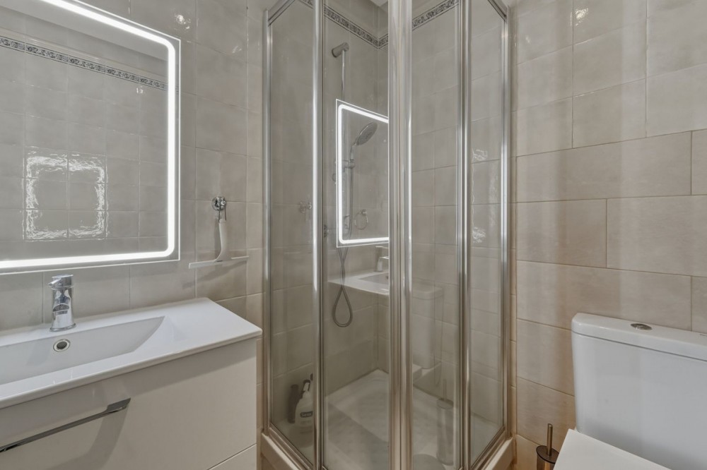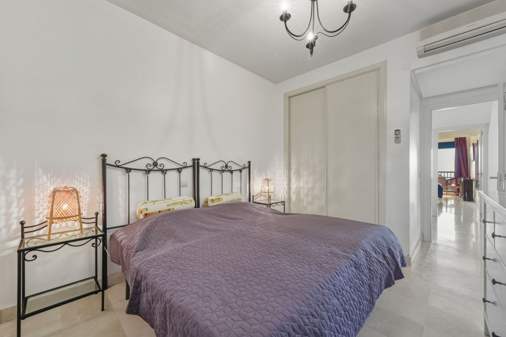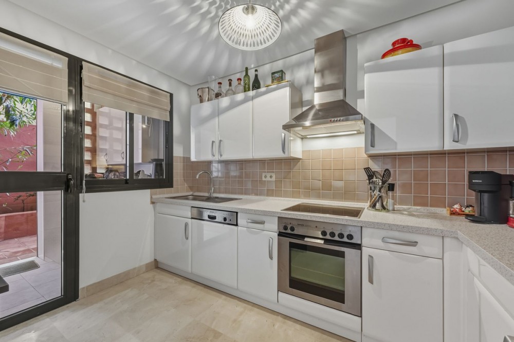 - Located in the well established and sought-after area of Calahonda (Bonita Hills), this bright and well-distributed apartment offers comfort, privacy, and generous outdoor space. The property features two bedrooms and two bathrooms, making it ideal as a permanent residence, holiday home, or long-term investment. It boasts two spacious terraces with a total of 58 m², offering both sun and shade throughout the day thanks to its south-facing orientation. The closed and spacious kitchen comes with an attached laundry room, which also provides direct access to one of the terraces. This terrace enjoys shade for most of the day - perfect for outdoor dining during the warm summer months. The apartment is located on the third floor (exterior), but access requires taking 8 steps down to reach the property. The property includes a private parking space, adding extra convenience. Please note that the property does not have a tourist license, and the community regulations do not allow rentals shorter than 30 days.
