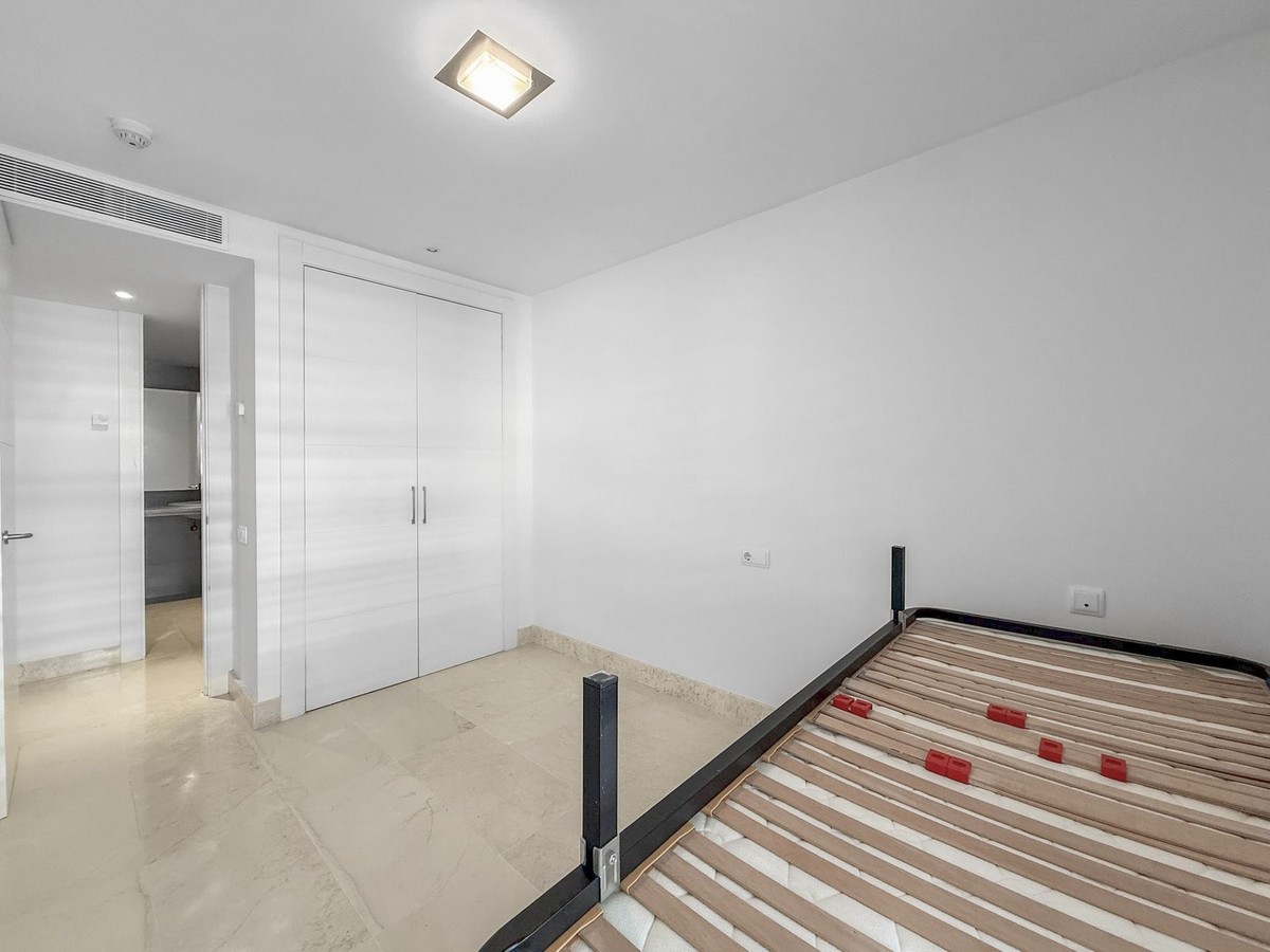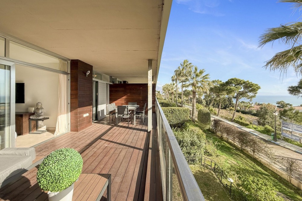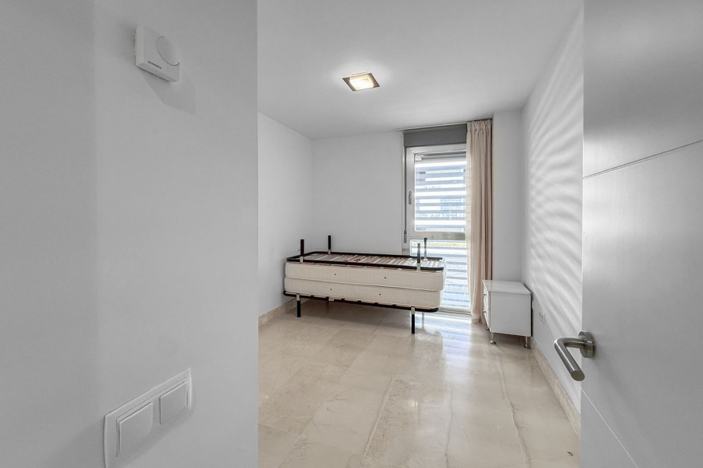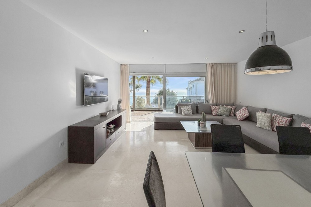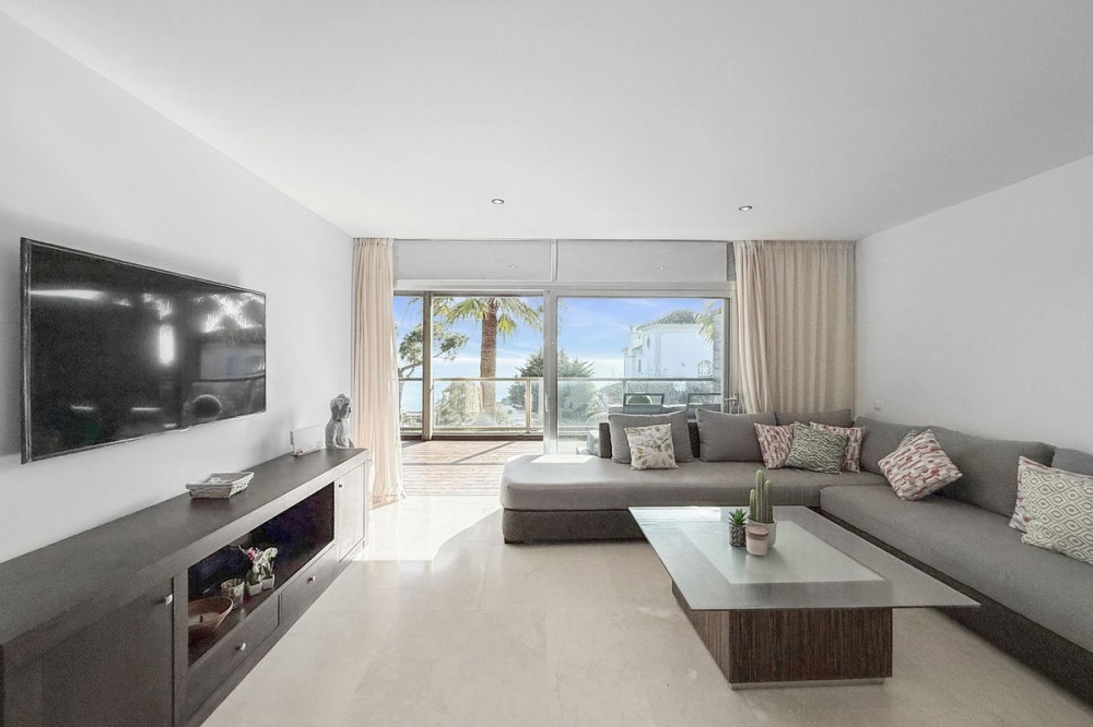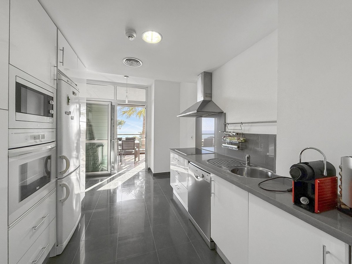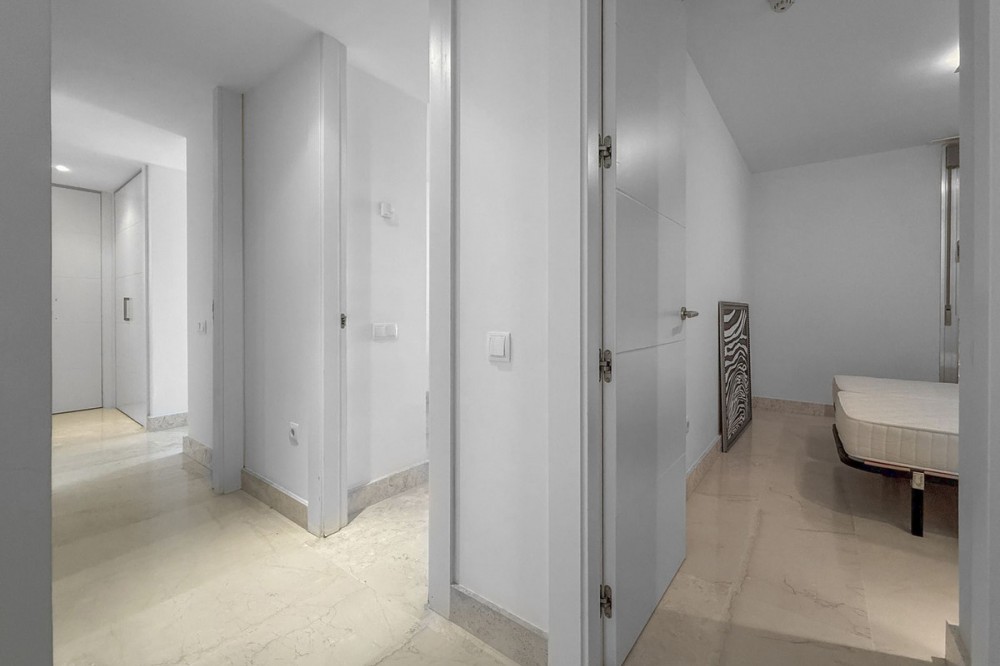 - Panoramic Sea View Apartment in La Paloma, Manilva 3 Bedrooms | Spacious Terrace | 2 Underground Parking Spaces + Storage Room Located in the exclusive gated complex Nueva Paloma, in the prestigious area of La Paloma, this elegant apartment perfectly combines space, privacy, and open views of the Mediterranean Sea. Just a five-minute drive from the beach and the lively Puerto de la Duquesa, the property offers a relaxed lifestyle surrounded by nature while remaining conveniently close to all amenities. *** Layout & Living Spaces The property welcomes you with an entrance hall featuring built-in wardrobes, leading into a spacious and bright living-dining area. This space opens onto a spectacular private covered terrace with premium teak wood finishes, where breathtaking panoramic sea views can be enjoyed. The fully independent kitchen is equipped with Bosch appliances and includes a separate utility/laundry room. The master bedroom stands out for its elegance and comfort, offering garden views, a walk-in dressing area at floor level, and an en-suite bathroom with double vanity sinks and sophisticated teak and marble finishes. The two guest bedrooms are generously sized doubles, with fitted wardrobes and large windows overlooking the landscaped green areas. The property also features two full bathrooms, ensuring maximum comfort and privacy. *** Specifications & Features High-quality finishes include: * Reinforced security door * Smooth walls * Floor-to-ceiling windows with double glazing * Centralised hot and cold air conditioning * Premium teak wood and marble finishes * **Roca** sanitary fittings * High-end appliances The apartment includes two adjacent underground parking spaces and a private storage room. *** Resort-Style Communal Areas The complex offers facilities designed to make the most of the area’s privileged climate: * Outdoor swimming pool with sunbathing area and loungers * Heated indoor swimming pool with changing rooms * Fully equipped gourmet/social area * 24-hour security with video surveillance * Concierge service * Extensive landscaped gardens with park and outdoor gym *** Strategic Location Approximately five minutes by car from Playa de Chullera, the exclusive Marina de Sotogrande, Puerto de la Duquesa, and La Duquesa Golf, as well as all essential services. Marbella, Puerto Banús, and Gibraltar International Airport are just 25 minutes away by car. The property is also well connected to Málaga-Costa del Sol Airport and María Zambrano Station, both less than one hour away. An exceptional opportunity to acquire a spacious, elegant sea-view apartment in one of the most sought-after areas of the Costa del Sol. For further information or to arrange a private viewing, please do not hesitate to contact us.