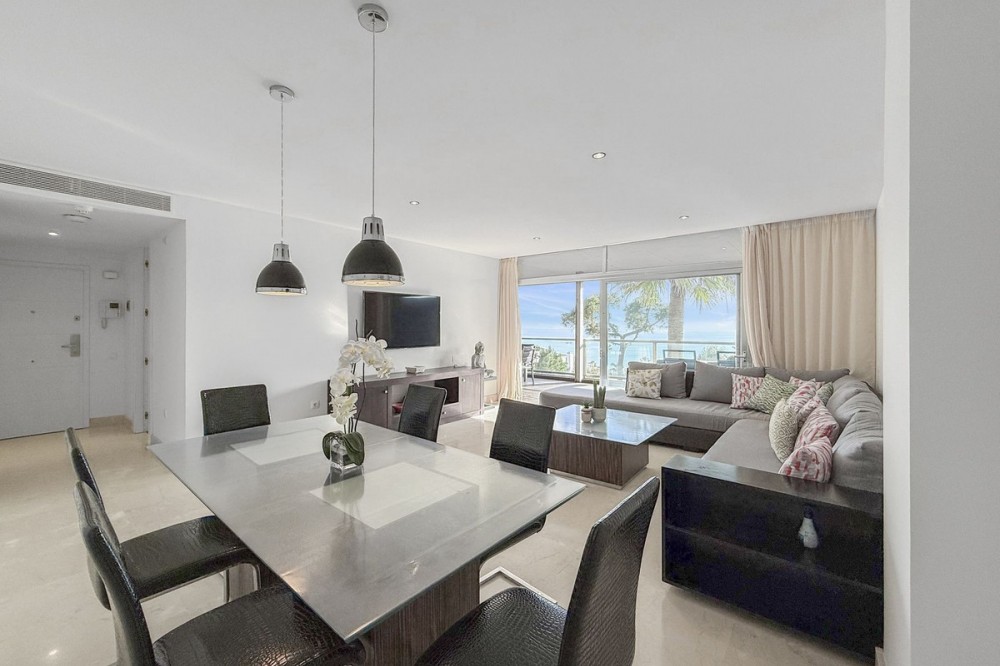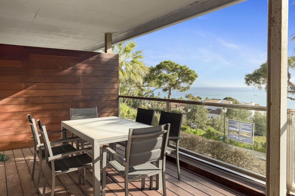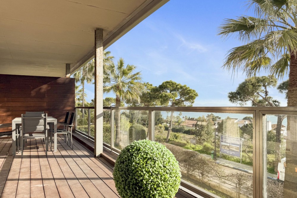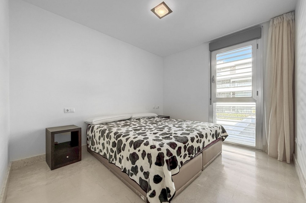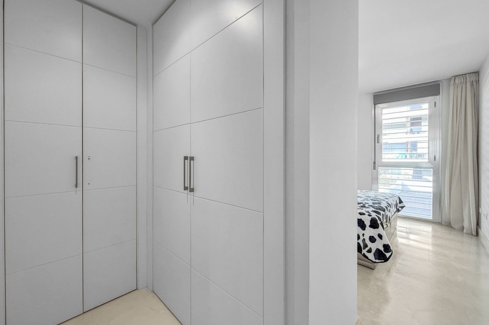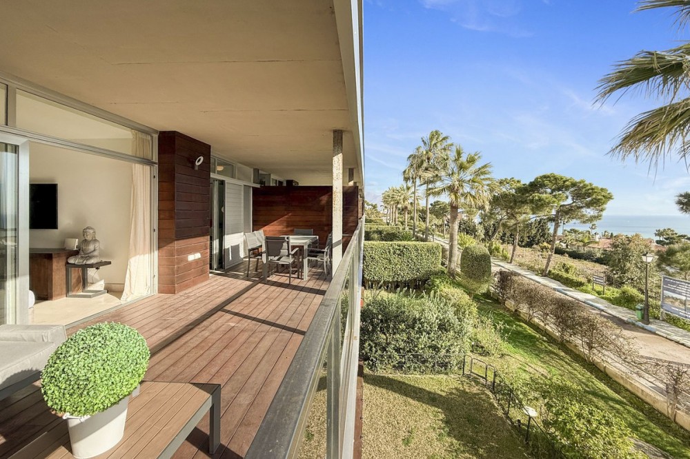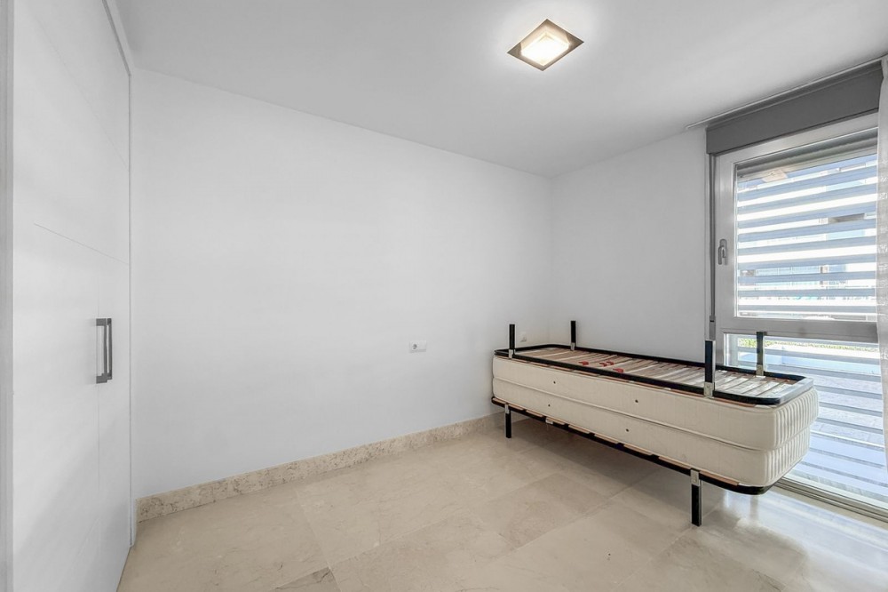 - Panoramic Sea View Apartment in La Paloma, Manilva 3 Bedrooms | Spacious Terrace | 2 Underground Parking Spaces + Storage Room Located in the exclusive gated complex Nueva Paloma, in the prestigious area of La Paloma, this elegant apartment perfectly combines space, privacy, and open views of the Mediterranean Sea. Just a five-minute drive from the beach and the lively Puerto de la Duquesa, the property offers a relaxed lifestyle surrounded by nature while remaining conveniently close to all amenities. *** Layout & Living Spaces The property welcomes you with an entrance hall featuring built-in wardrobes, leading into a spacious and bright living-dining area. This space opens onto a spectacular private covered terrace with premium teak wood finishes, where breathtaking panoramic sea views can be enjoyed. The fully independent kitchen is equipped with Bosch appliances and includes a separate utility/laundry room. The master bedroom stands out for its elegance and comfort, offering garden views, a walk-in dressing area at floor level, and an en-suite bathroom with double vanity sinks and sophisticated teak and marble finishes. The two guest bedrooms are generously sized doubles, with fitted wardrobes and large windows overlooking the landscaped green areas. The property also features two full bathrooms, ensuring maximum comfort and privacy. *** Specifications & Features High-quality finishes include: * Reinforced security door * Smooth walls * Floor-to-ceiling windows with double glazing * Centralised hot and cold air conditioning * Premium teak wood and marble finishes * **Roca** sanitary fittings * High-end appliances The apartment includes two adjacent underground parking spaces and a private storage room. *** Resort-Style Communal Areas The complex offers facilities designed to make the most of the area’s privileged climate: * Outdoor swimming pool with sunbathing area and loungers * Heated indoor swimming pool with changing rooms * Fully equipped gourmet/social area * 24-hour security with video surveillance * Concierge service * Extensive landscaped gardens with park and outdoor gym *** Strategic Location Approximately five minutes by car from Playa de Chullera, the exclusive Marina de Sotogrande, Puerto de la Duquesa, and La Duquesa Golf, as well as all essential services. Marbella, Puerto Banús, and Gibraltar International Airport are just 25 minutes away by car. The property is also well connected to Málaga-Costa del Sol Airport and María Zambrano Station, both less than one hour away. An exceptional opportunity to acquire a spacious, elegant sea-view apartment in one of the most sought-after areas of the Costa del Sol. For further information or to arrange a private viewing, please do not hesitate to contact us.