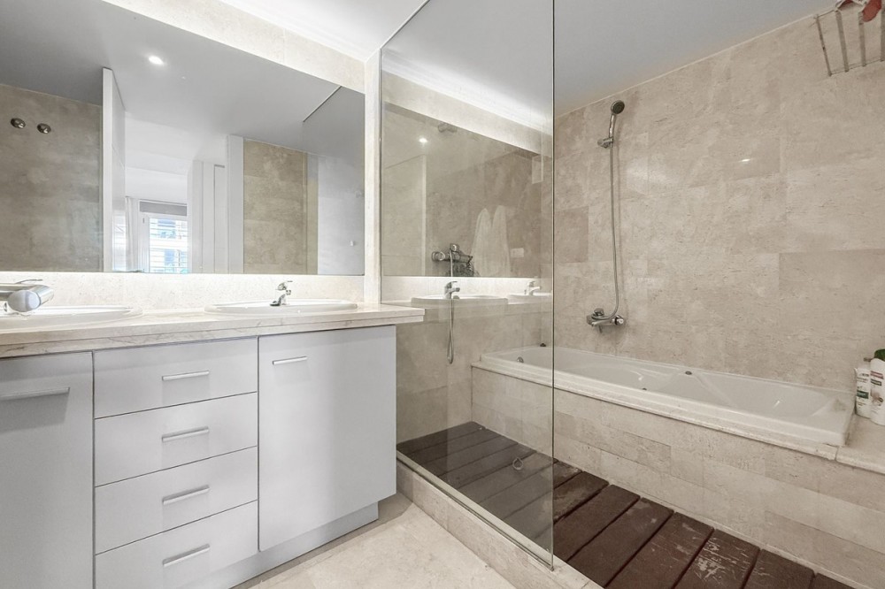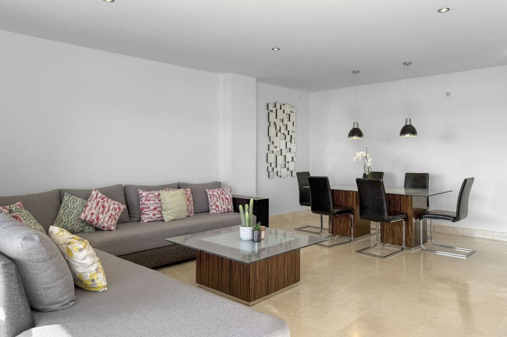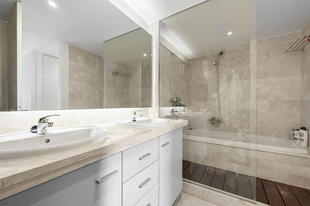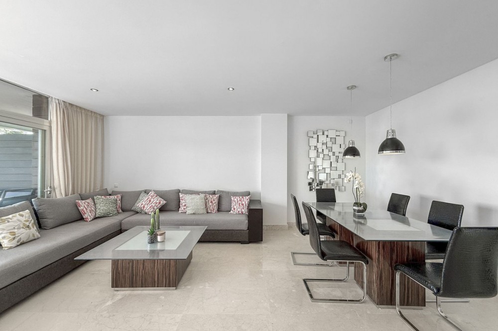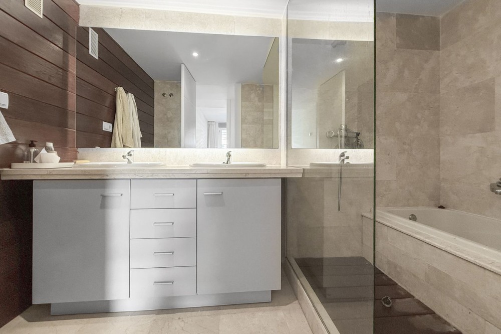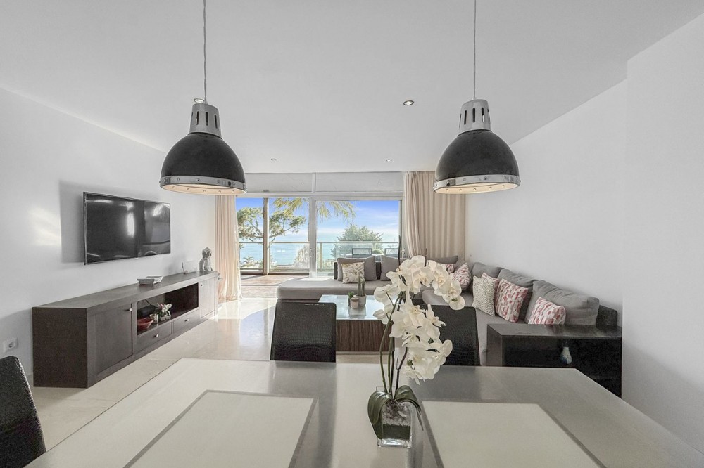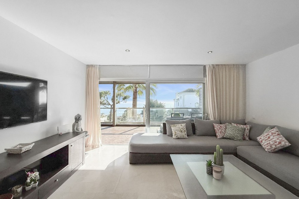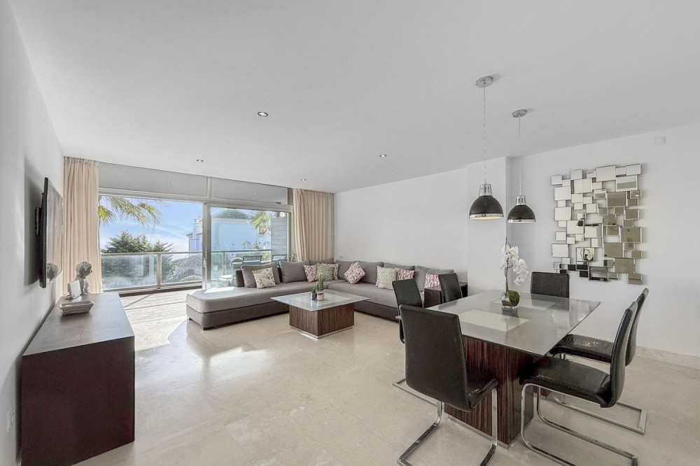 - Panoramic Sea View Apartment in La Paloma, Manilva 3 Bedrooms | Spacious Terrace | 2 Underground Parking Spaces + Storage Room Located in the exclusive gated complex Nueva Paloma, in the prestigious area of La Paloma, this elegant apartment perfectly combines space, privacy, and open views of the Mediterranean Sea. Just a five-minute drive from the beach and the lively Puerto de la Duquesa, the property offers a relaxed lifestyle surrounded by nature while remaining conveniently close to all amenities. *** Layout & Living Spaces The property welcomes you with an entrance hall featuring built-in wardrobes, leading into a spacious and bright living-dining area. This space opens onto a spectacular private covered terrace with premium teak wood finishes, where breathtaking panoramic sea views can be enjoyed. The fully independent kitchen is equipped with Bosch appliances and includes a separate utility/laundry room. The master bedroom stands out for its elegance and comfort, offering garden views, a walk-in dressing area at floor level, and an en-suite bathroom with double vanity sinks and sophisticated teak and marble finishes. The two guest bedrooms are generously sized doubles, with fitted wardrobes and large windows overlooking the landscaped green areas. The property also features two full bathrooms, ensuring maximum comfort and privacy. *** Specifications & Features High-quality finishes include: * Reinforced security door * Smooth walls * Floor-to-ceiling windows with double glazing * Centralised hot and cold air conditioning * Premium teak wood and marble finishes * **Roca** sanitary fittings * High-end appliances The apartment includes two adjacent underground parking spaces and a private storage room. *** Resort-Style Communal Areas The complex offers facilities designed to make the most of the area’s privileged climate: * Outdoor swimming pool with sunbathing area and loungers * Heated indoor swimming pool with changing rooms * Fully equipped gourmet/social area * 24-hour security with video surveillance * Concierge service * Extensive landscaped gardens with park and outdoor gym *** Strategic Location Approximately five minutes by car from Playa de Chullera, the exclusive Marina de Sotogrande, Puerto de la Duquesa, and La Duquesa Golf, as well as all essential services. Marbella, Puerto Banús, and Gibraltar International Airport are just 25 minutes away by car. The property is also well connected to Málaga-Costa del Sol Airport and María Zambrano Station, both less than one hour away. An exceptional opportunity to acquire a spacious, elegant sea-view apartment in one of the most sought-after areas of the Costa del Sol. For further information or to arrange a private viewing, please do not hesitate to contact us.