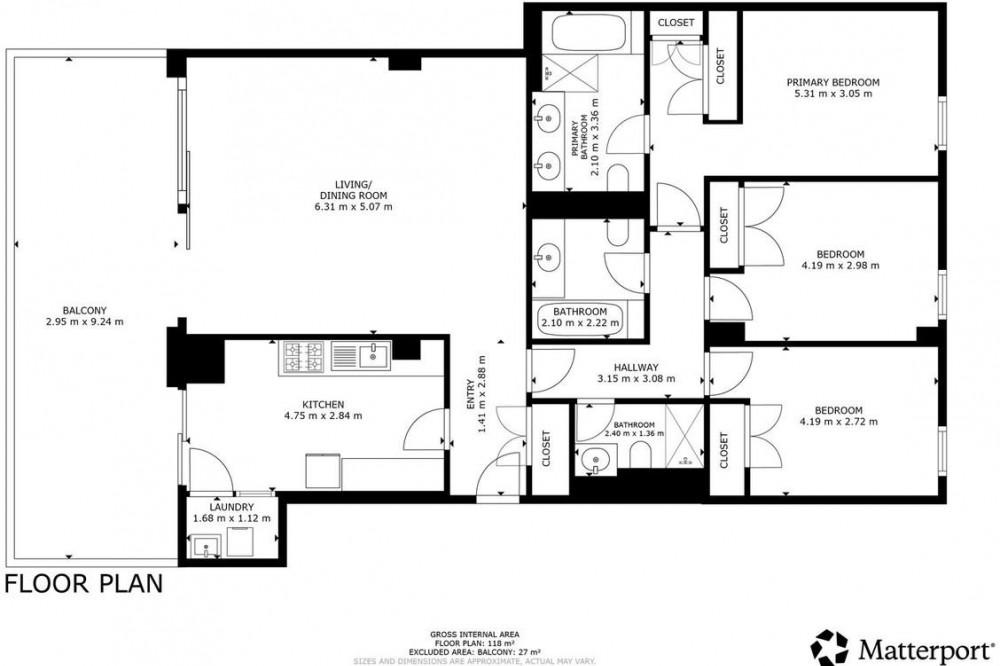Climate control: air conditioning, hot a/c, cold a/c, central heating, u/f/h bathrooms