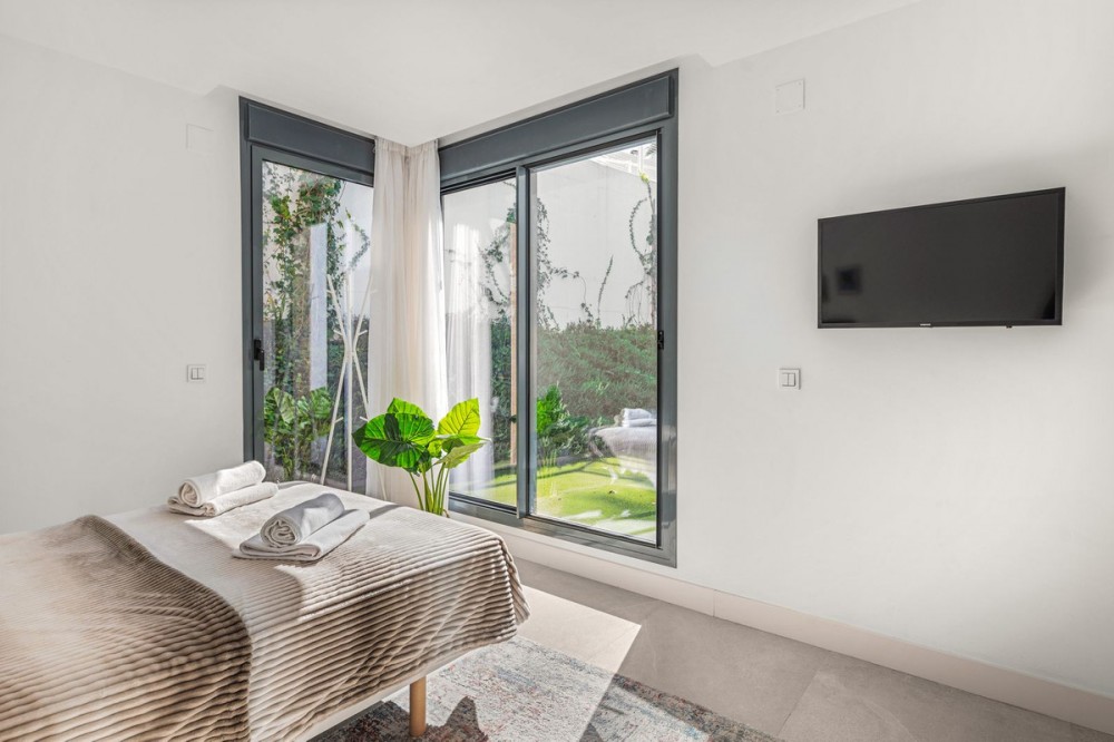 - PRICED TO SELL! This recently built ground-floor corner apartment located in a modern and cozy retreat situated in the captivating Artola Alta neighbourhood of Marbella, close to Cabopino port. Offering a blend of comfort, style and convenience. Set within a gated community with 12-hour on-site security, residents benefit from outstanding facilities, including a heated indoor pool, outdoor pool and a fully equipped modern gym. One of the biggest highlights is the location: just a 15-minute walk to the famous Artola dunes, Cabopino beach and the charming marina, and only a short 15-minute drive to Marbella centre. Property Features: ground floor with lift access, spacious living area with access to the terrace and private garden, fully equipped kitchen with NEFF appliances, Air conditioning (hot/cold) via Aerothermia, underfloor heating in the bathrooms, smart home system with app control for lighting, blinds and temperature. The property comes with two parking spaces (one underground, one communal) and a large storage room. This is a move-in-ready home in a sought-after setting. A perfect for full-time living or as a high-quality holiday residence. Artola Alta is truly special area where sea, golf, nature and privacy all come together. It offers an authentic and peaceful atmosphere, without the overdevelopment you find in other coastal zones. Ideal for both year-round living and memorable holidays. The area also offers a great selection of nearby amenities, including restaurants, schools, the beach, and golf courses, making this property an ideal option for both permanent living and as a second home.