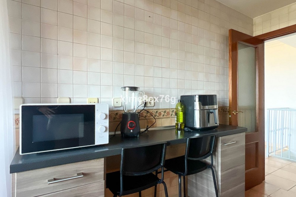 - Fantastic duplex with panoramic sea views in the upper part of Calahonda. Located in a beautiful, quiet and secure Mozarabic-Andalusian style residential complex, this duplex apartment offers spectacular sea views thanks to its south-southeast orientation. It is distributed as follows: on the main floor, there is an entrance hall, guest toilet, fully equipped kitchen with separate laundry room, and a bright living-dining room with large windows that open onto a 10 m² terrace, ideal for enjoying the sun and organising barbecues. On the lower floor is the sleeping area, with two very spacious bedrooms with fitted wardrobes and two en-suite bathrooms. The master bedroom includes a bathroom with a Jacuzzi. The property has a private communal parking space. The development is completely gated, with security cameras and night-time surveillance. It boasts well-maintained gardens, footpaths, three communal swimming pools and a children's play area. Ideal both as a primary residence and as a holiday home, thanks to its excellent location: just 2 minutes from the bus stop, 3 minutes from restaurants, pizzerias, pubs, playgrounds and a pet park. In just 7 minutes you can reach supermarkets, shops, banks, pharmacies, gyms and tennis and paddle tennis courts. The beaches and coves of Calahonda are less than 10 minutes away, as is the coastal path. Easy access to the AP-7 motorway (2 minutes away) and excellent connections to: La Cala de Mijas (12 minutes) Marbella (22 minutes) Fuengirola (17 minutes) Málaga Airport (25 minutes)