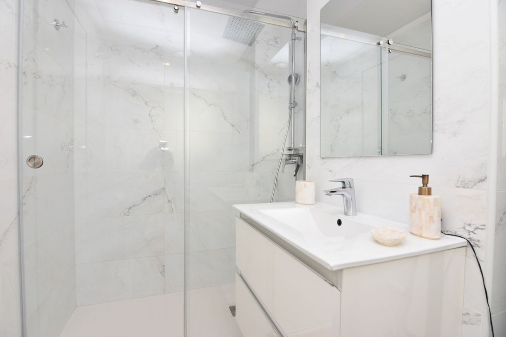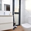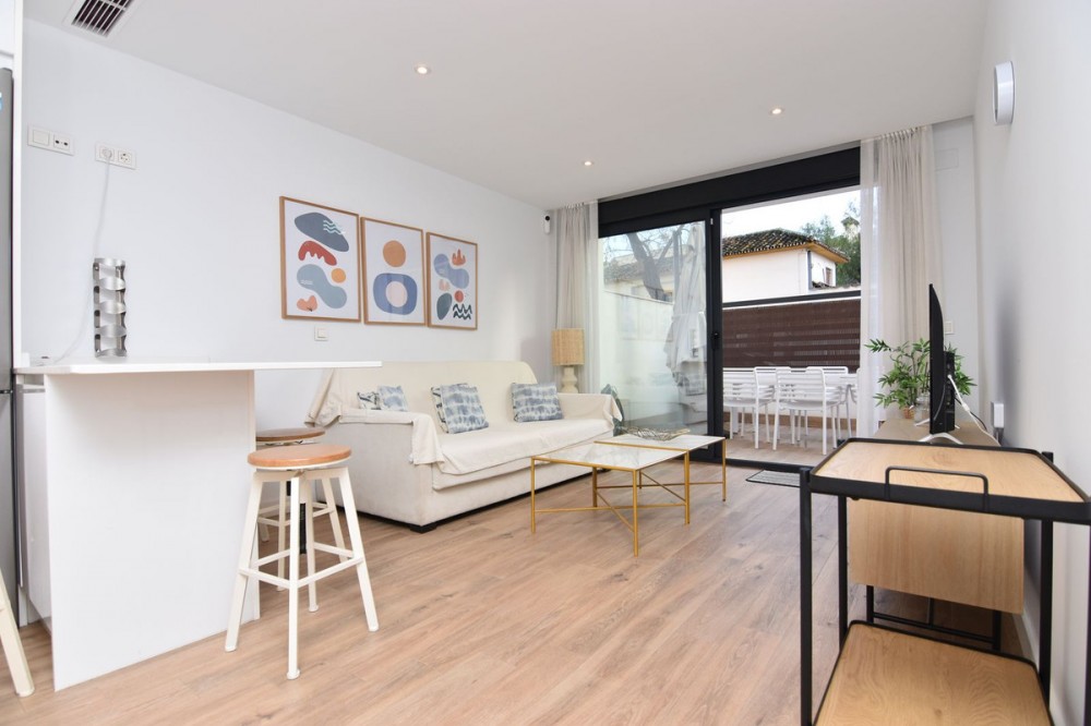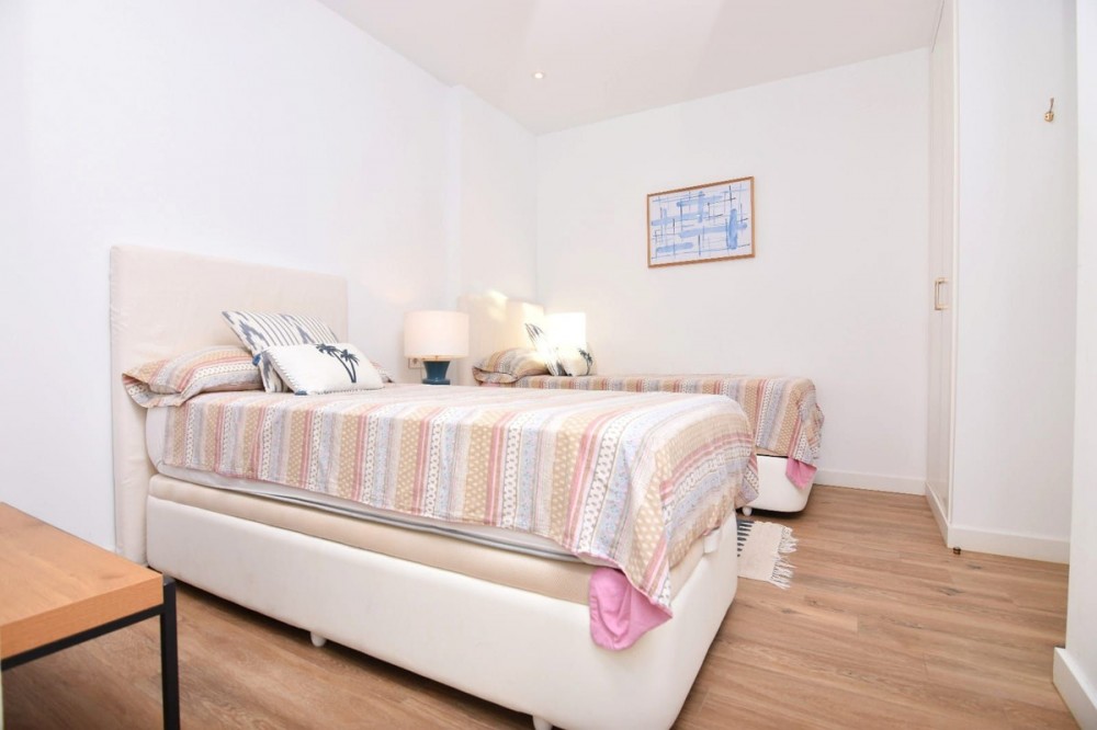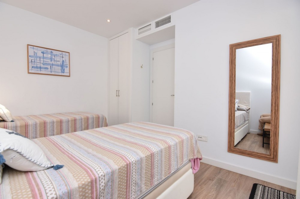 - Spacious and bright property for sale in the centre of Torremolinos, located in a quiet, central and highly sought-after area, with all amenities close at hand: beach, shops, public transport, restaurants and urban life. The property, built in 2021, has 90 m2 of interior space distributed over two bedrooms, a full bathroom + a toilet, with a modern and functional design. Located on the ground floor and on the corner, it is part of a contemporary building with few neighbours, well maintained and cared for with solar panels and a communal solarium terrace. The materials used are high-end, with wood-effect porcelain flooring inside and out, Porcelanosa tiles, Cortizo carpentry, double glazing, central air conditioning with aerothermal energy, and fitted wardrobes. No detail has been overlooked. The property features a large 30m2 private terrace facing south-west, with a small heated swimming pool and a jacuzzi for the exclusive use of the apartment, a rare feature in the centre of Torremolinos that adds significant value both for personal enjoyment and as an investment. Thanks to its ideal orientation, you can enjoy the sun practically all day long, making the terrace an ideal space for relaxation and outdoor living 365 days a year. The property is sold furnished and also includes a parking space and a storage room, a highly valued feature in such a central location. It is important to note that it has a valid tourist licence that is transferable to the new owner, as short-term rentals are permitted, which is a great advantage for investors. Due to its location, layout and characteristics, it is an ideal property as a primary residence, second home or property investment.