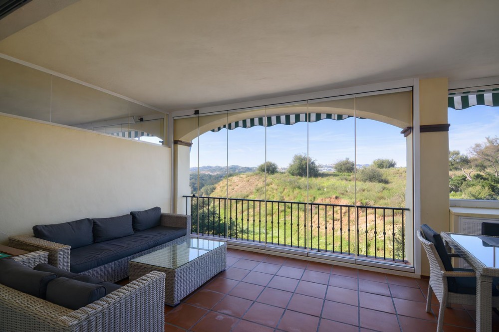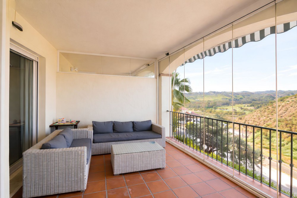- This magnificent property is located in the prestigious La Cala Hills urbanisation, in the exclusive area of Mijas Golf, one of the most sought after residential locations thanks to its natural surroundings, tranquillity and excellent connections to all amenities. The apartment offers two spacious bedrooms and two fully fitted bathrooms, with a comfortable and well designed layout that makes excellent use of the space. It is presented in perfect condition and is ready to move into, making it ideal both as a permanent residence and as an investment opportunity. One of its main highlights is the large terrace with open views over the golf course, a perfect space to relax, enjoy the wonderful Costa del Sol climate and spend quality time outdoors all year round. The property includes a private garage space and a storage room, providing additional convenience and storage capacity. In addition, there is communal outdoor parking available for residents and visitors. Set within a well maintained and highly desirable gated community, residents can enjoy two swimming pools and beautifully landscaped gardens, creating a peaceful and attractive living environment. This is an excellent opportunity to own a home in a consolidated residential area surrounded by nature while being just minutes away from all services and amenities.