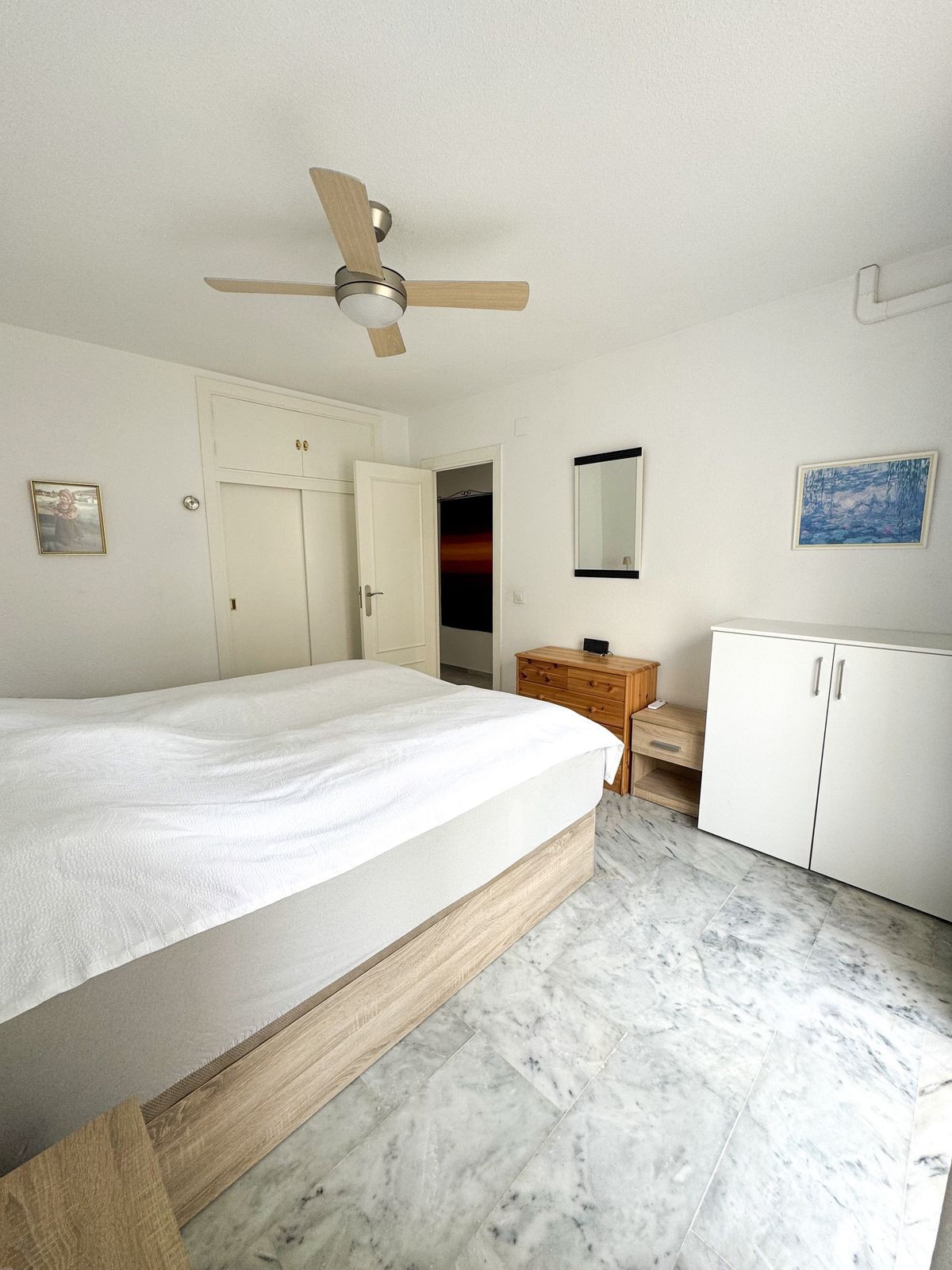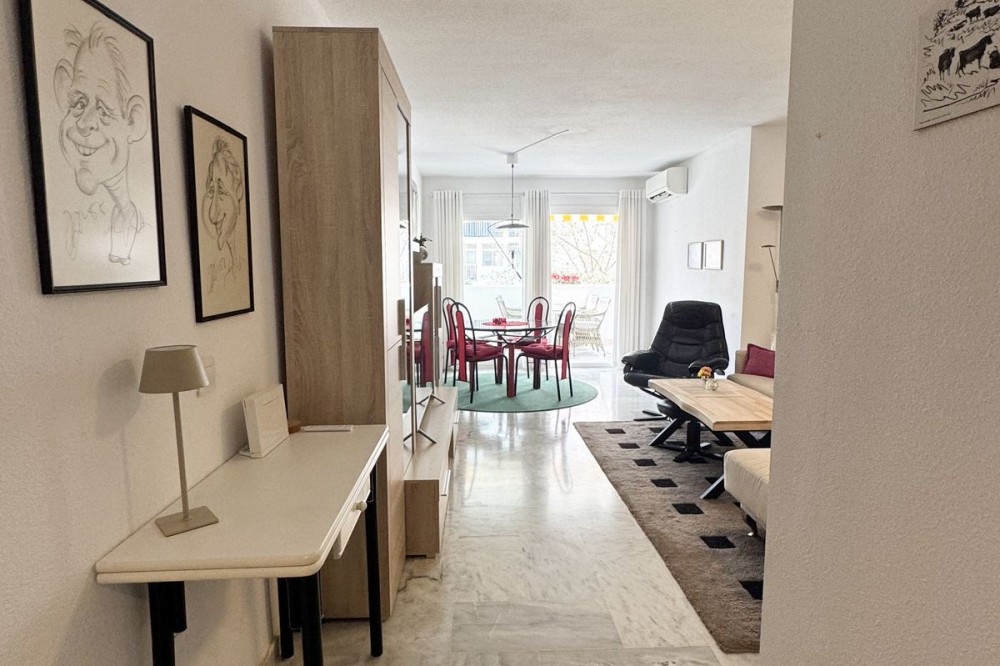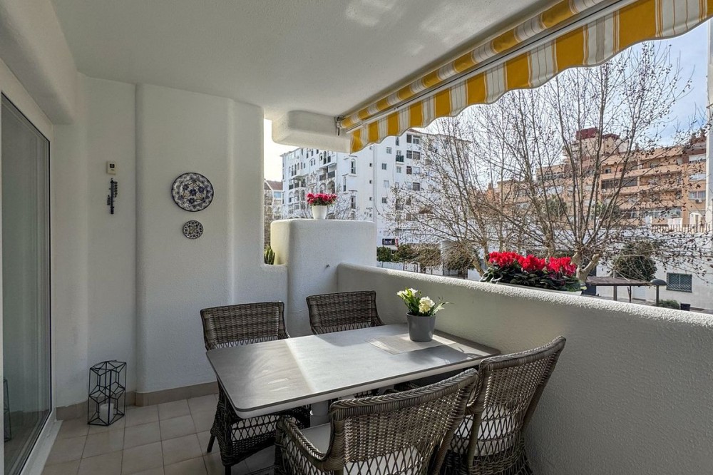 - Bright & Inviting Apartment in the Heart of Los Boliches – Walk to Everything! Welcome to this beautifully bright apartment located in the very center of Los Boliches, Fuengirola — one of the most sought-after areas on the Costa del Sol. Surrounded by all services and just a short stroll to the beach, this home offers the perfect combination of comfort, convenience, and Mediterranean lifestyle. From the moment you enter, you are welcomed by a spacious entrance hall with built-in wardrobes, leading into a light-filled living area. Large terrace doors flood the space with natural light, creating a warm and inviting atmosphere throughout the day. The living room opens directly onto a southwest-facing terrace overlooking the park — a peaceful setting to enjoy your morning coffee in the sun. On the opposite side of the entrance hall, you’ll find a fully equipped kitchen with a separate utility/washing room. The layout continues to a comfortable guest bedroom, a spacious bathroom, and a bright master bedroom with its own private southwest-facing terrace. Both terraces enjoy beautiful morning sun. One is covered for shaded relaxation during the warmer months, while the other is open — ideal for sunbathing and enjoying the Costa del Sol climate year-round. The apartment is sold fully furnished, allowing for an easy and stress-free move. Air conditioning in the living room ensures comfort in every season. The gated community features a swimming pool, and there is the possibility to rent or purchase a garage space if desired. Everything you need is within walking distance — supermarkets, restaurants, cafés, services, and the beach — meaning you can enjoy daily life without a car. The Los Boliches train station connects you to Málaga Airport in just 20 minutes. Just 5 minutes away, you’ll also find an outdoor gym, pétanque area, children’s park, and personal training facilities — perfect for an active lifestyle. ✨ Whether you are looking for a permanent residence, a holiday home, or a smart investment, this bright and ideally located apartment is a fantastic opportunity.