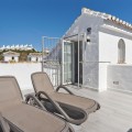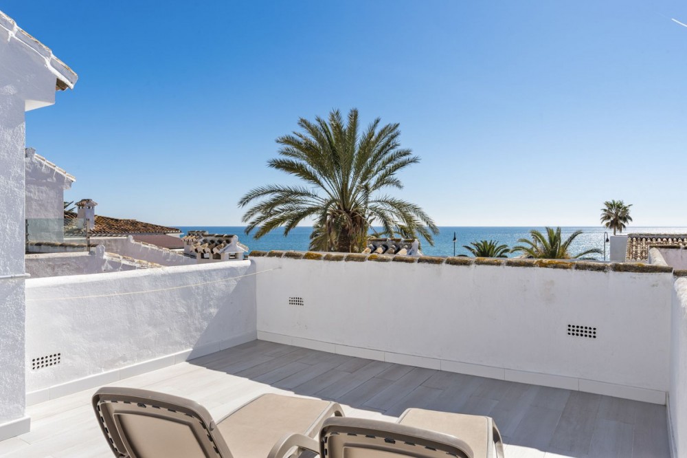 - Fantastic townhouse in a beautiful complex by the sea! This is a stunning townhouse in the Mijas Playa Club, one of the most beautiful complexes in La Cala de Mijas. Upon entering, you come into a very spacious living room with a dining area and a large open kitchen equipped with all necessary appliances. At the front of the house, there is a terrace with a small garden. This garden adjoins the swimming pool. At the back of the house, there is a patio. There is also a separate toilet on the ground floor. On the first floor, there is the master bedroom with its own bathroom. This bedroom has a small terrace with beautiful sea views. On this floor, there are two more bedrooms and a bathroom. On the second floor, there is a beautiful sunny rooftop terrace with a very nice view of the sea. The house has been almost fully renovated in 2024. All electrical appliances were also replaced at that time and the house is also equipped with solar panels. The house has a permit for short-term rental. The townhouse is located in a very beautiful and well-maintained community with two swimming pools and a tennis court. Everything is situated in the heart of La Cala de Mijas, 50 meters from the sea. An absolute gem where you can enjoy wonderful holidays or use it as an investment, with proven high rental returns guaranteed. Come and see it quickly and be amazed by this property!!