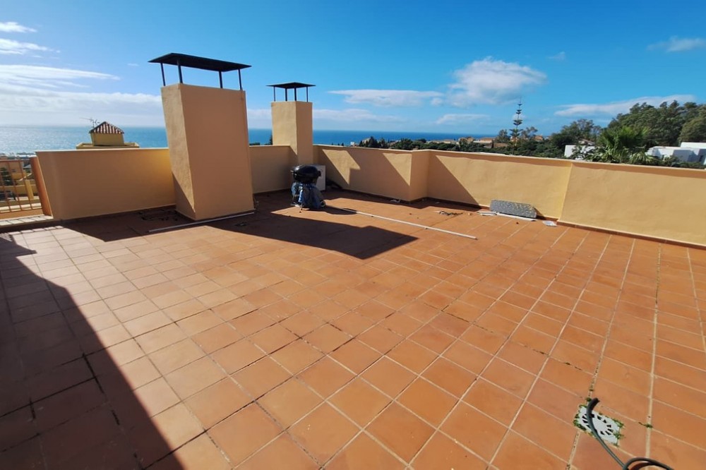 - Unique opportunity in Calahonda Royale! This bright penthouse offers 52 m² of living space and a generous 21 m² terrace, perfect for enjoying the sun and the Mediterranean climate. Located in a peaceful area surrounded by nature, just minutes from the beach, it combines privacy with easy access to Marbella, Fuengirola, and Málaga. The property stands out for its natural light, cozy atmosphere, and unobstructed views, ideal for relaxing or entertaining guests. The large terrace provides a unique outdoor space for dining, sunbathing, or simply enjoying the sea breeze. Perfect as a permanent residence or a holiday investment, offering the ideal combination of comfort, location, and lifestyle close to the sea.