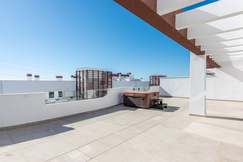 - Brand-new 4-bedroom penthouse in the modern **NINETEEN41** residential development. This complex, defined by clean and organic architectural lines, blends seamlessly with its natural surroundings. It offers beautifully designed communal areas where every detail has been carefully considered, including a swimming pool, SPA area, gym, changing rooms, as well as a coworking space and a communal kitchen. The development features a security system with video surveillance cameras and a license plate recognition system at the garage entrance. The property is spacious and bright, with open-plan living areas and large windows designed to maximize natural light and make the most of its wonderful views. The layout of each room has been thoughtfully designed to optimize space and create comfortable and practical living environments. NINETEEN41 is located on the New Golden Mile, between Puerto Banús and Estepona, in one of the most sought-after areas today. The project is surrounded by some of the most exclusive golf courses on the Costa del Sol and is just minutes away from El Saladillo Beach and Playa del Sol Villacana.