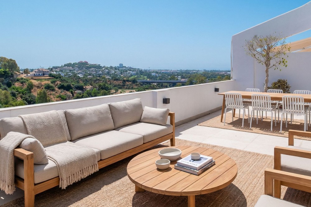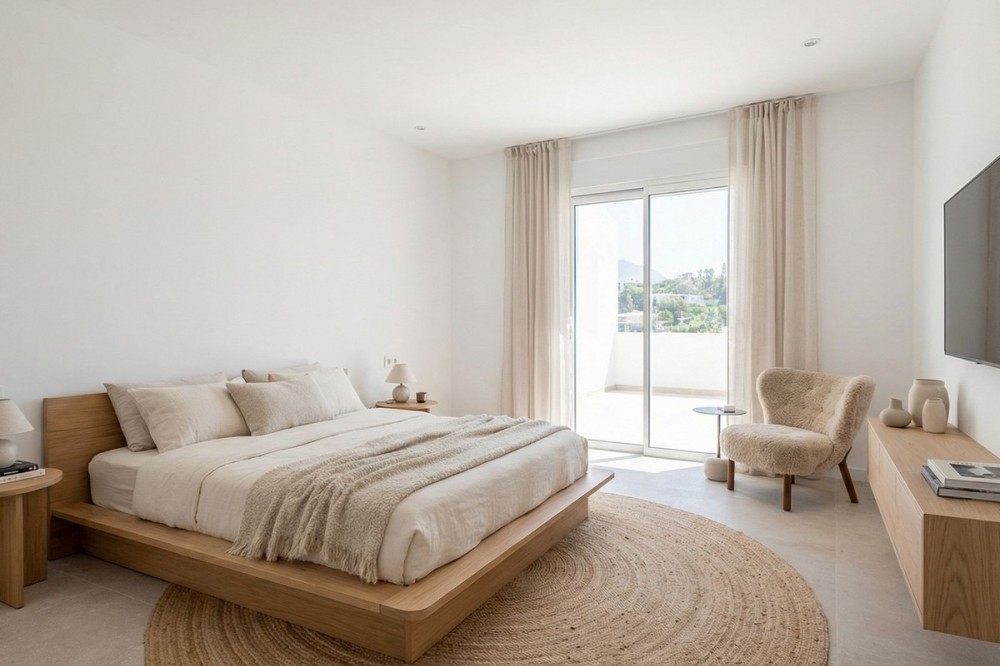- Located in the hills of Benahavis, this 143 sqm. residence is more than just an apartment; it is a curated experience of light and volume. As one of the largest units in this complex, the home has been meticulously reimagined to meet the exacting standards of Northern European design The heart of the home is an expansive living area that prioritizes flow and natural illumination. The renovation has stripped away the unnecessary, leaving behind a canvas of soft textures, organic tones, and high-end finishes. An abundance of floor-to-ceiling glass ensures the golden Andalusian sun is a permanent guest. Step through the glass onto the 40 square metre terrace - an outdoor living room that serves as a private observatory. From here, the world unfolds in three acts: the iconic silhouette of La Concha mountain, the manicured greens of the La Quinta golf course, and the deep blue horizon of the Mediterranean Sea. It is a space for slow mornings and late-night conversations. Situated in the prestigious enclave of La Quinta, Benahavis, you are perfectly positioned between the rugged beauty of the mountains and the vibrant energy of the coast. This is a home for the discerning eye - someone who appreciates the silence of great design.