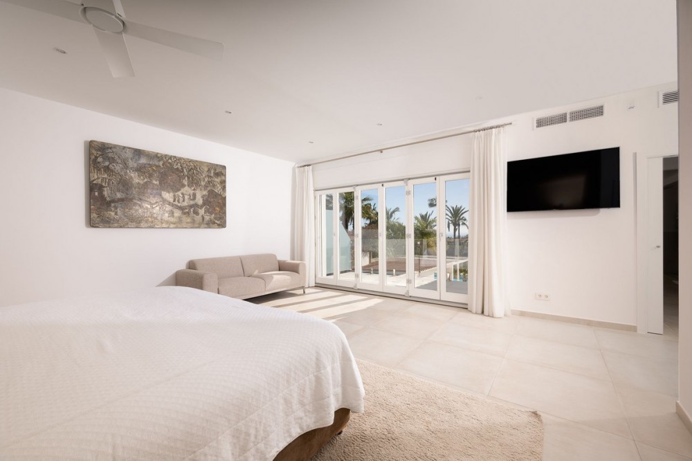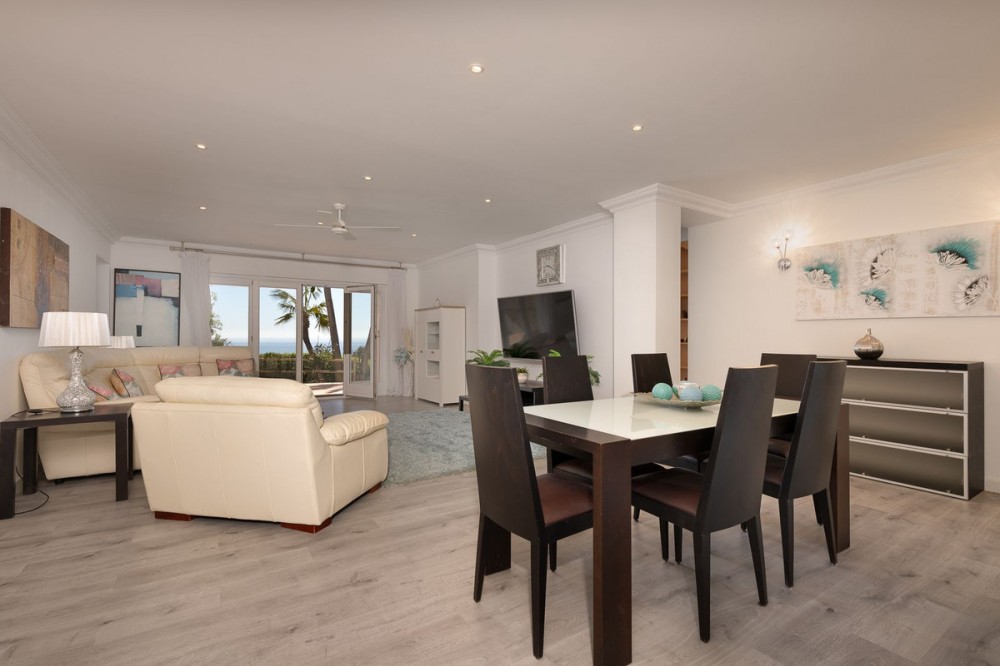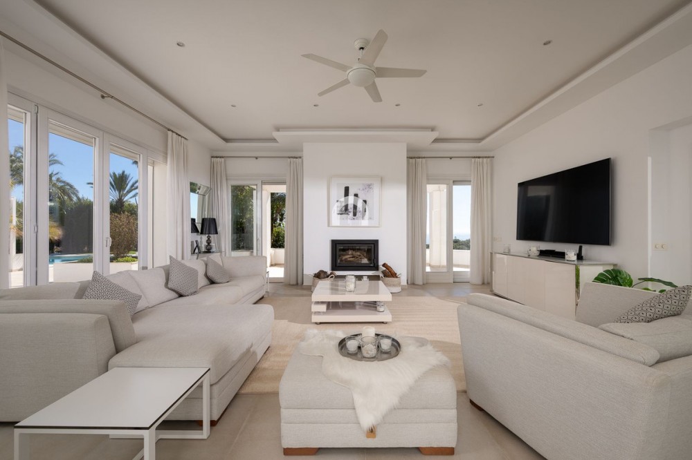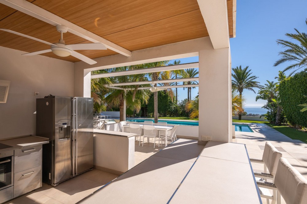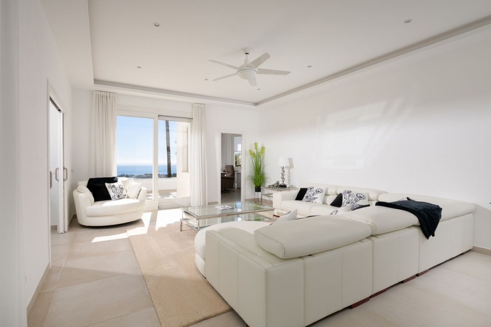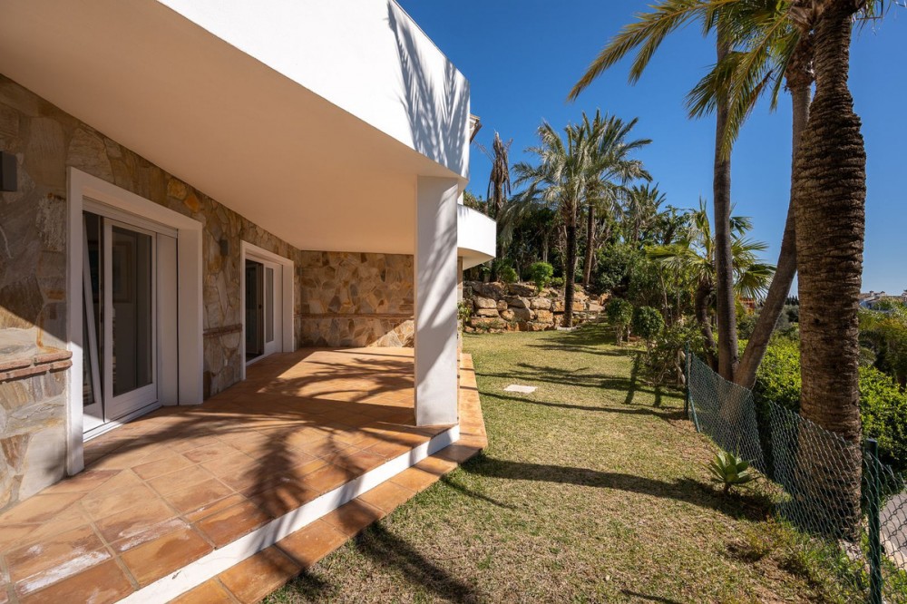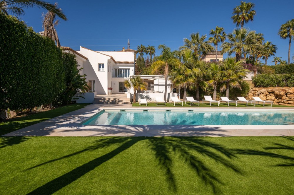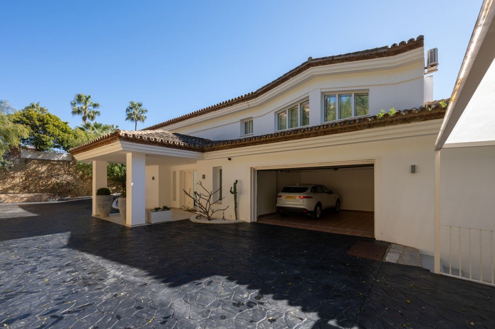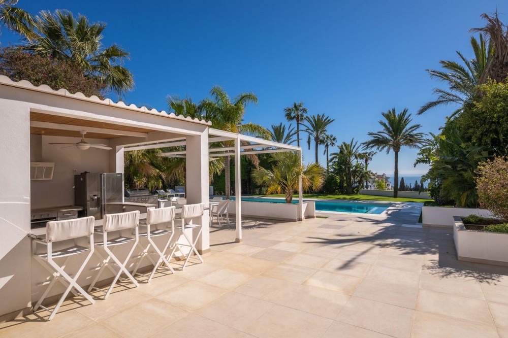 - Luxury Villa with Panoramic Sea Views in Marbella Spectacular south-facing villa located in an exclusive gated community with 24h security. Fully renovated in 2019, offering 1,100 sqm built on a 5,960 sqm plot. The property features 4 bedrooms and 4 bathrooms in the main house, plus 2 independent guest apartments. Highlights include spacious terraces with Mediterranean views, living room with fireplace, fully equipped modern kitchen, and two master suites with walk-in wardrobes and en-suite bathrooms. The lower level offers a complete wellness area with gym, sauna, indoor heated pool, jacuzzi, wine cellar and games room. Private pool, landscaped garden, underfloor heating, garage and absolute privacy. A unique opportunity to enjoy the finest Marbella lifestyle.