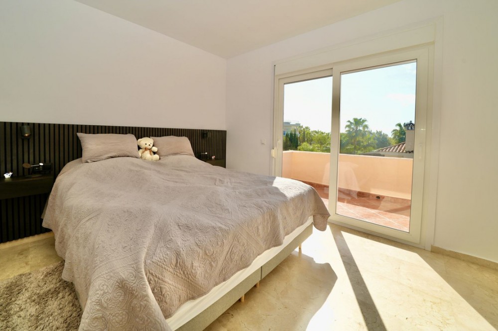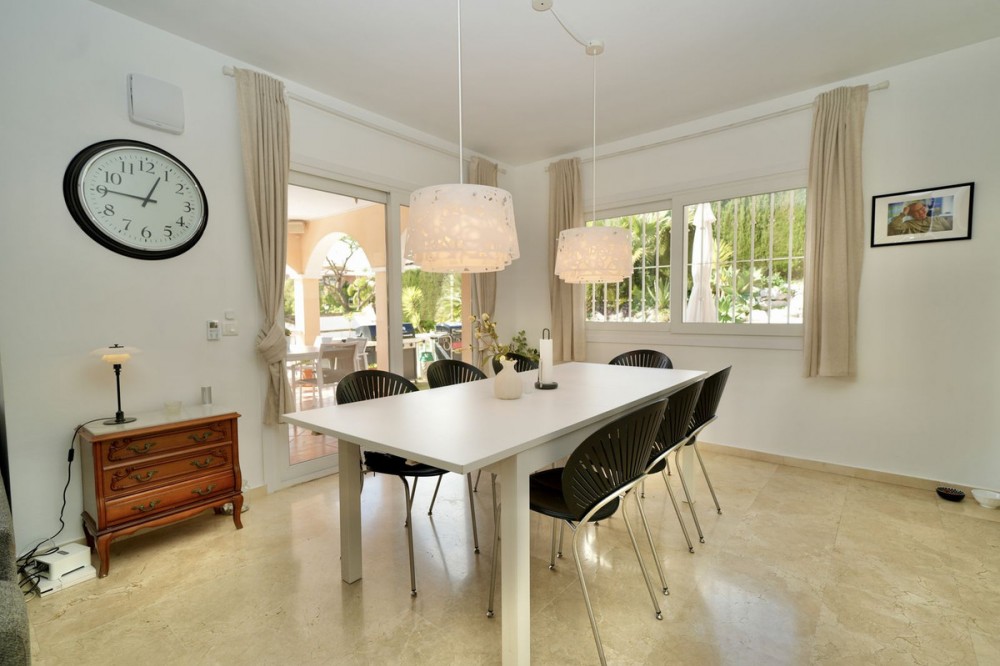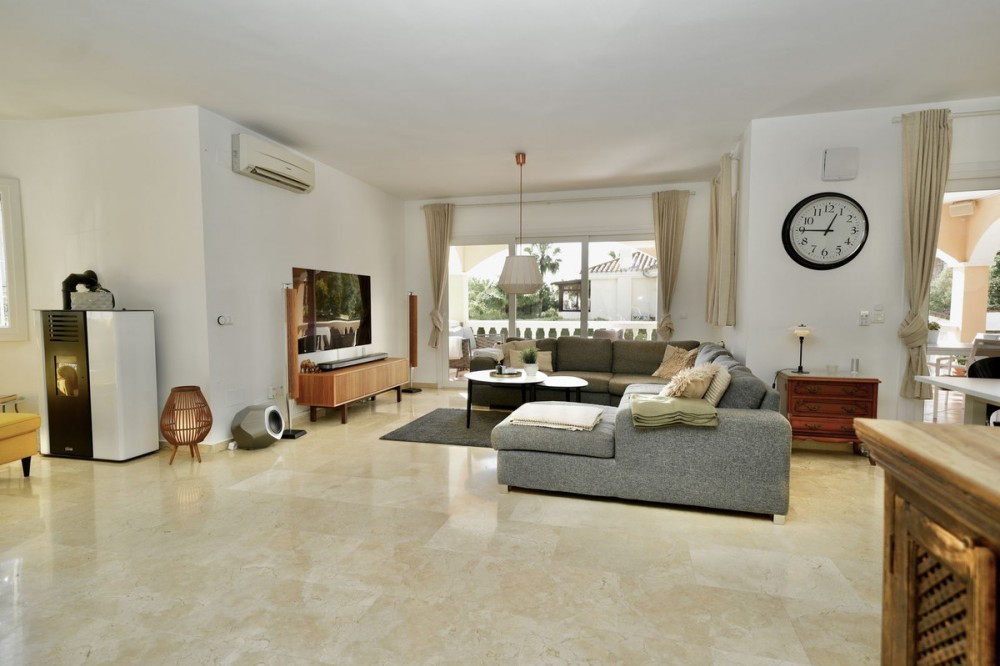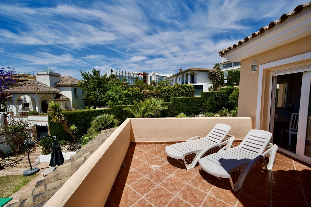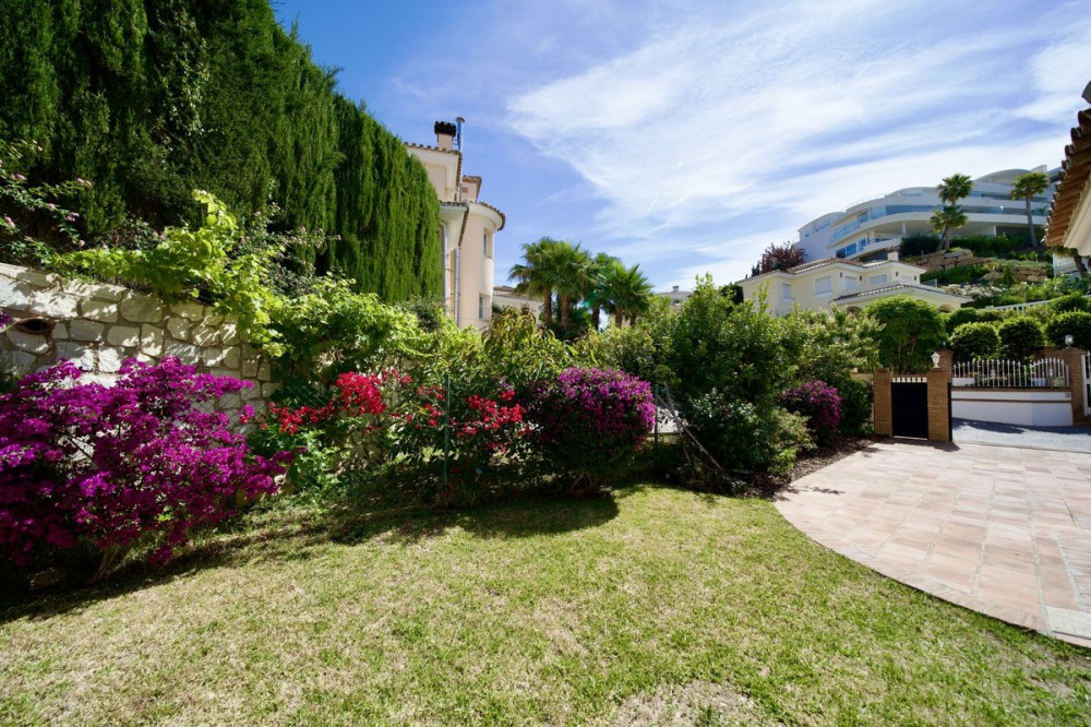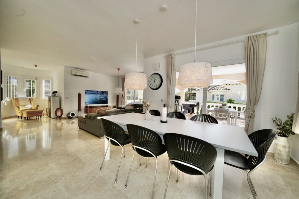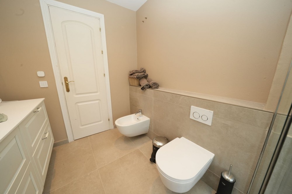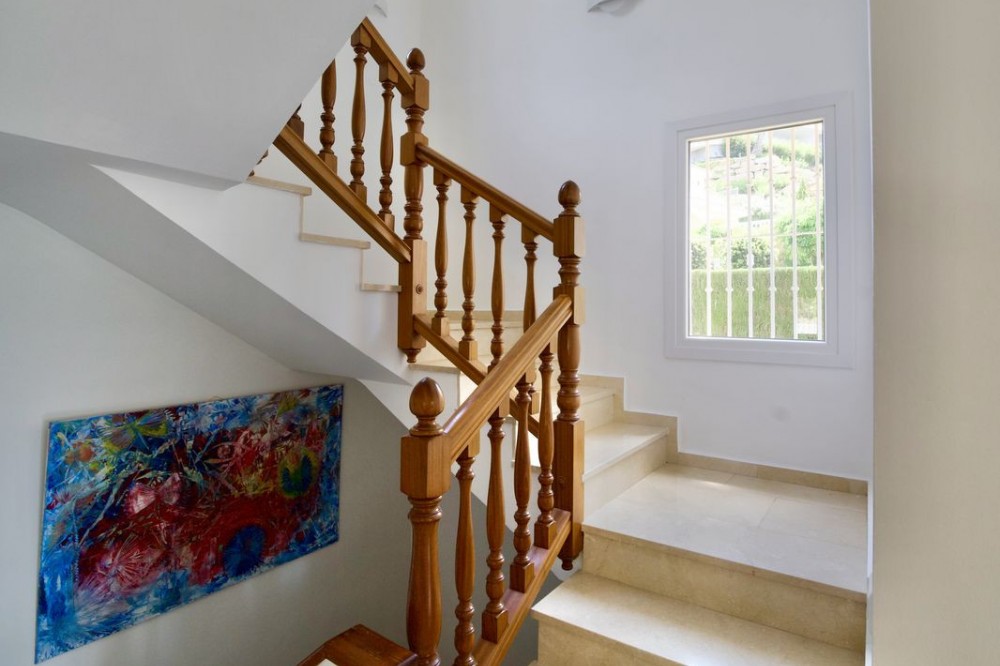 - Andalucian Villa in quiet residential area of La Capellanía, one of the most popular areas in Benalmádena. Easy walk to the beach! Highlights of the Villa: • Private heated pool • Renovated bathrooms • Renovated kitchen • Drinking water filtration system • Electric car charger • New double-glazed windows throughout • Only 900m to Carvajal Beach Villa with private heated pool, large terracces and beautiful garden. The property is situated on a dead-end street, surrounded by nature and with easy access to the beach and amenities. The house is a perfect investment as a holiday home, rental investment or residential living. The Villa features a spacious open-plan living-dining room with a semi-open, modern, and fully functional kitchen, equipped with granite countertops, a Quooker tap, and Siemens appliances. The property also has a drinking water filtration system, allowing for drinking water directly from the house. On the first floor, there are three good sized bedrooms, including a master bedroom with an en-suite bathroom, modern bathtub, and terrace access. The other two bedrooms share a bathroom. Two of the bathrooms and the guest toilet were renovated last year. The bathroom in the basement level is in the process of being renovated. The basement offers plenty of space and light with high windows. Here you also have TV with a projector, another good size bedroom, bathroom, a larger room used as an office and gym area, and as well there is a pantry/storage room (pictures coming soon). Outside, a 32 m² swimming pool with a heat pump and a covered terrace, ideal for enjoying the fantastic climate all year round. The property is equipped with 6 heat pumps, an additional heat pump for the pool, an electric car charger, and new double-glazed windows throughout the house. A great property with a great location less than 1km to Carvajal Beach. 3-minutes drive to big supermarket and comercial area with restaurants and cafeés. Only 15 minutes drive to the famouse Benalmádena Marina, 20 minutes drive to Malaga Airport and 25 minutes to the center of Malaga. 28 minutes drive to Marbella.